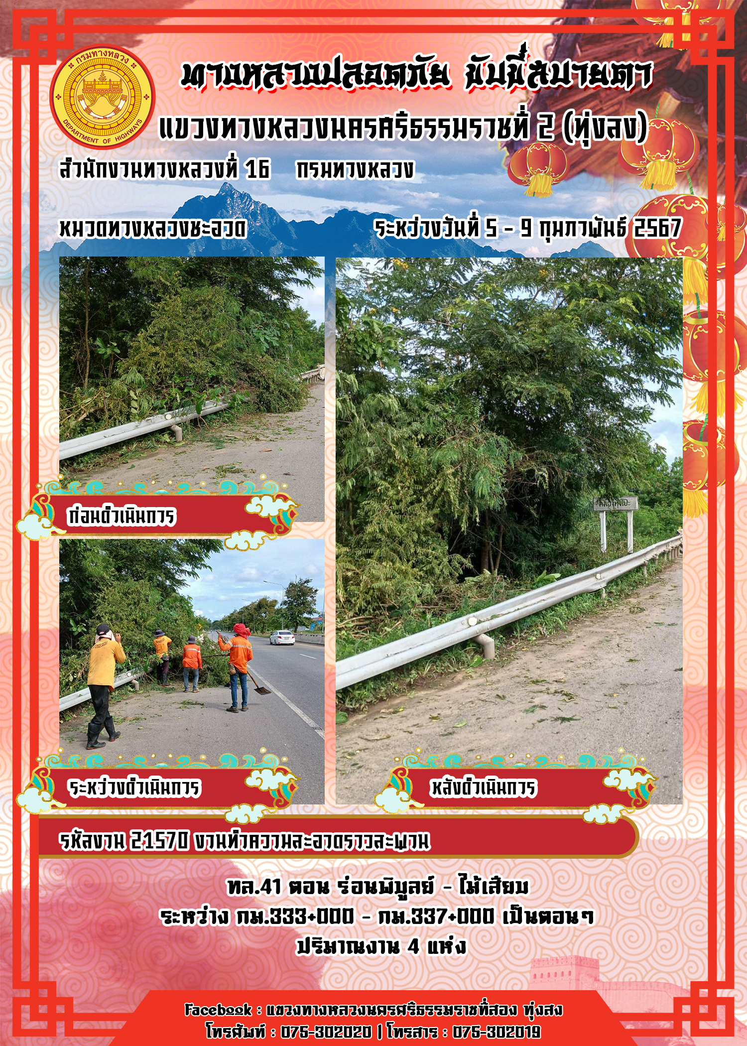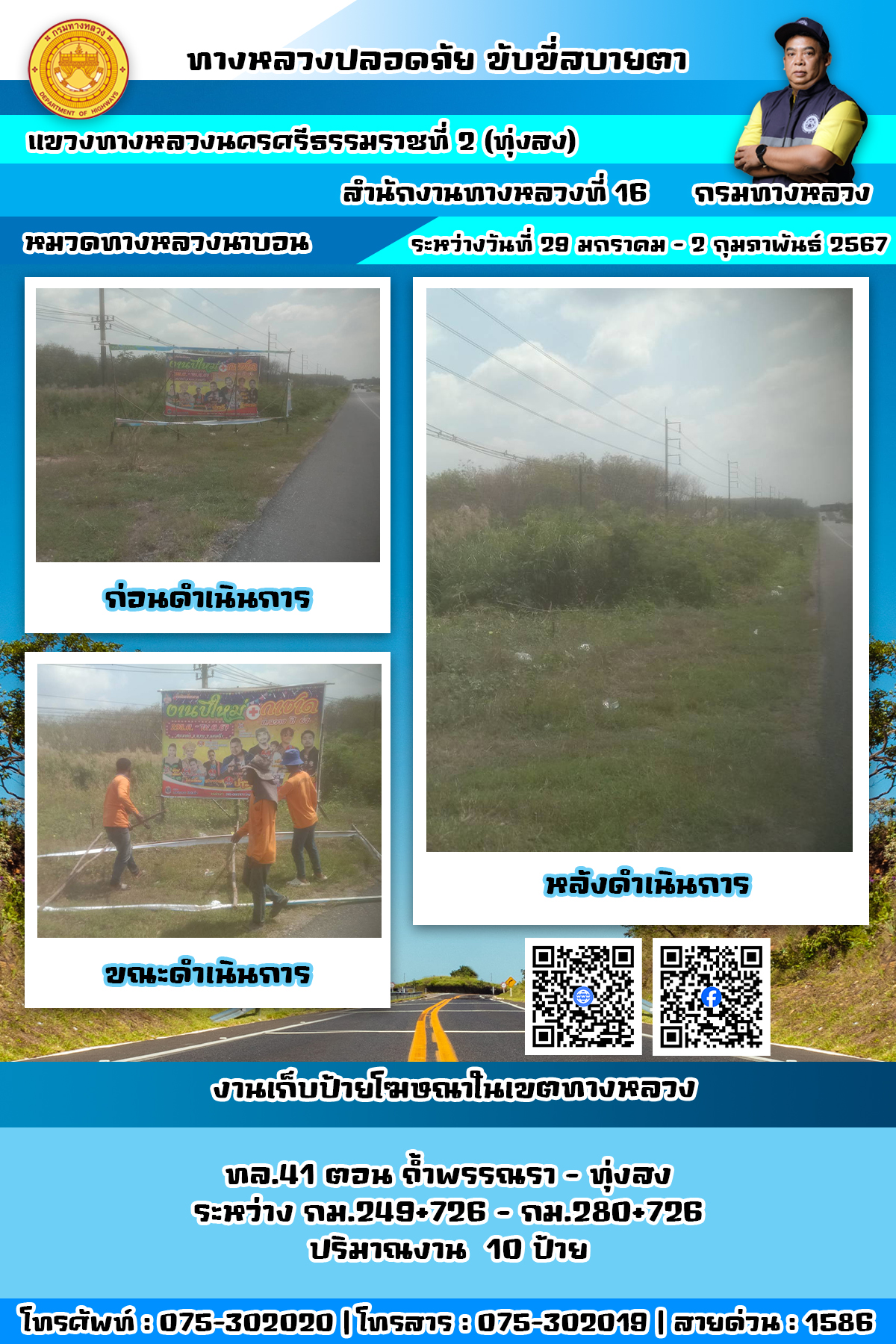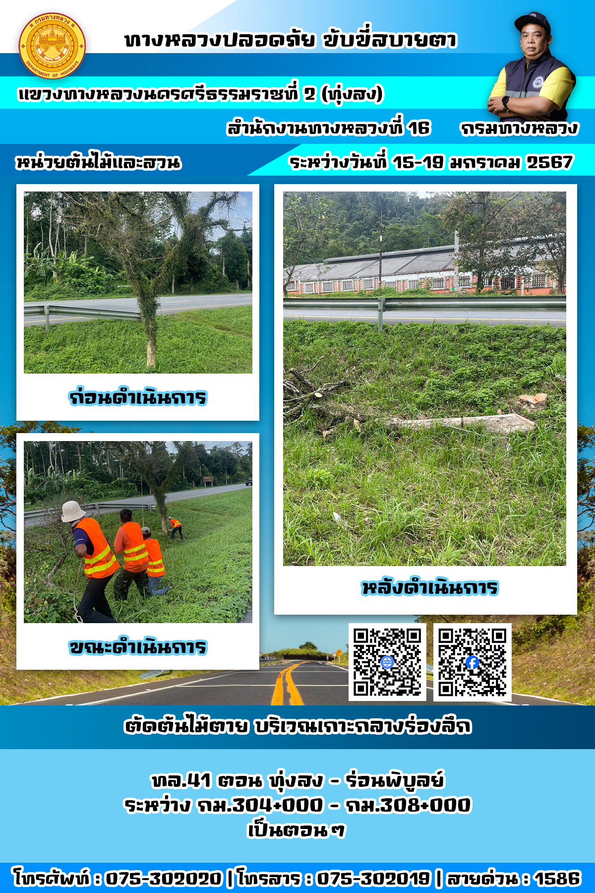ผลการปฏิบัติงานของหมวดทางหลวงและหน่วยงานในสังกัด แขวงทางหลวงนครศรีธรรมราชที่ 2 (ทุ่งสง) ระหว่างวันที่ 15 - 19 มกราคม พ.ศ.2567