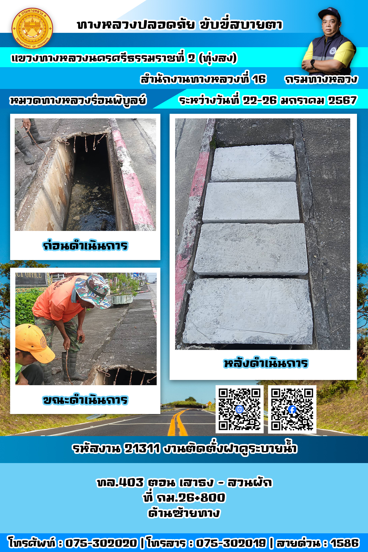 ผลการปฏิบัติงานของหมวดทางหลวงและหน่วยงานในสังกัด แขวงทางหลวงนครศรีธรรมราชที่ 2 (ทุ่งสง) ระหว่างวันที่ 22-26 มกราคม พ.ศ.2567