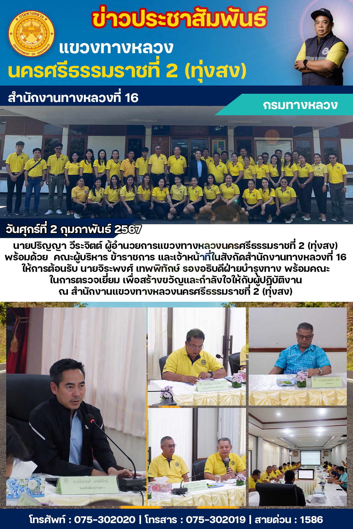 นายจิระพงศ์ เทพพิทักษ์ รองอธิบดีฝ่ายบำรุงทาง ตรวจเยี่ยมเจ้าหน้าที่ในสังกัดสำนักงานทางหลวงที่ 16 (นครศรีธรรมราช)