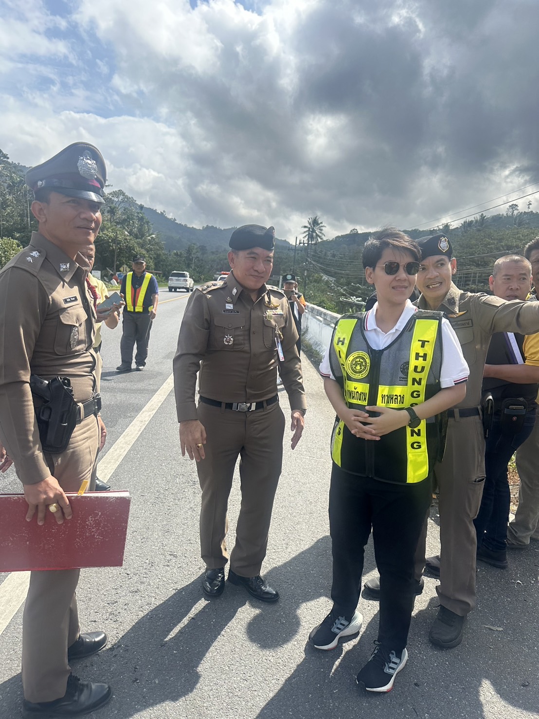 ลงพื้นที่ตรวจสอบสาเหตุการเกิดอุบัติเหตุ ใน ทล.4015 ตอน เขาธง - ฉวาง ที่ กม. 27+028 ด้านซ้ายทาง