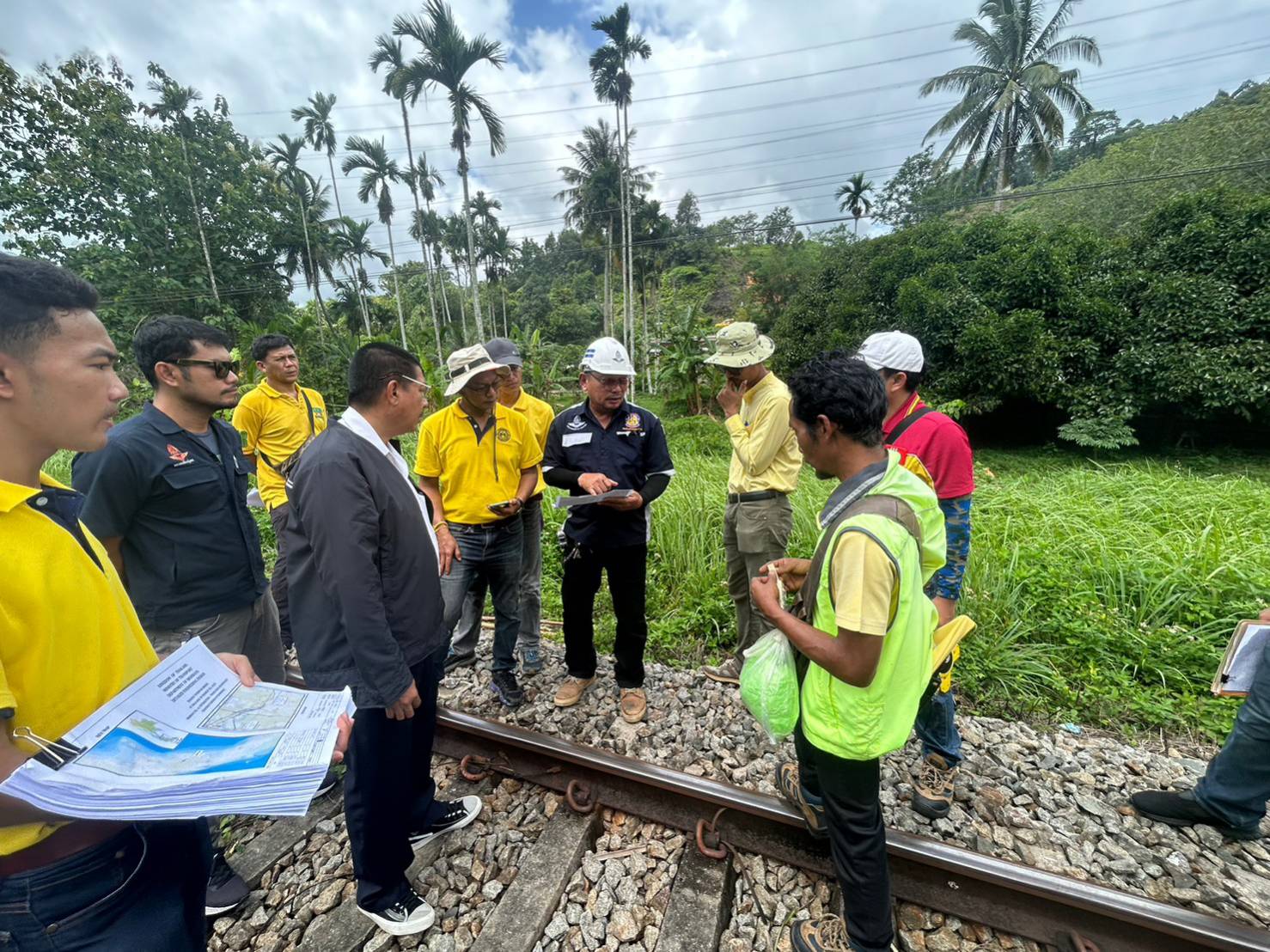 ลงพื้นที่ตรวจสอบร่วมกับเจ้าหน้าที่การรถไฟ เรื่อง ขอใช้พื้นที่รถไฟ ในทางหลวงหมายเลข 4305 ตอน ทุ่งสง - จำปา เพื่อก่อสร้างสะพานยกระดับข้ามทางรถไฟ