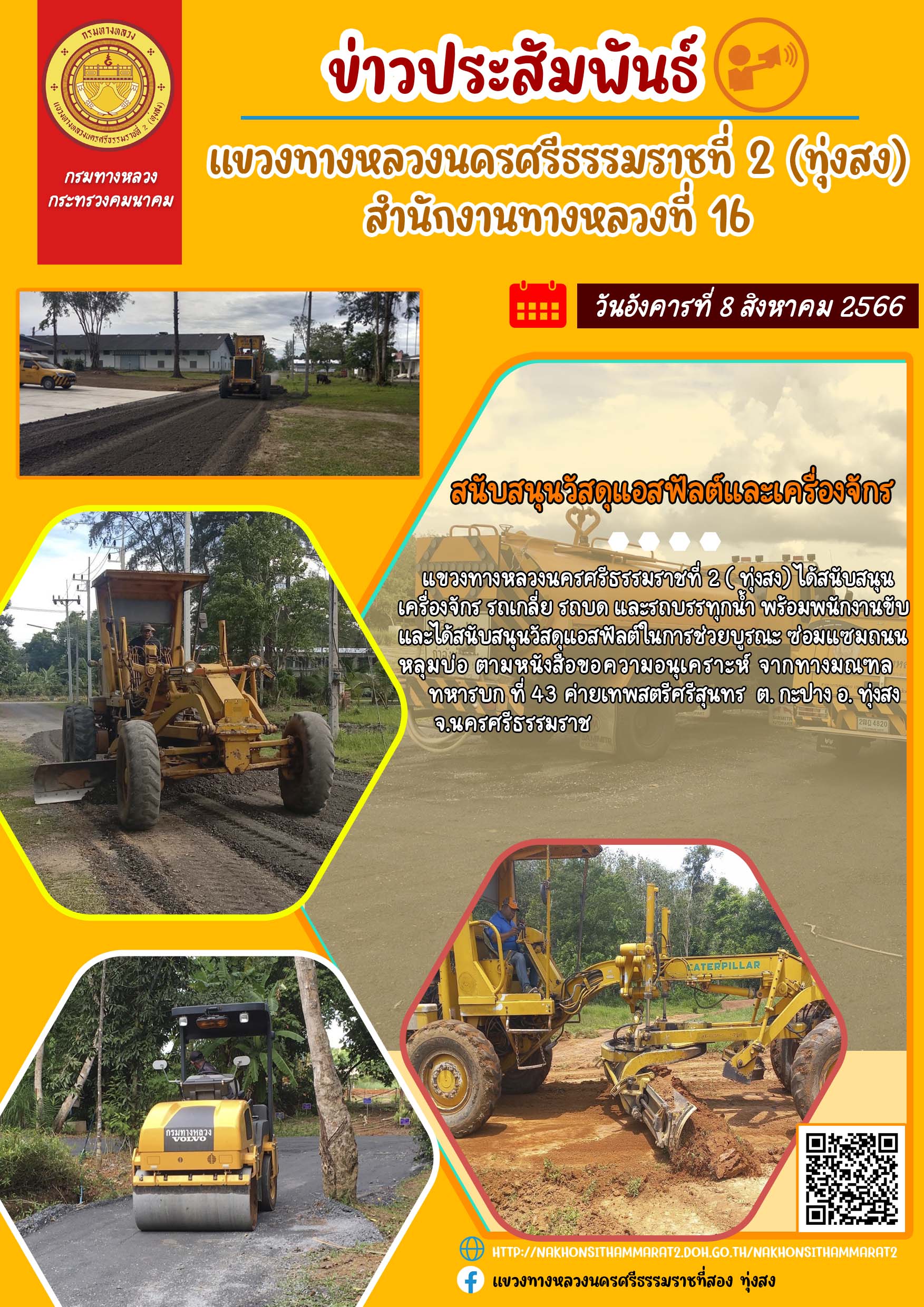 สนับสนุนวัสดุแอสฟัลต์ในการช่วยบูรณะ ซ่อมแซมถนน หลุมบ่อ มณฑลทหารบกที่ 43 ค่ายเทพสตรีศรีสุนทร อ.ทุ่งสง จ.นครศรีธรรมราช