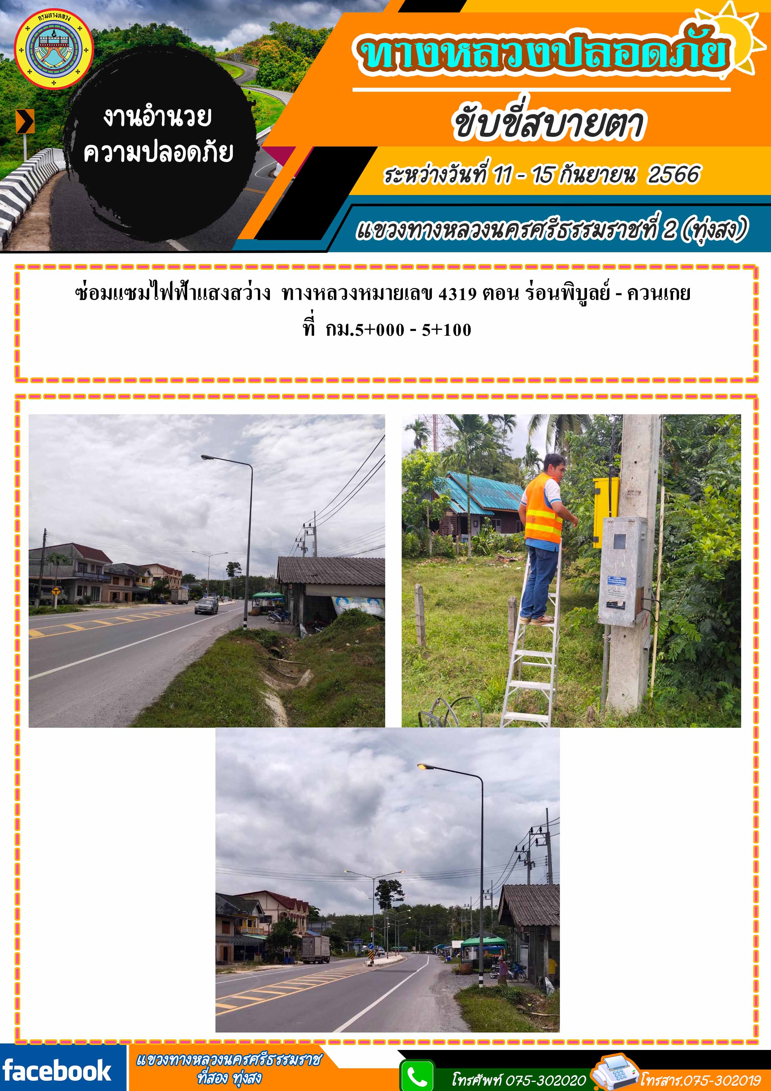 สำรวจจุดที่ไฟฟ้าแสงสว่างดับ ทางหลวงหมายเลข 41 บริเวณสะพานต่างระดับจนถึงทางเข้าหมู่บ้านพัฒนา