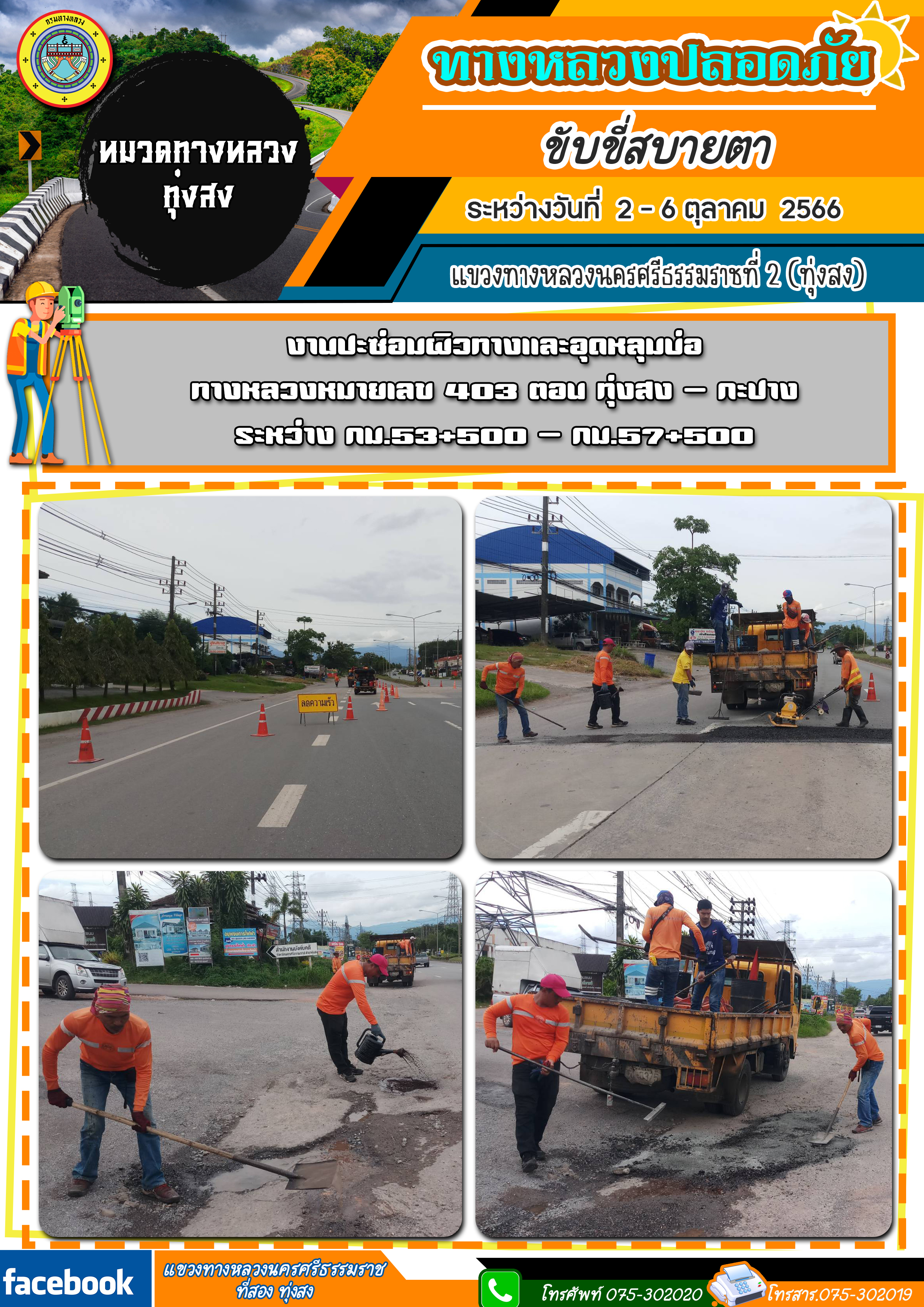 ตรวจรับงานสัญญา ทส.22/2666 งานจ้างเหมาปรับปรุงทางหลวง สาย 41 ตอน ถ้ำพรรณรา - ทุ่งสง ระหว่าง กม.263+500 - กม.292+250 NB.