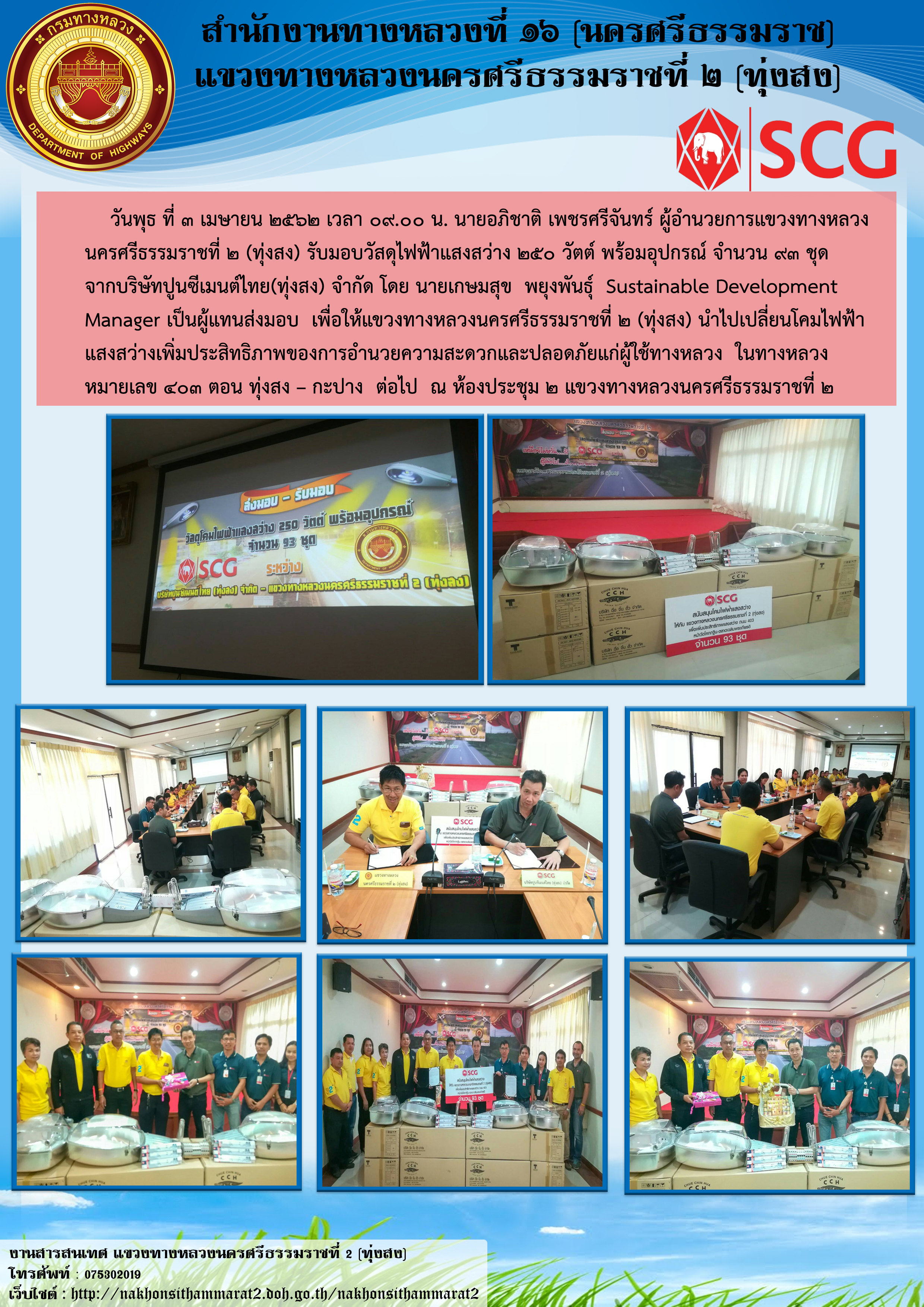 รับมอบวัสดุไฟฟ้าแสงสว่าง 250 วัตต์ พร้อมอุปกรณ์ จำนวน 93 ชุด จากบริษัทปูนซีเมนต์ไทย(ทุ่งสง) จำกัด