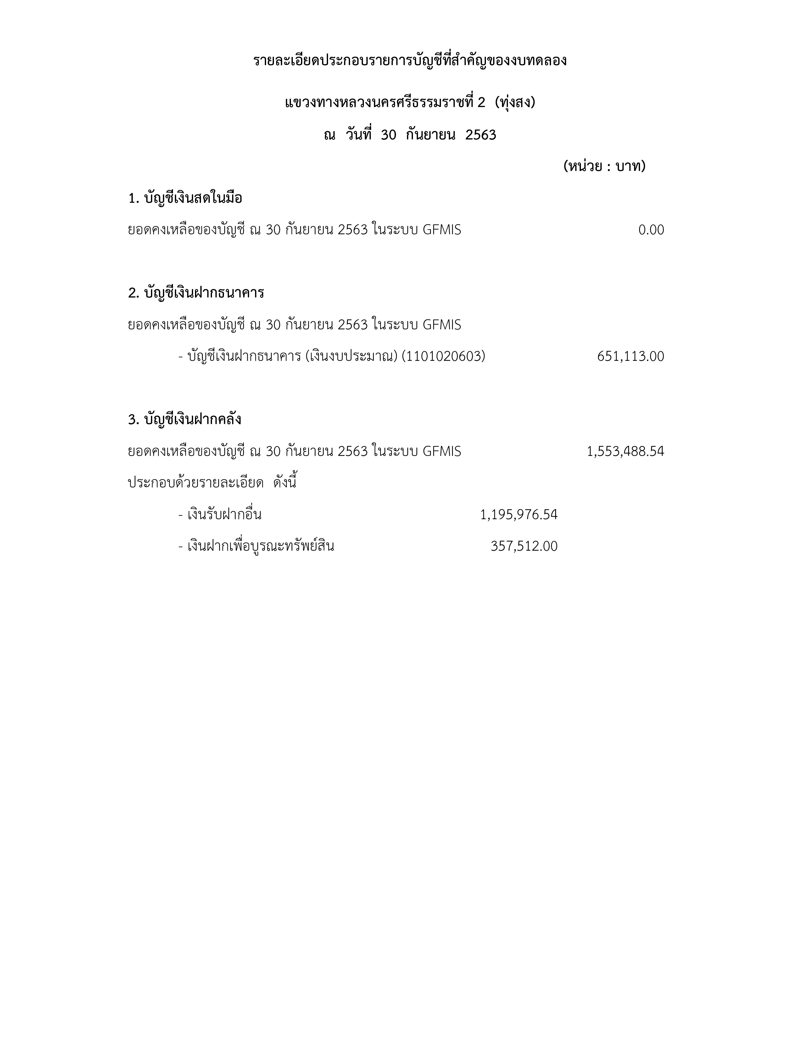รายละเอียดประกอบรายการบัญชีที่สำคัญของงบทดลอง ณ วันที่ 30 กันยายน 2563