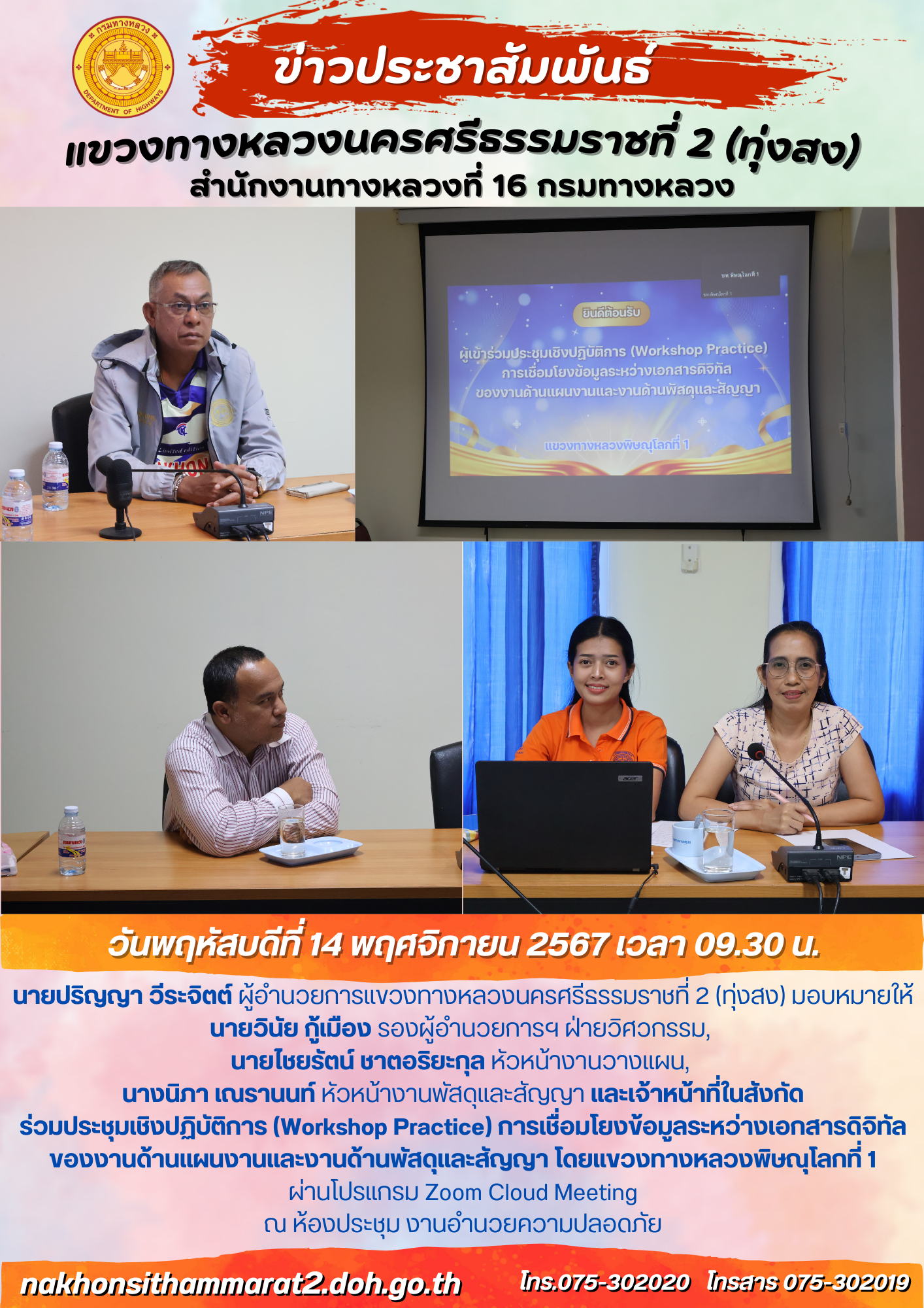 ประชุมเชิงปฏิบัติการ (Workshop Practice) การเชื่อมโยงข้อมูลระหว่างเอกสารดิจิทัล ของงานด้านแผนงานและงานด้านพัสดุและสัญญา