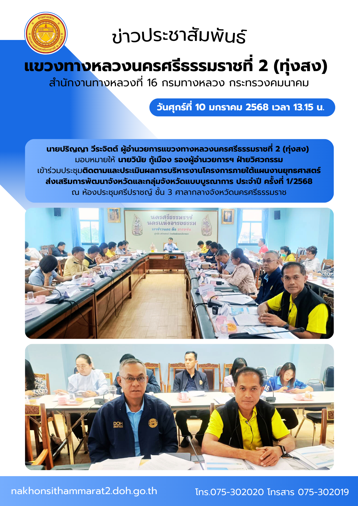ประชุมติดตามและประเมินผลการบริหารงานโครงการภายใต้แผนงานยุทธศาสตร์ ส่งเสริมการพัฒนาจังหวัดและกลุ่มจังหวัดแบบบูรณาการ ประจำปี ครั้งที่ 1/2568