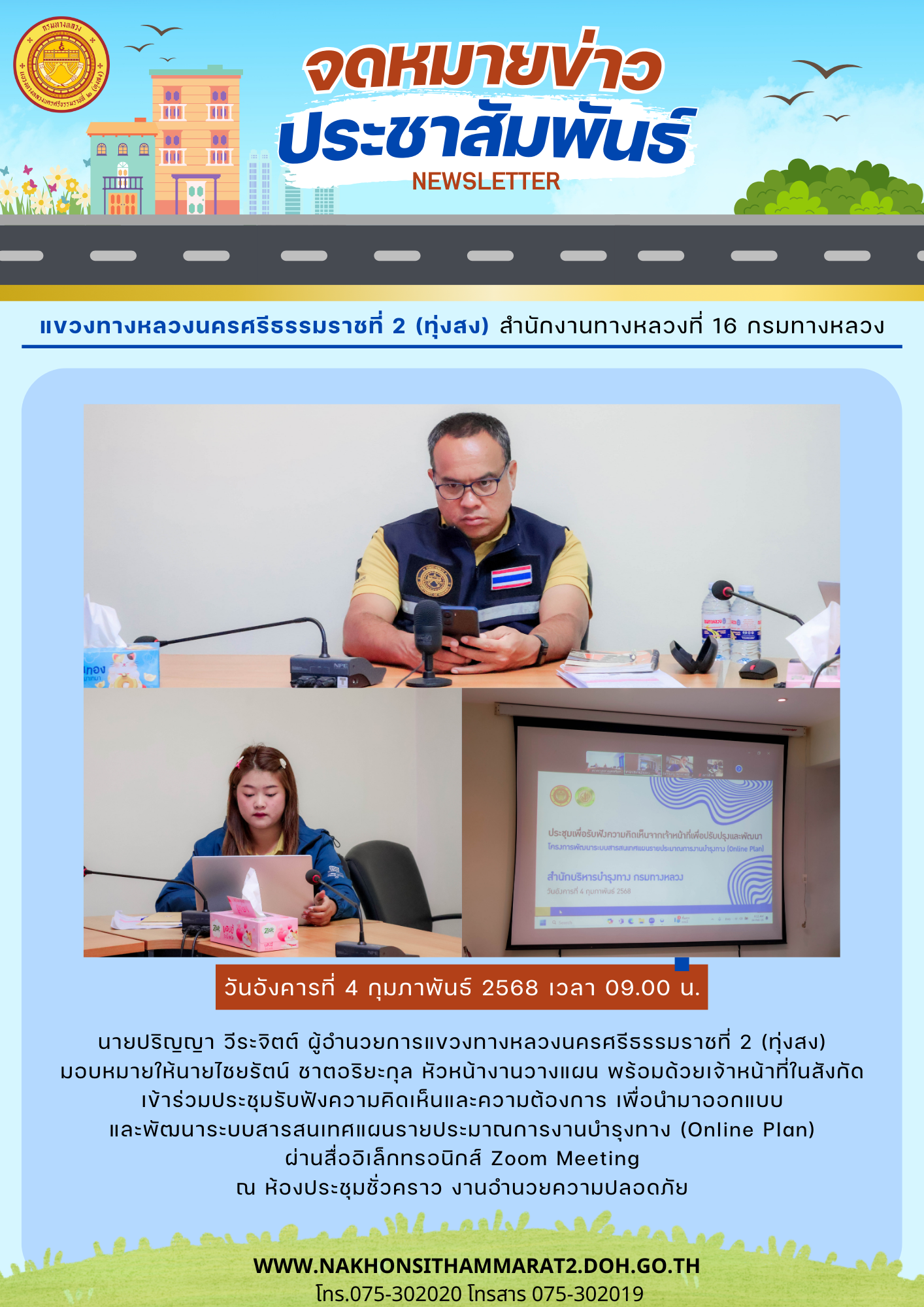 ประชุมรับฟังความคิดเห็นและความต้องการ เพื่อนำมาออกแบบ และพัฒนาระบบสารสนเทศแผนรายประมาณการงานบำรุงทาง (Online Plan) ผ่านสื่ออิเล็กทรอนิกส์ Zoom Meeting