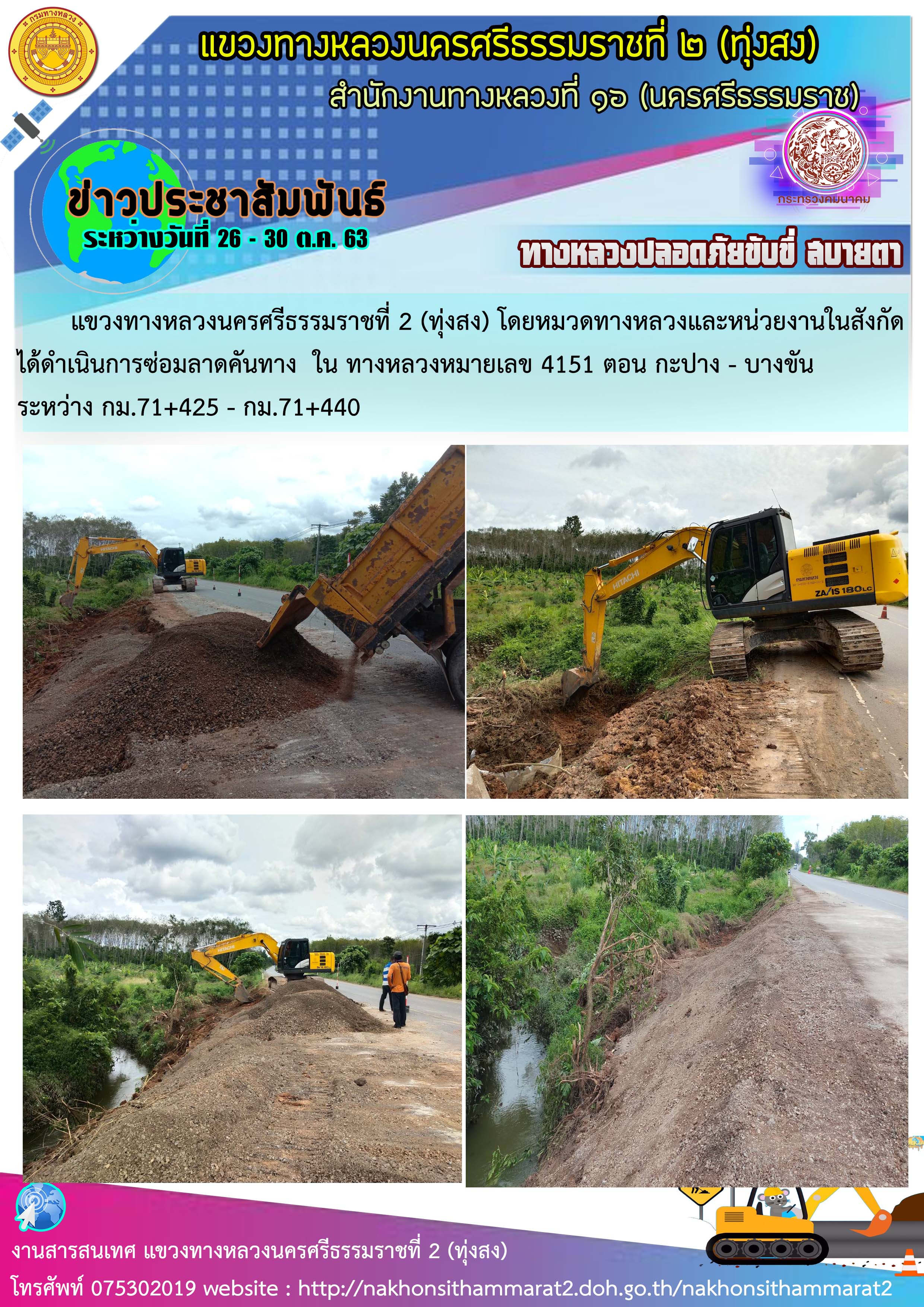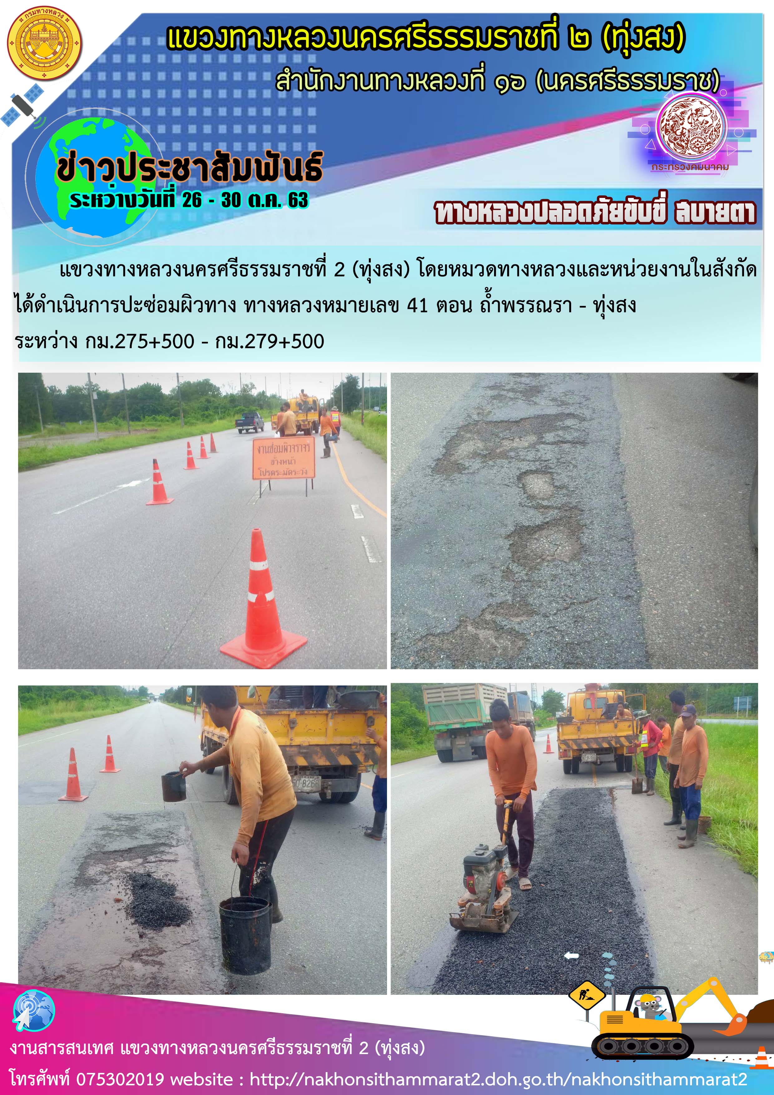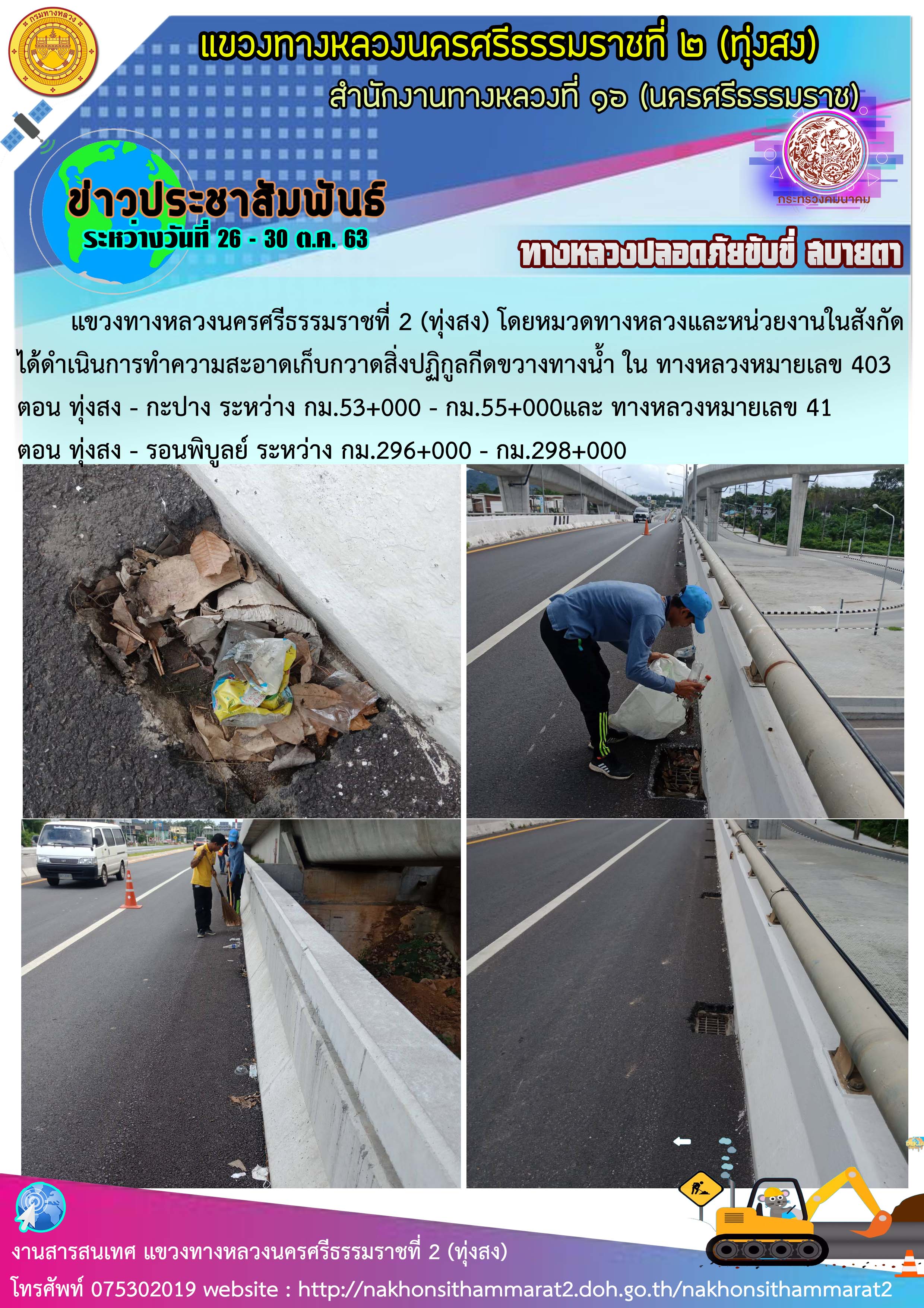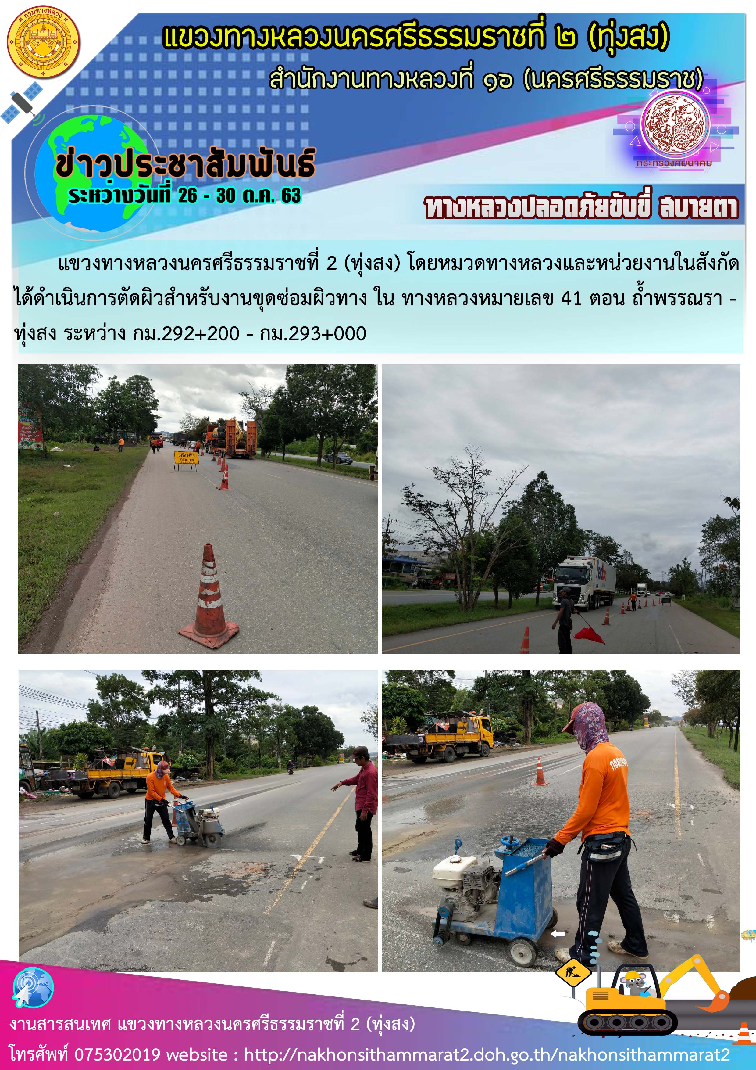 ของแขวงทางหลวงนครศรีธรรมราชที่ 2 (ทุ่งสง) ประจำสัปดาห์ ระหว่างวันที่ 26 - 30 ตุลาคม 2563 ขอหมวดทางหลวงและหน่วยงานในสังกัดแขวงทางหลวงนครศรีธรรมราชที่ 2 (ทุ่งสง)