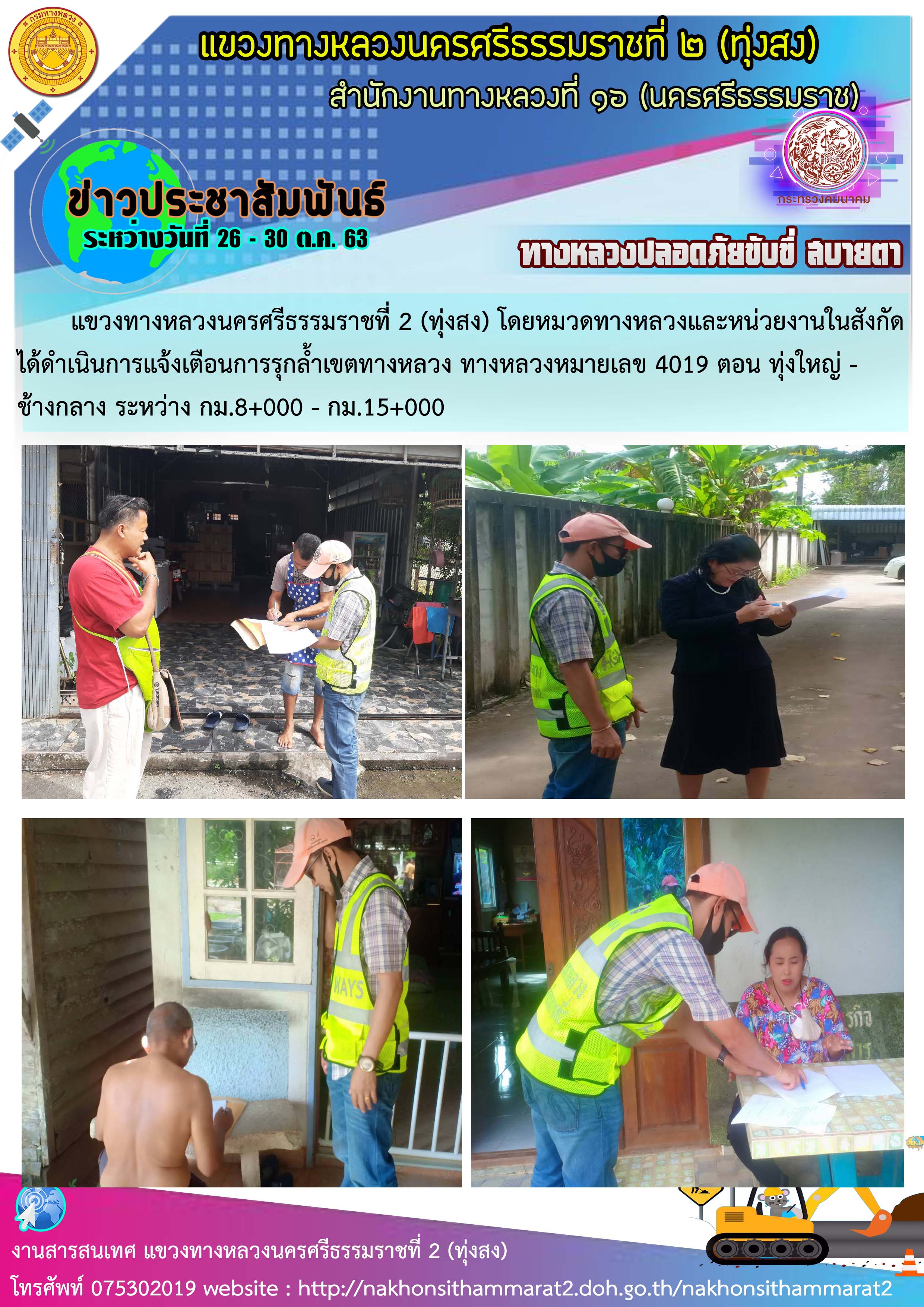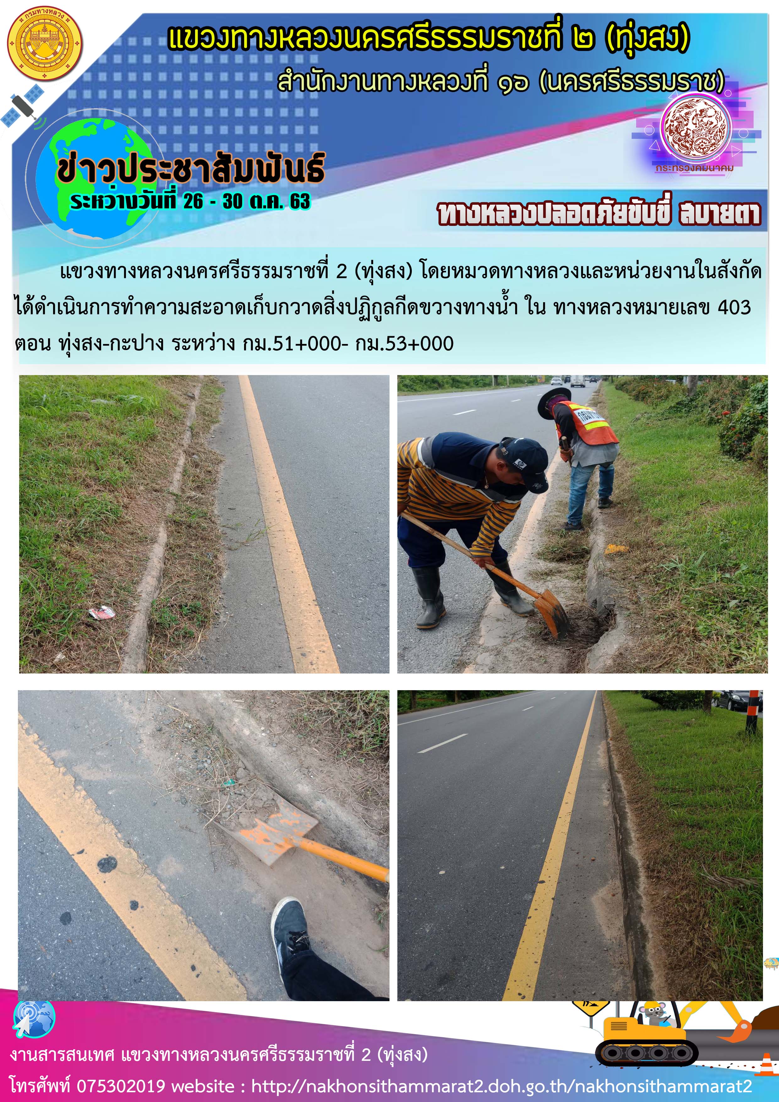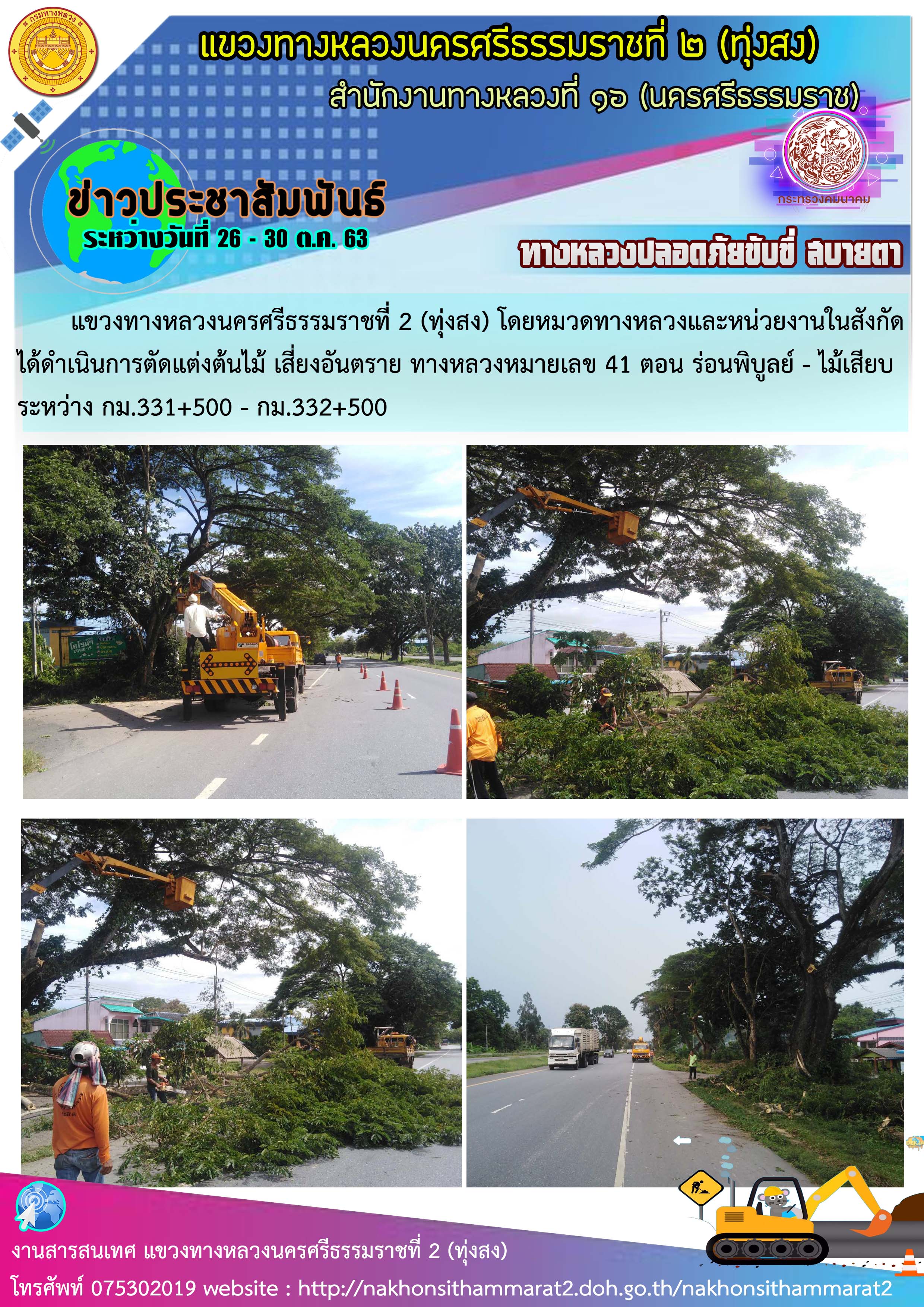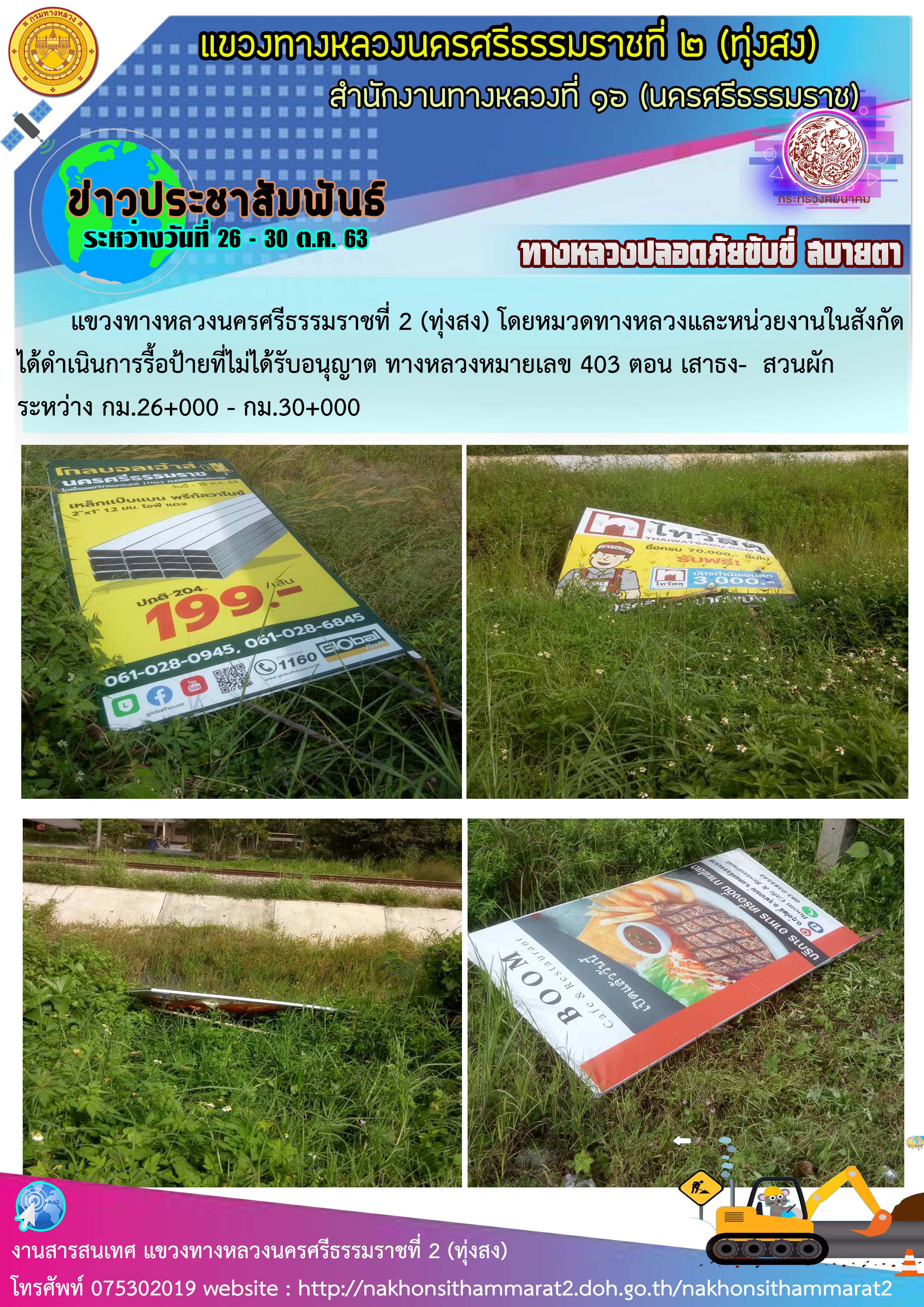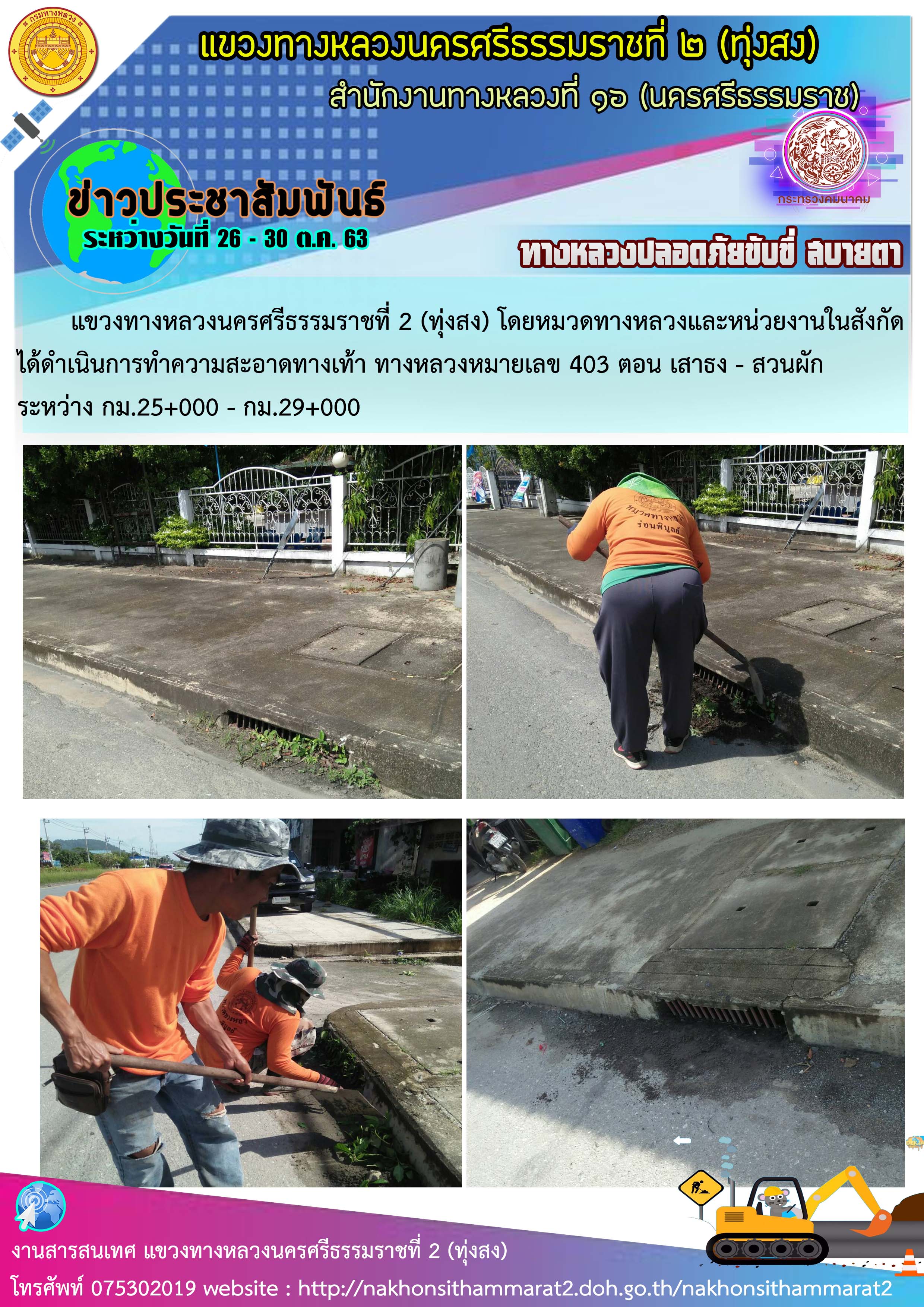 ของแขวงทางหลวงนครศรีธรรมราชที่ 2 (ทุ่งสง) ประจำสัปดาห์ ระหว่างวันที่ 26 - 30 ตุลาคม 2563 ขอหมวดทางหลวงและหน่วยงานในสังกัดแขวงทางหลวงนครศรีธรรมราชที่ 2 (ทุ่งสง)