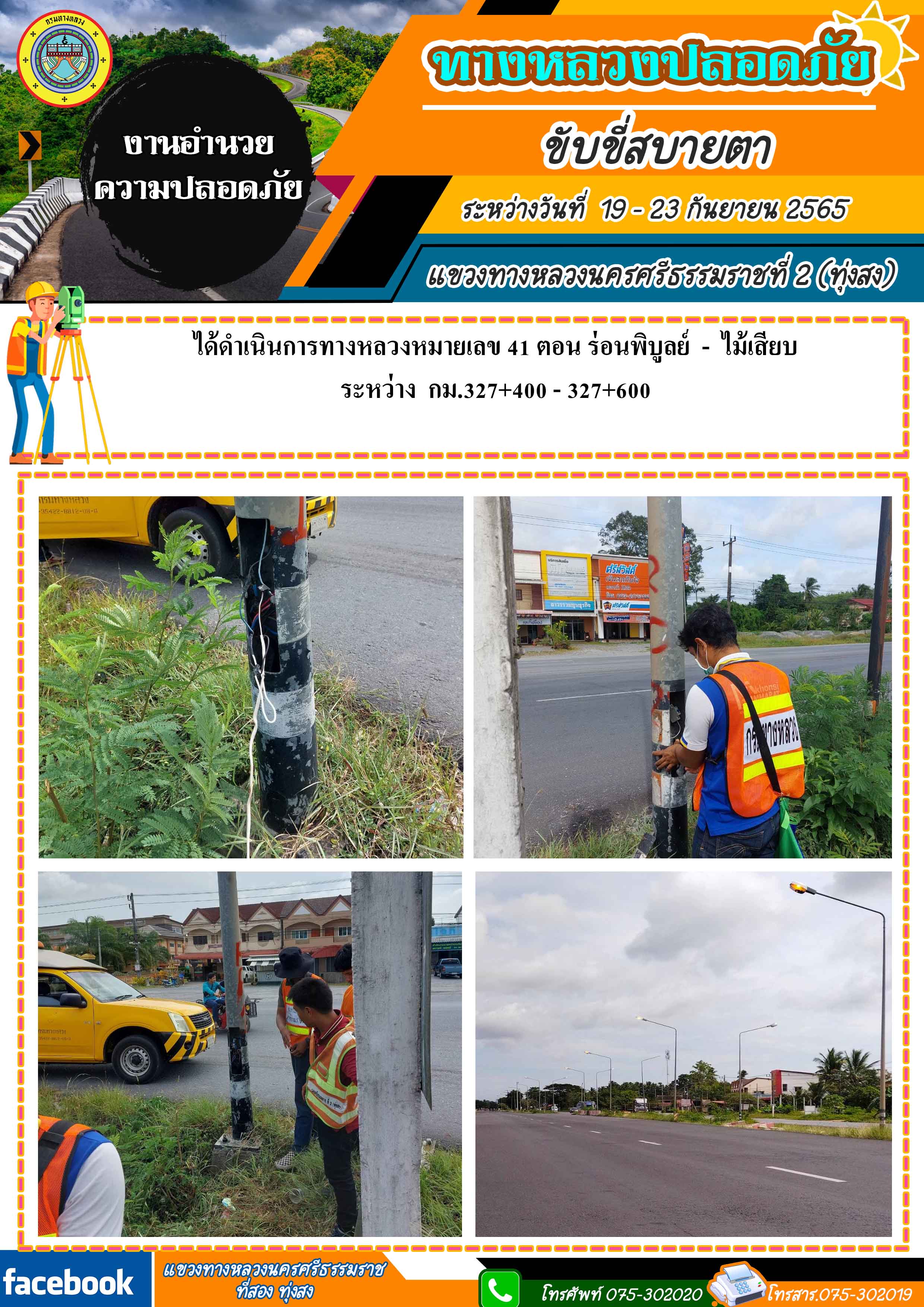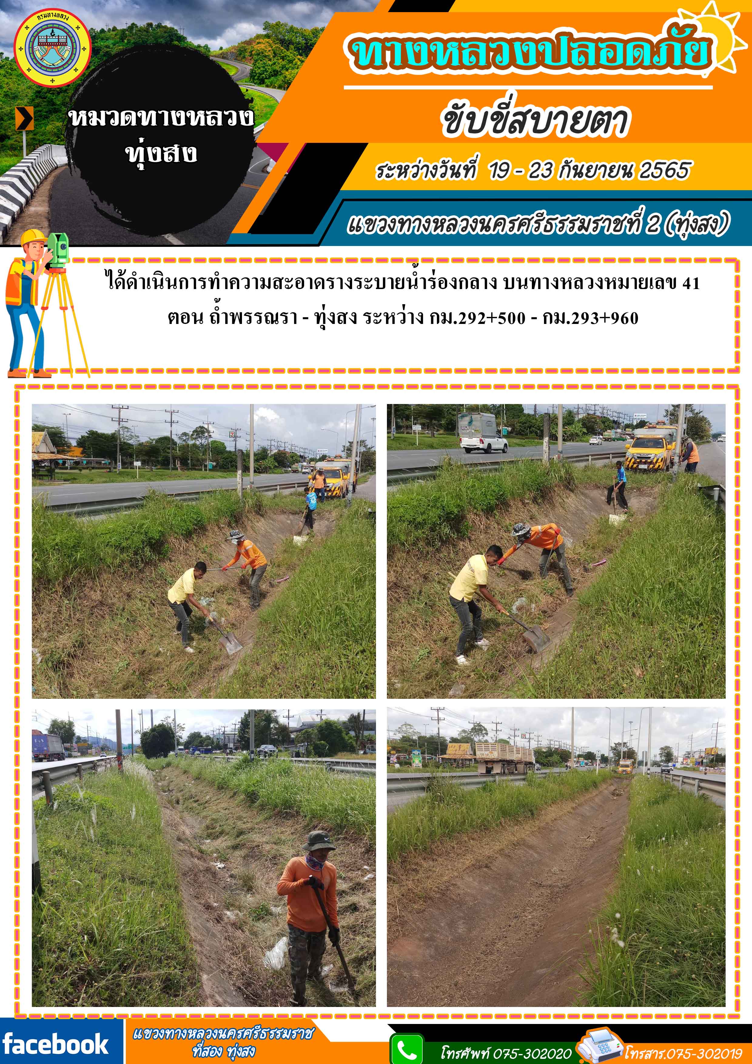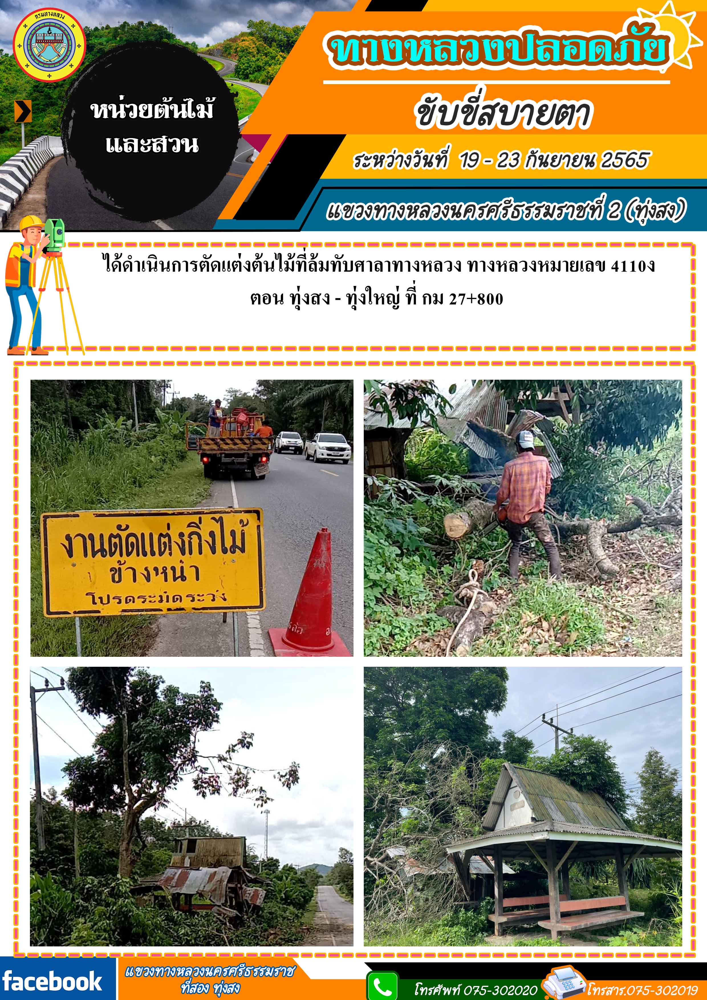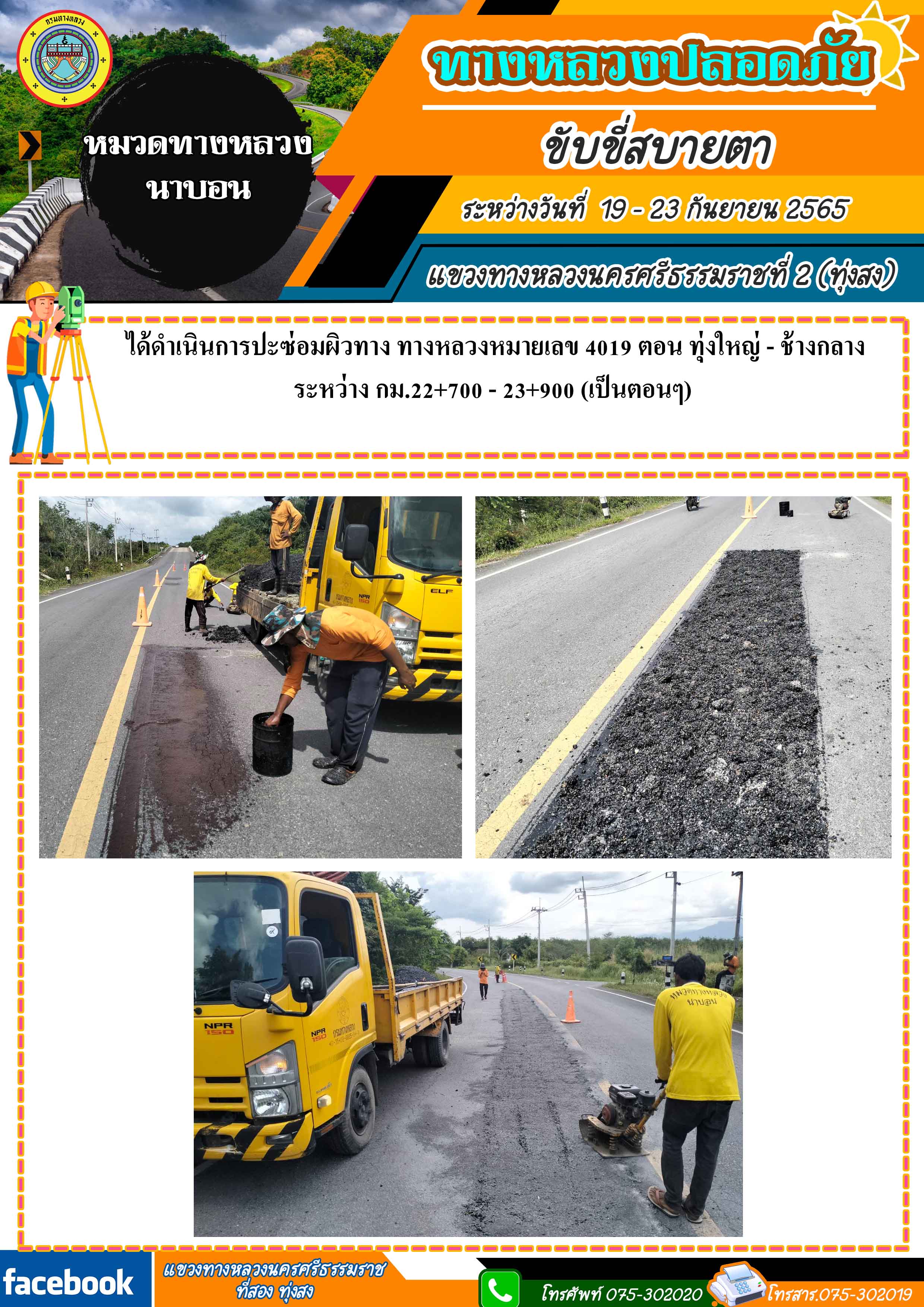 ผลการปฏิบัติงานประจำสัปดาห์ของแขวงทางหลวงนครศรีธรรมราชที่ 2 (ทุ่งสง) ระหว่างวันที่ 19 - 23 กันยายน 2565 โดยหมวดทางหลวงและหน่วยงานในสังกัด