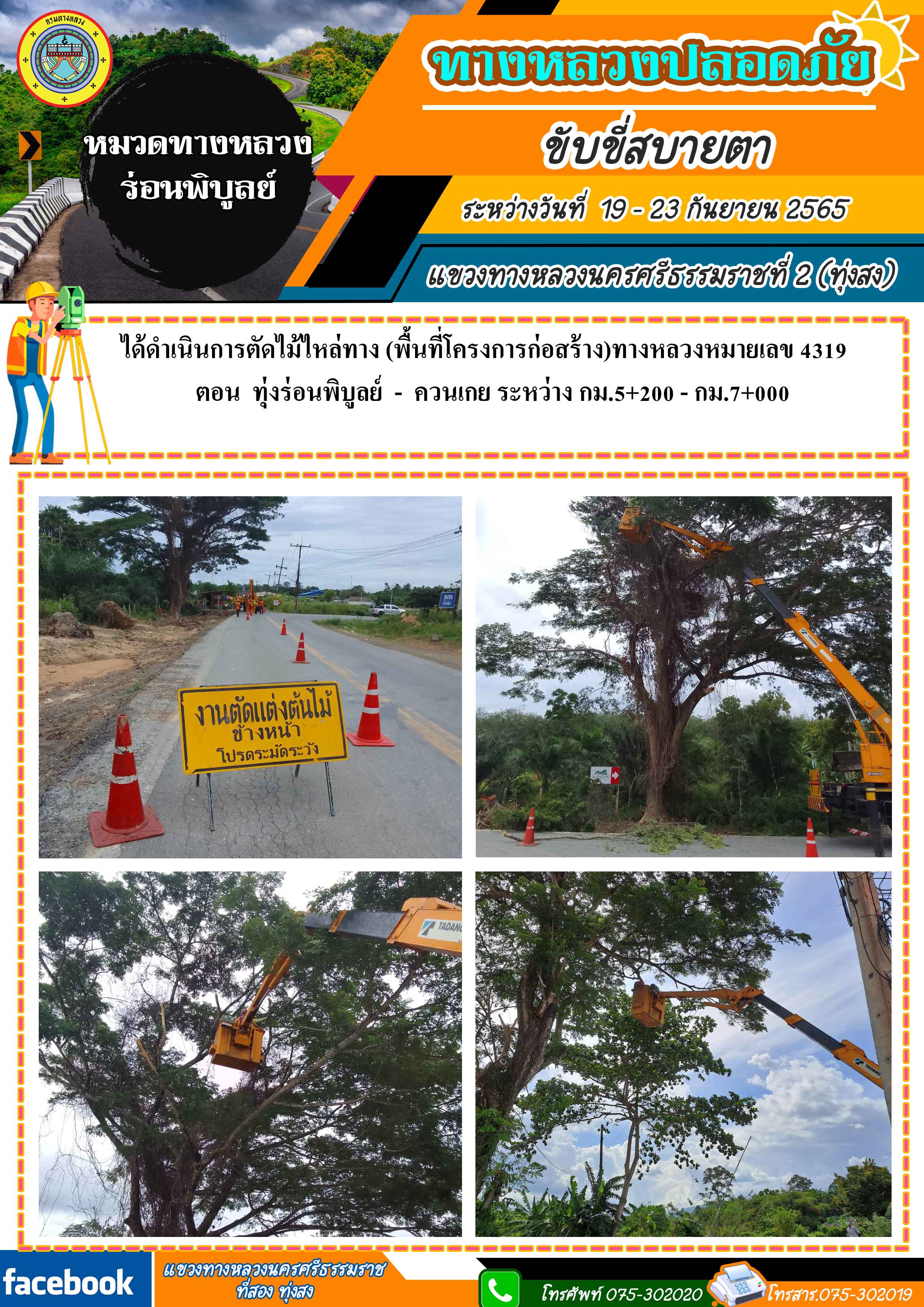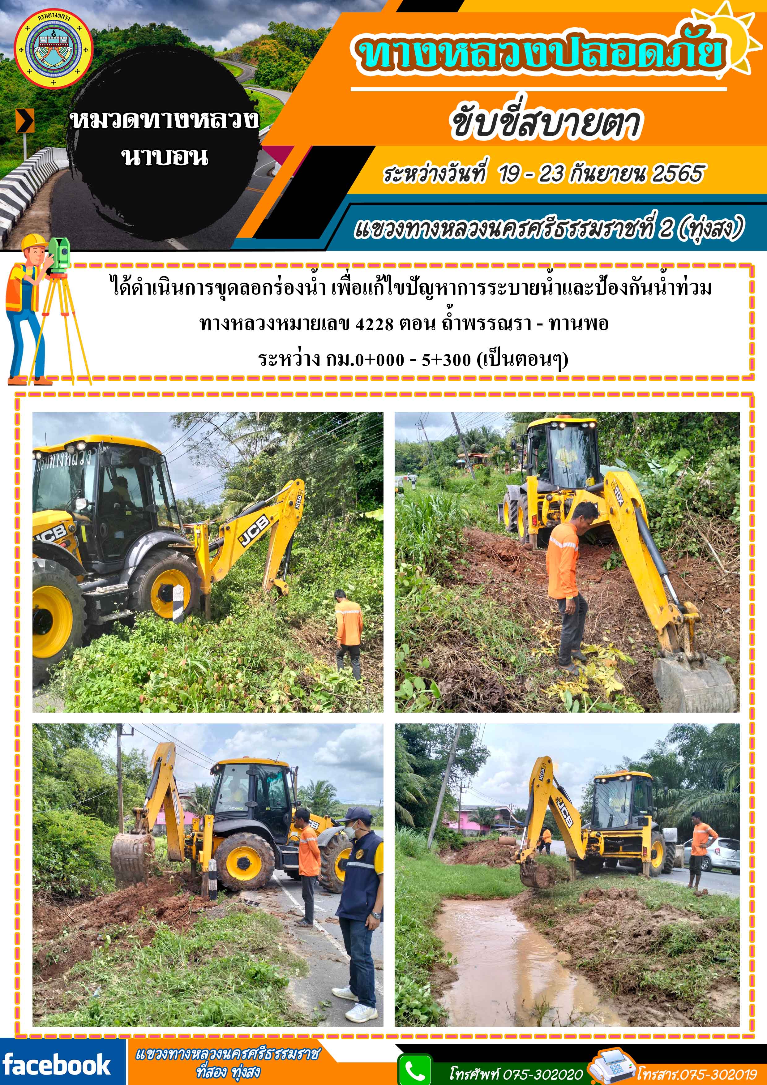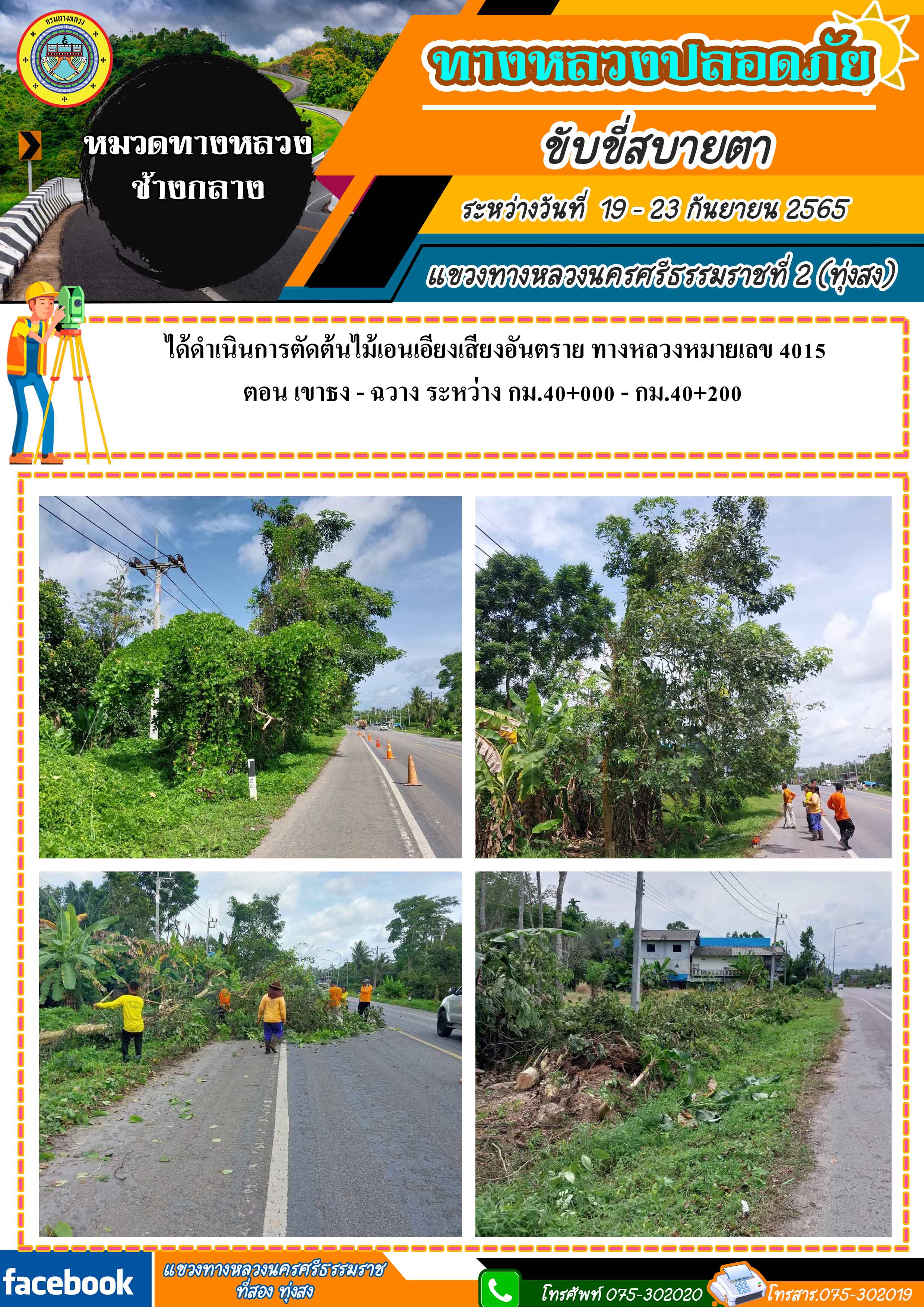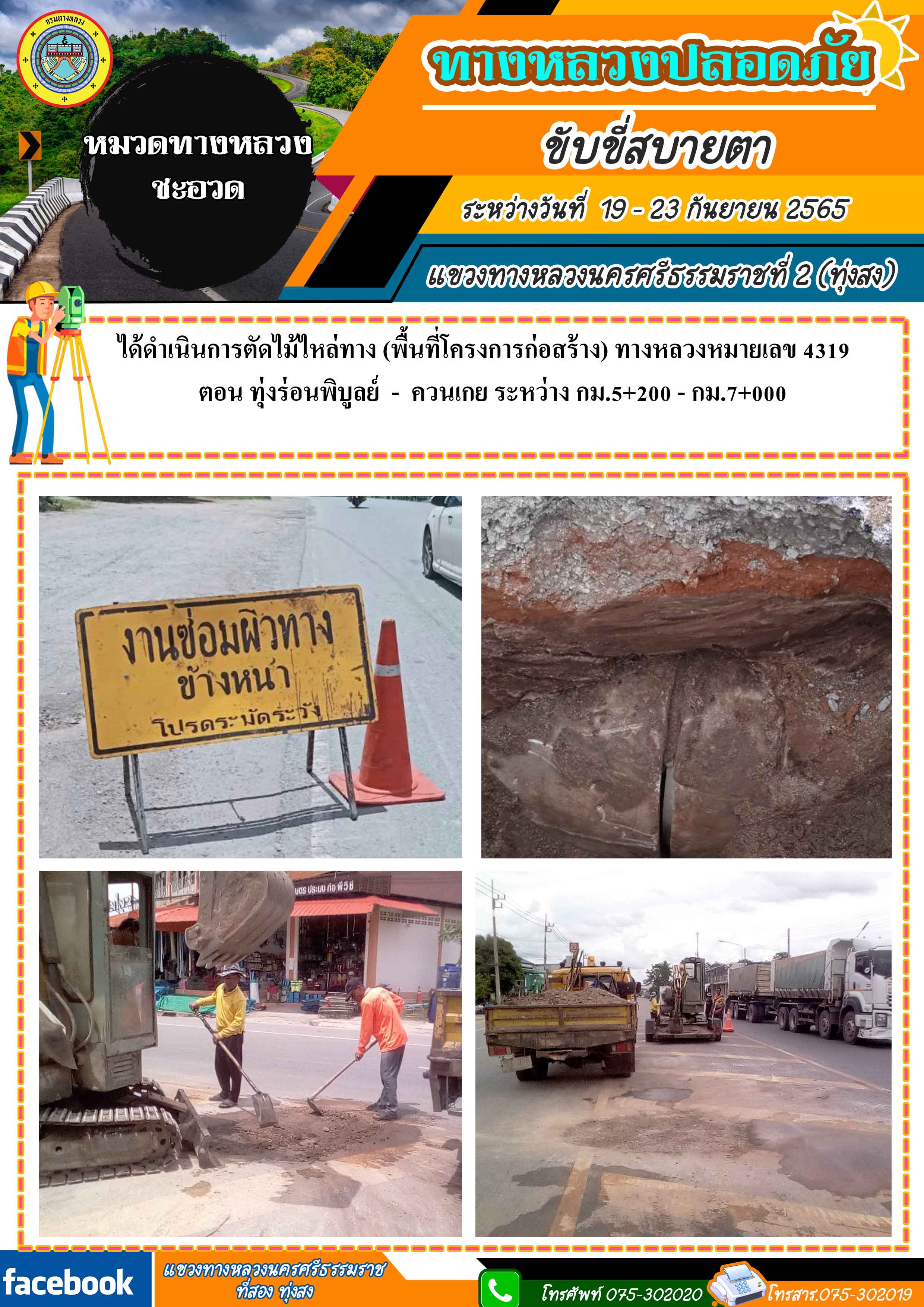 ผลการปฏิบัติงานประจำสัปดาห์ของแขวงทางหลวงนครศรีธรรมราชที่ 2 (ทุ่งสง) ระหว่างวันที่ 19 - 23 กันยายน 2565 โดยหมวดทางหลวงและหน่วยงานในสังกัด