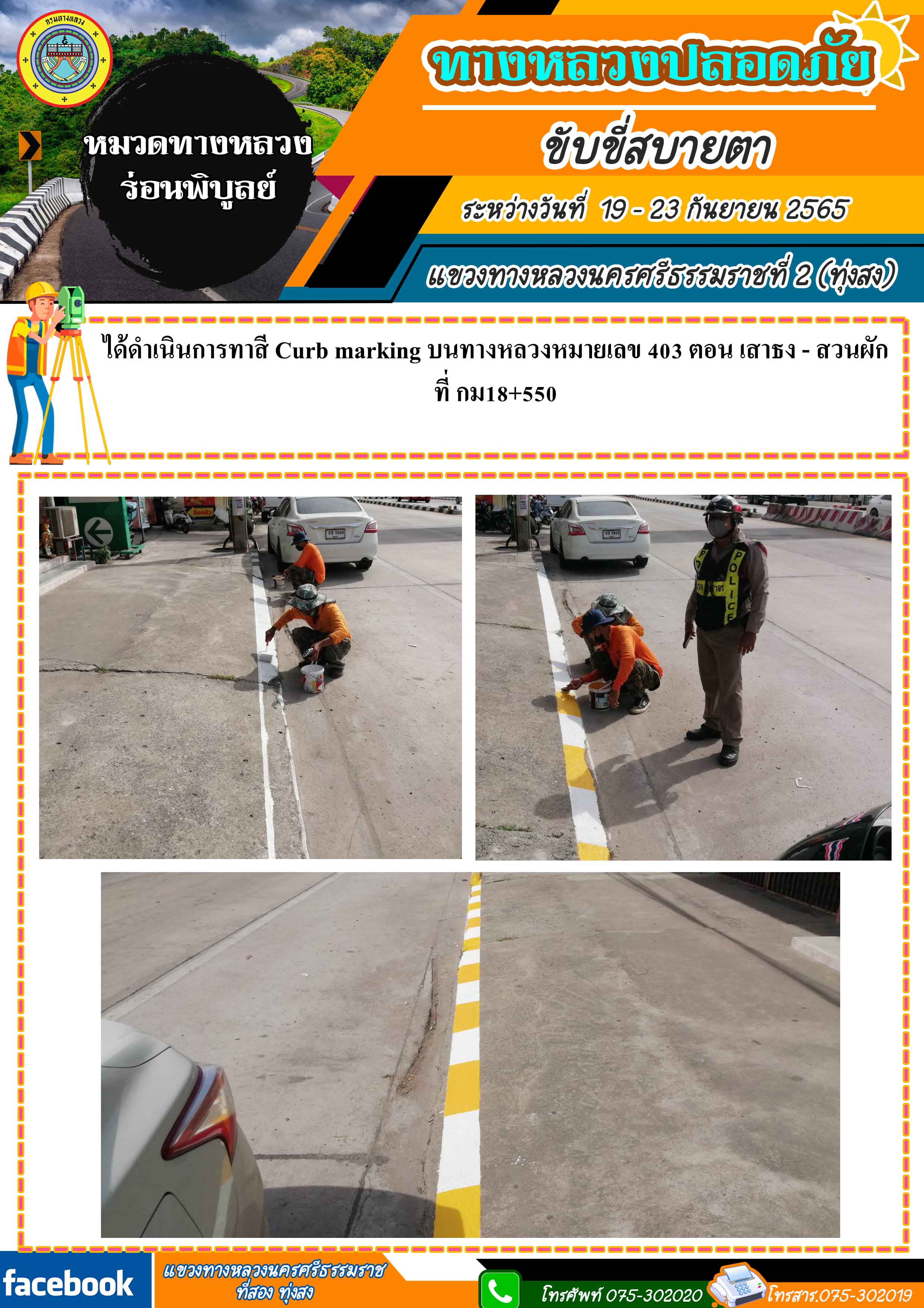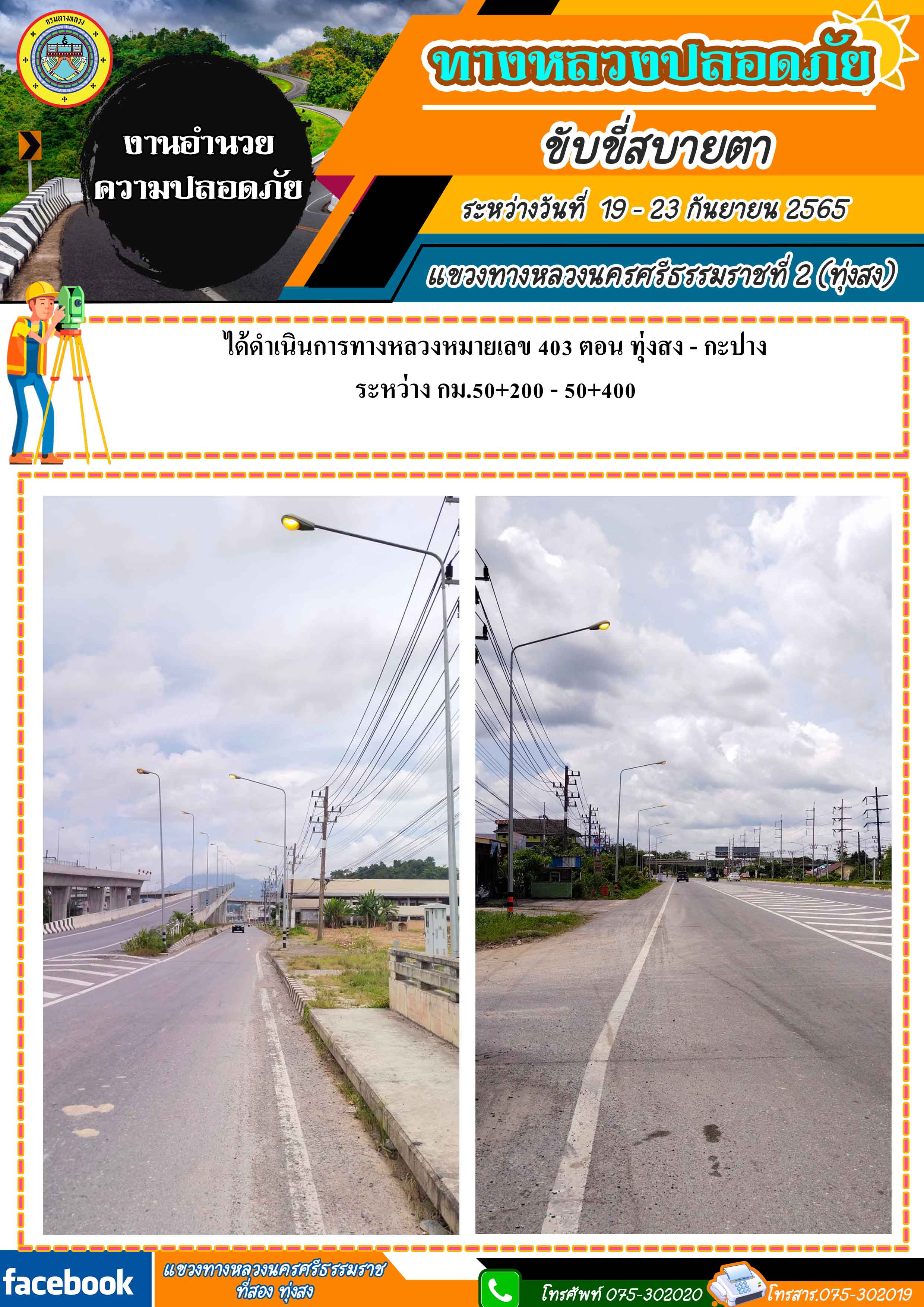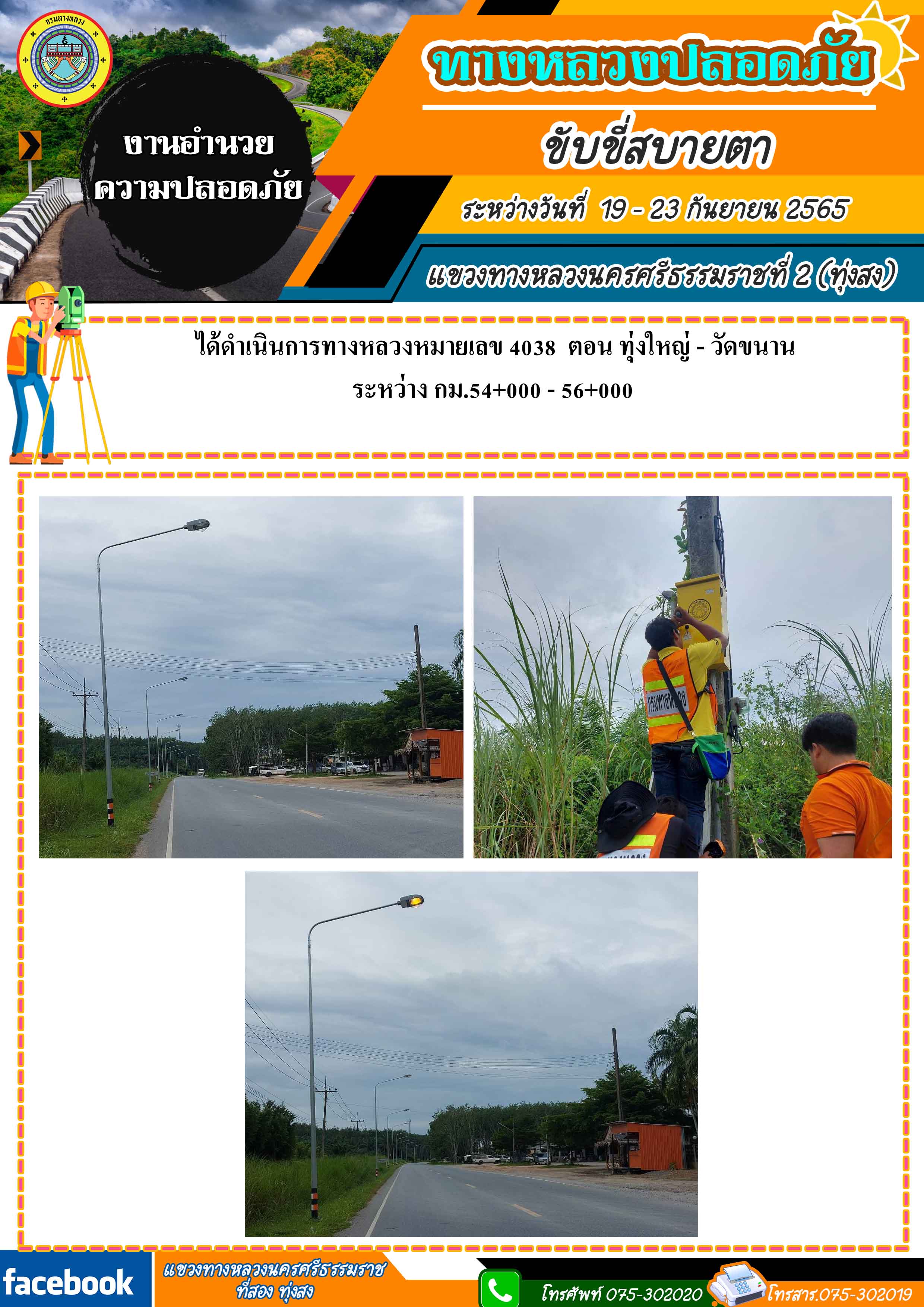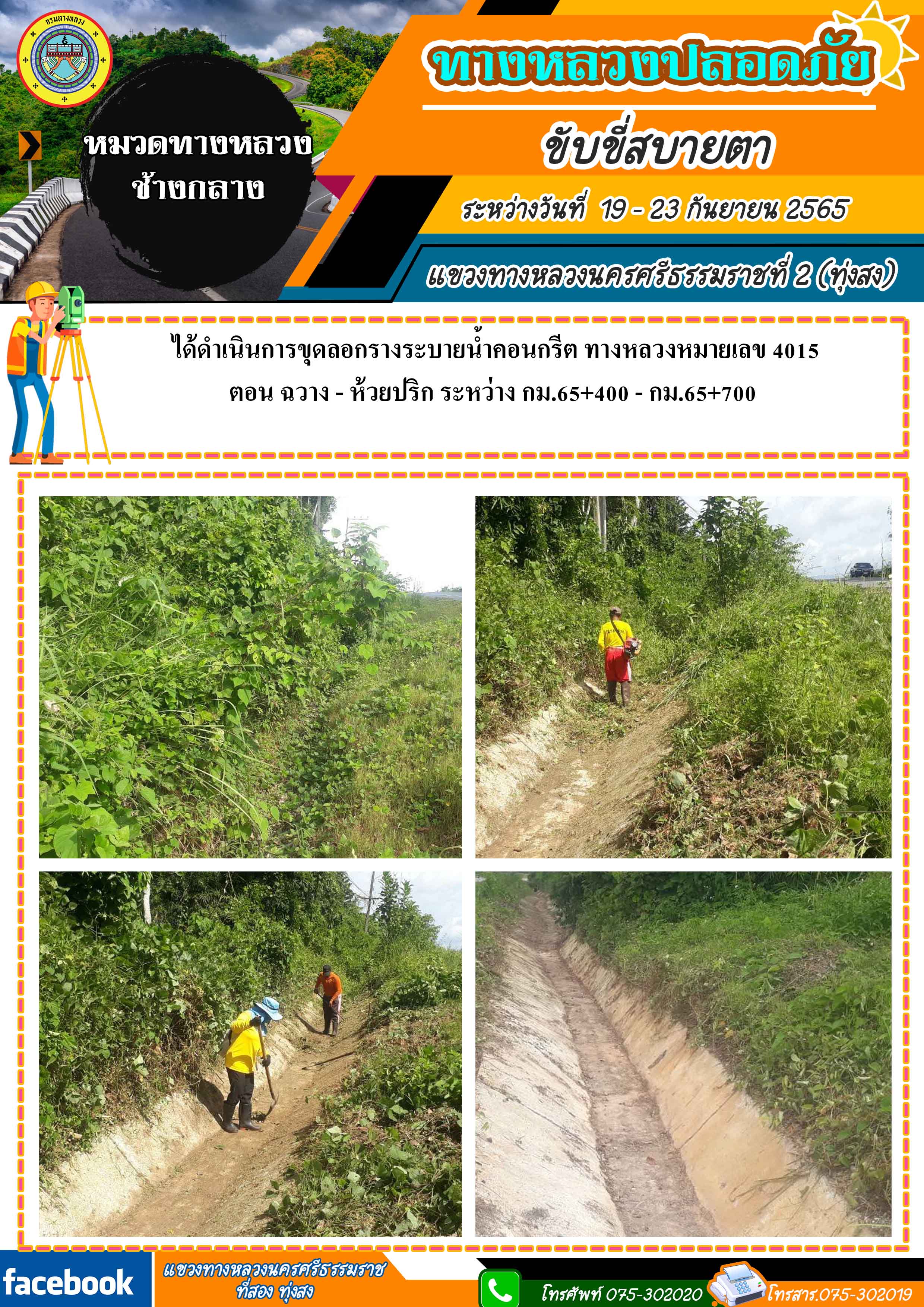 ผลการปฏิบัติงานประจำสัปดาห์ของแขวงทางหลวงนครศรีธรรมราชที่ 2 (ทุ่งสง) ระหว่างวันที่ 19 - 23 กันยายน 2565 โดยหมวดทางหลวงและหน่วยงานในสังกัด