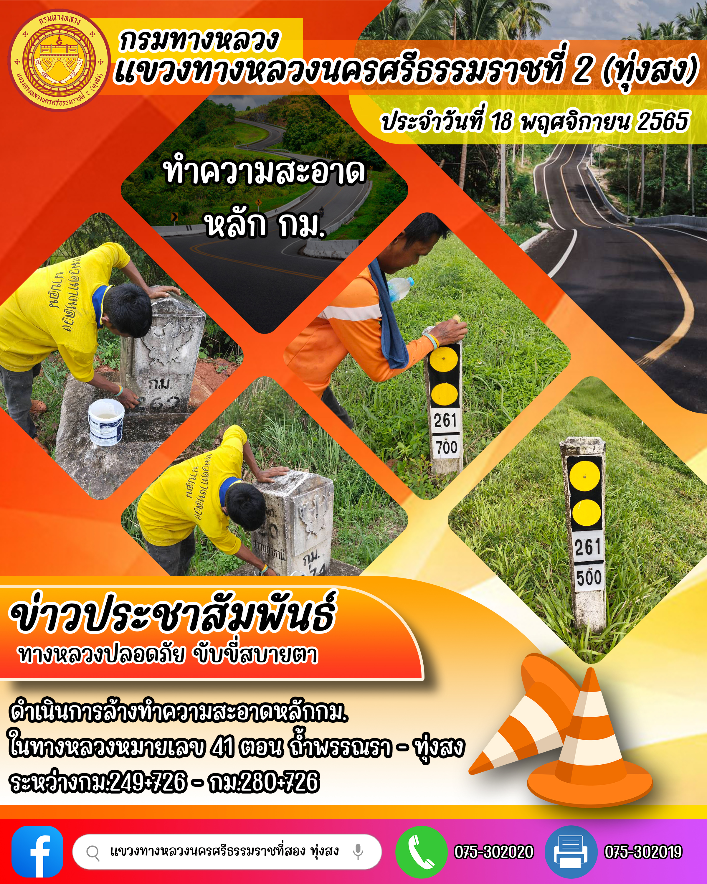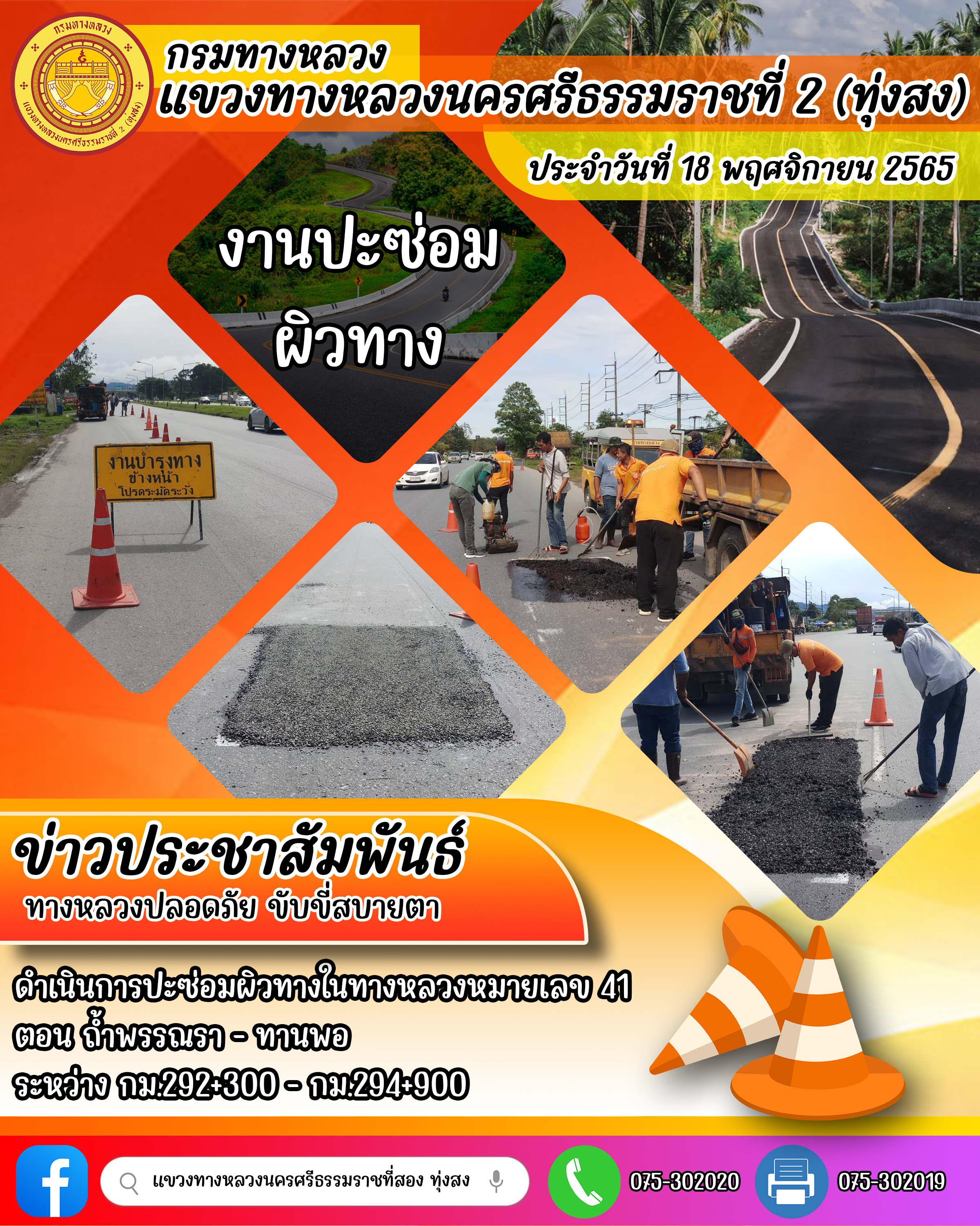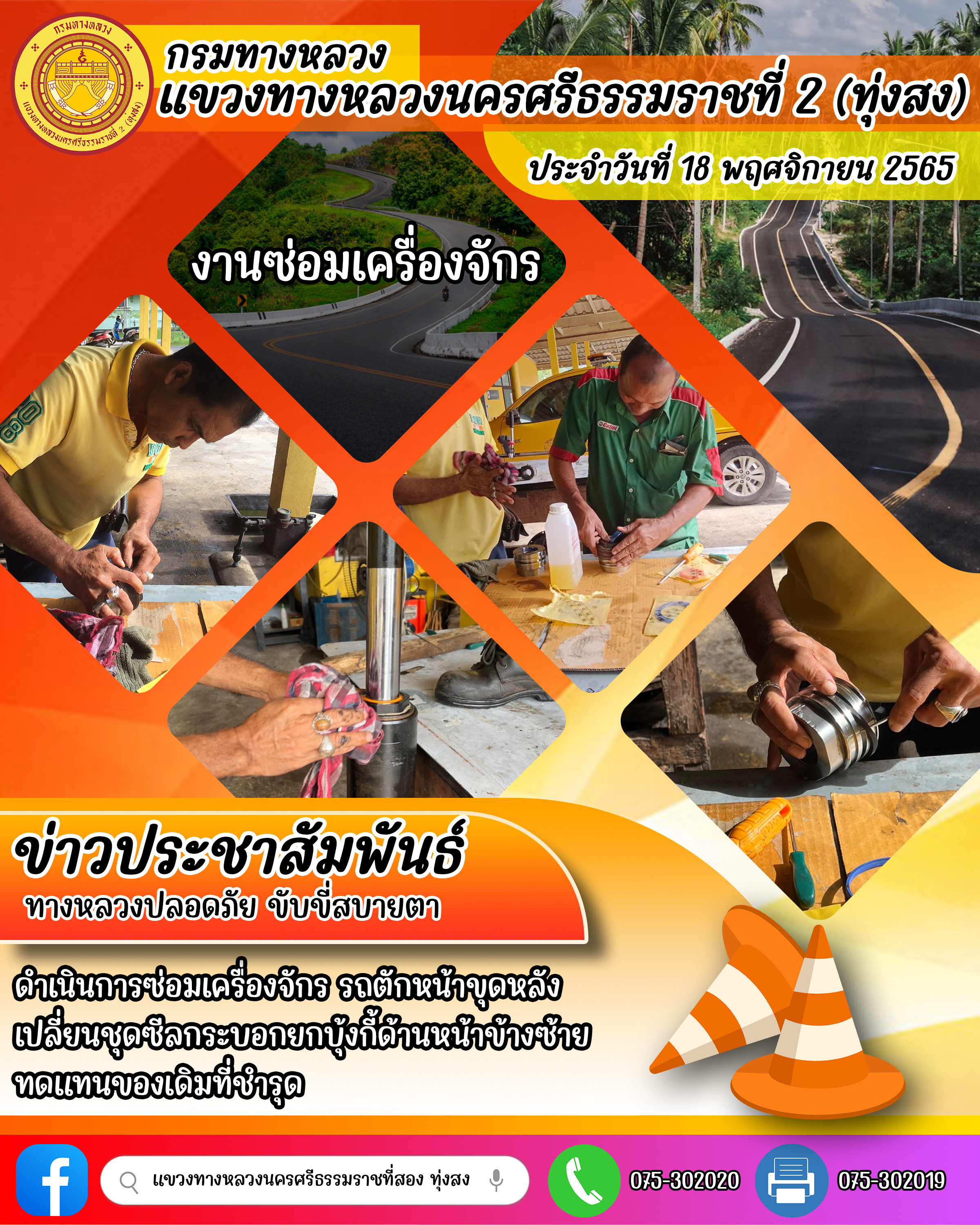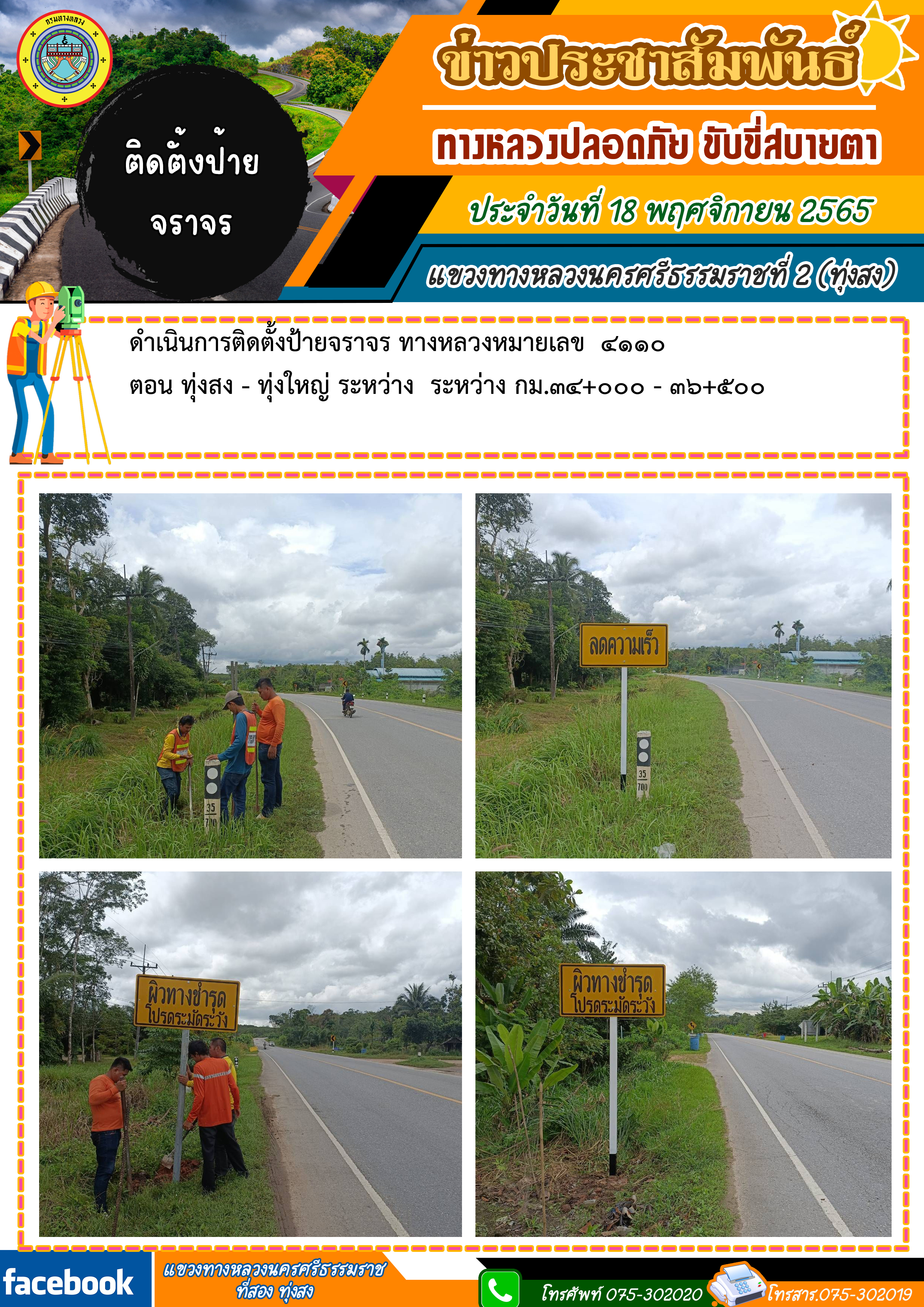 ผลการปฏิบัติงานของหมวดทางหลวงและหน่วยงานในสังกัด ประจำวันที่ 18 พฤศจิกายน 2565 ของหมวดทางหลวงและหน่วยงานในสังกัด