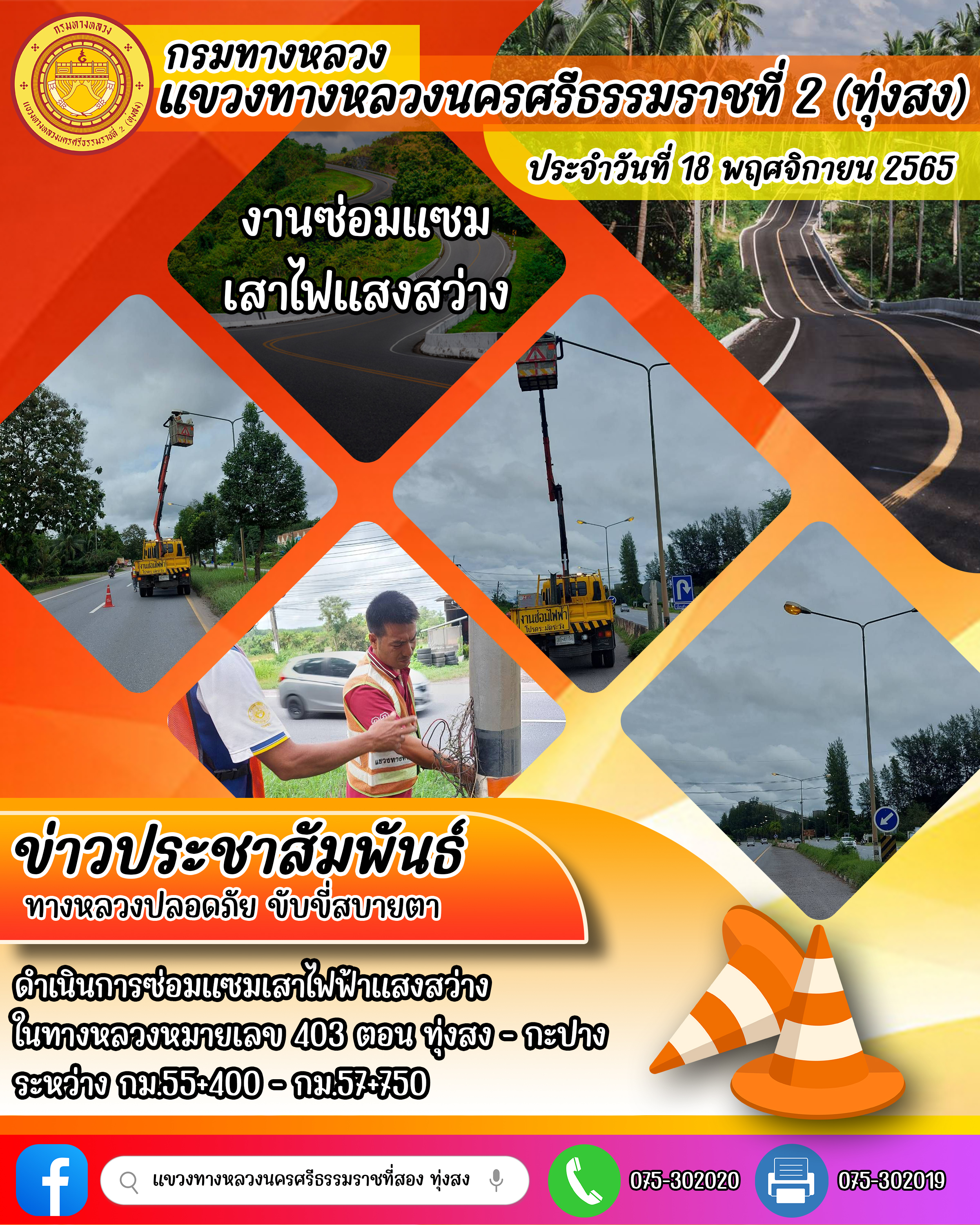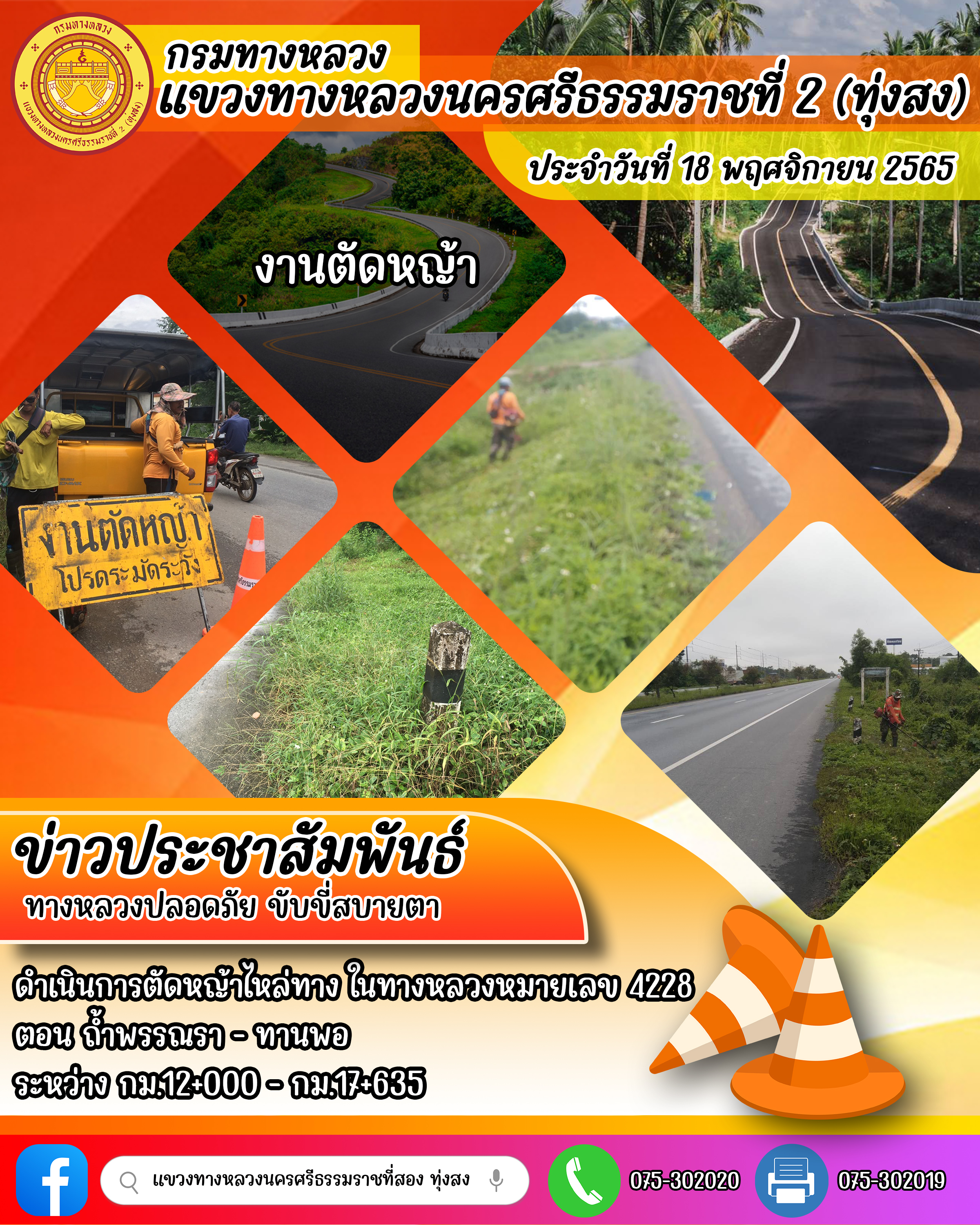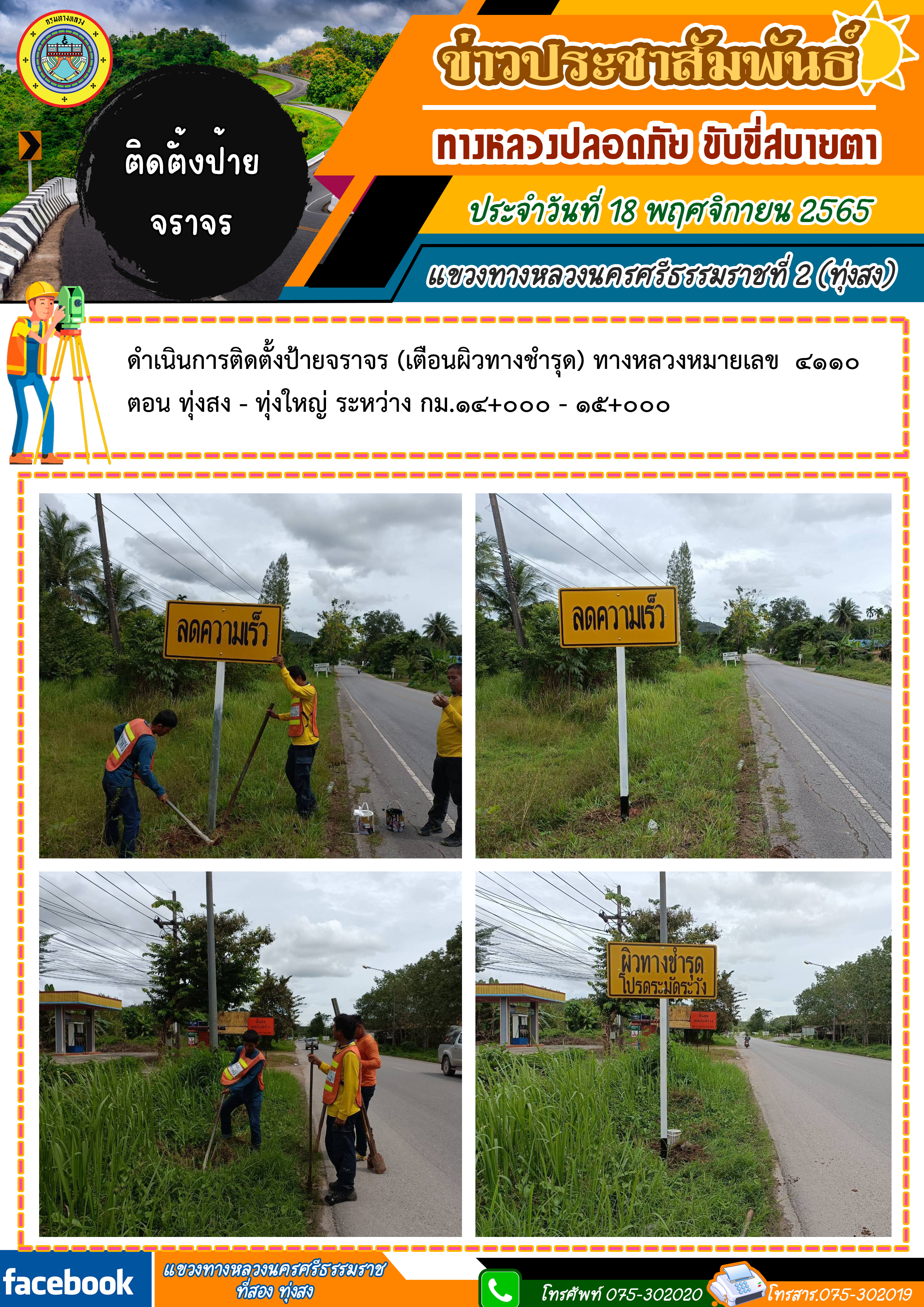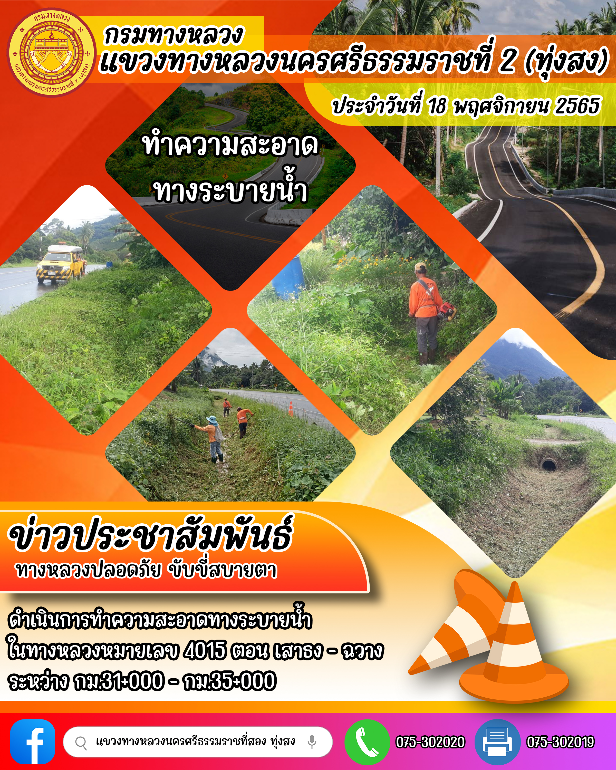 ผลการปฏิบัติงานของหมวดทางหลวงและหน่วยงานในสังกัด ประจำวันที่ 18 พฤศจิกายน 2565 ของหมวดทางหลวงและหน่วยงานในสังกัด