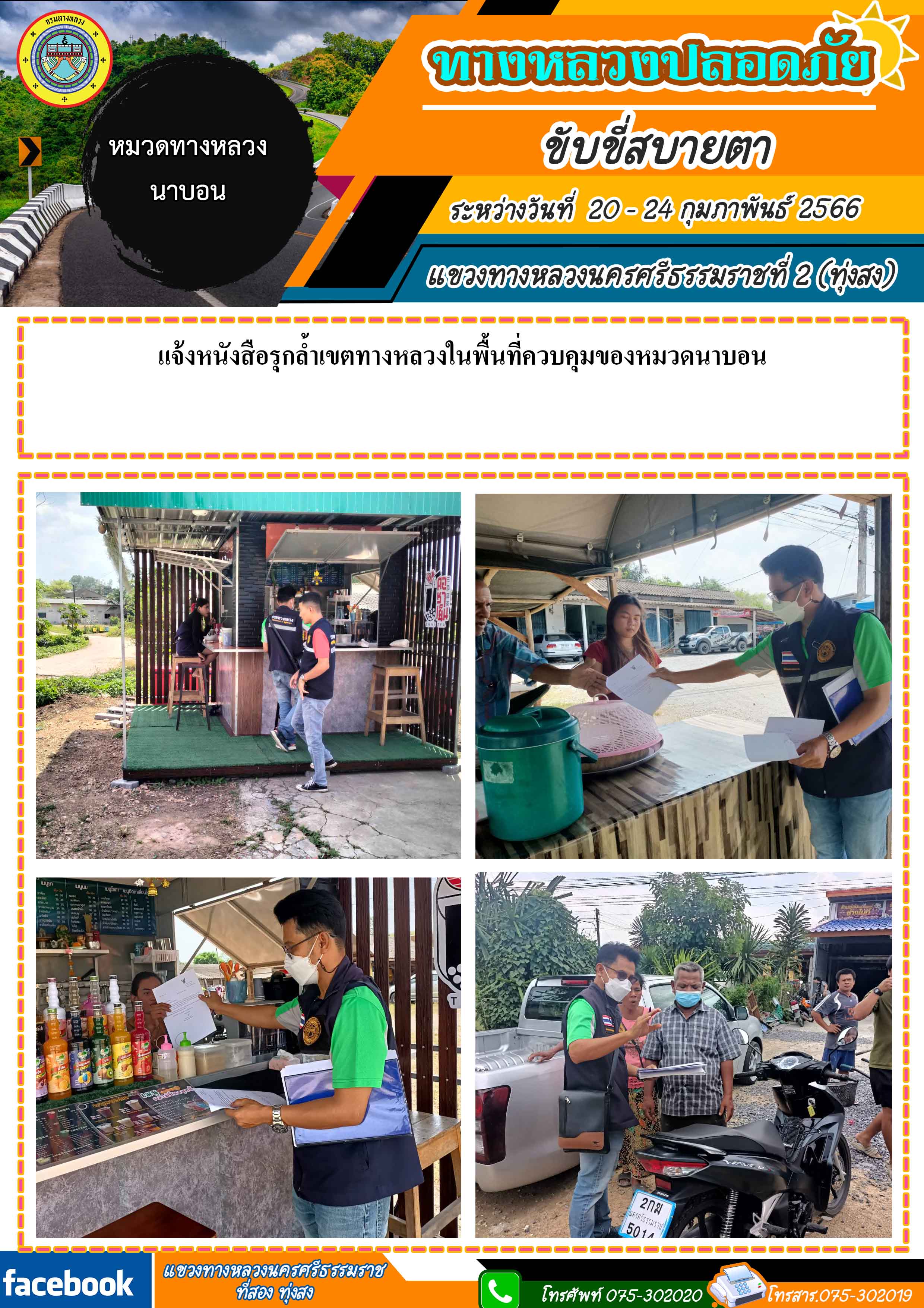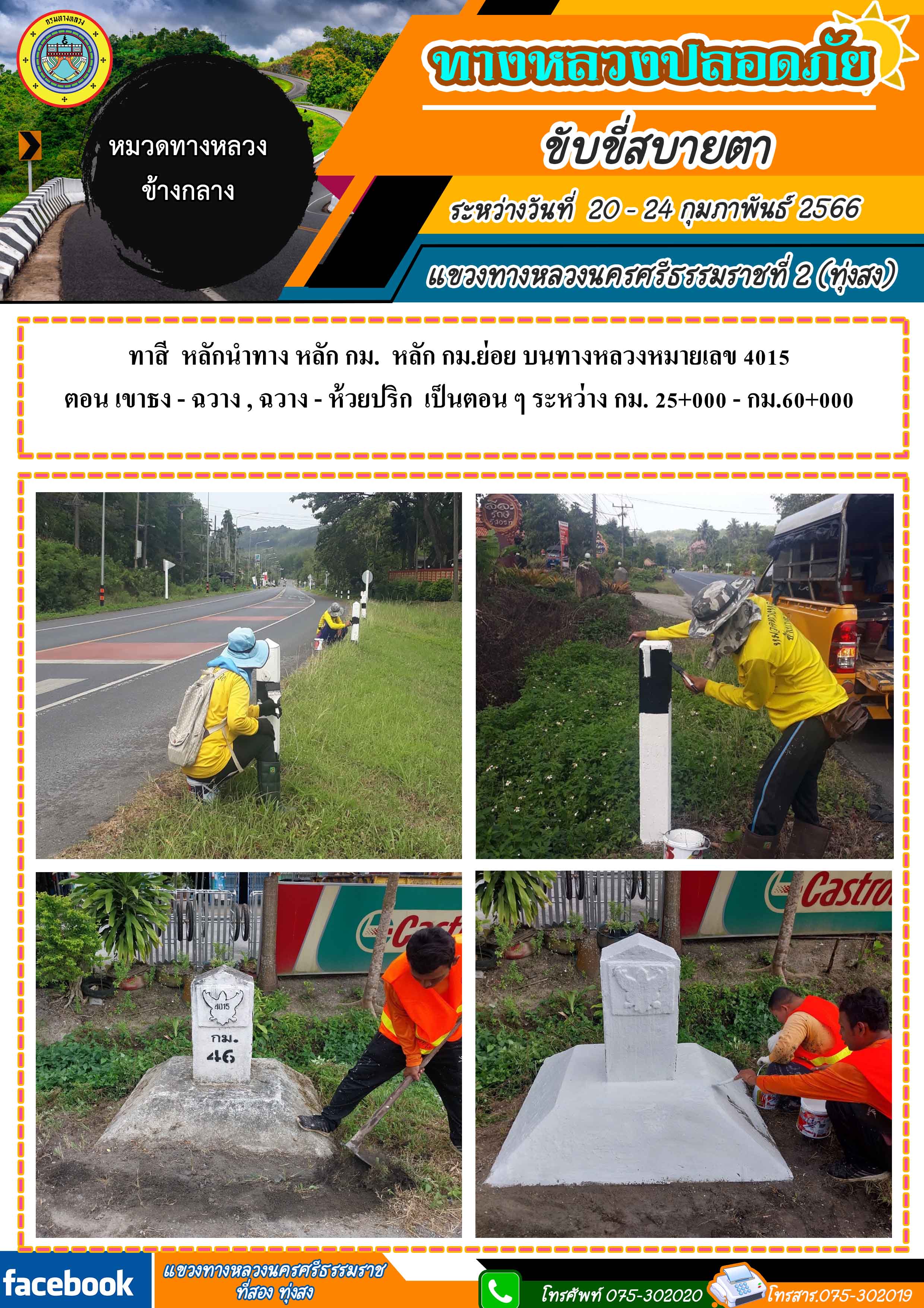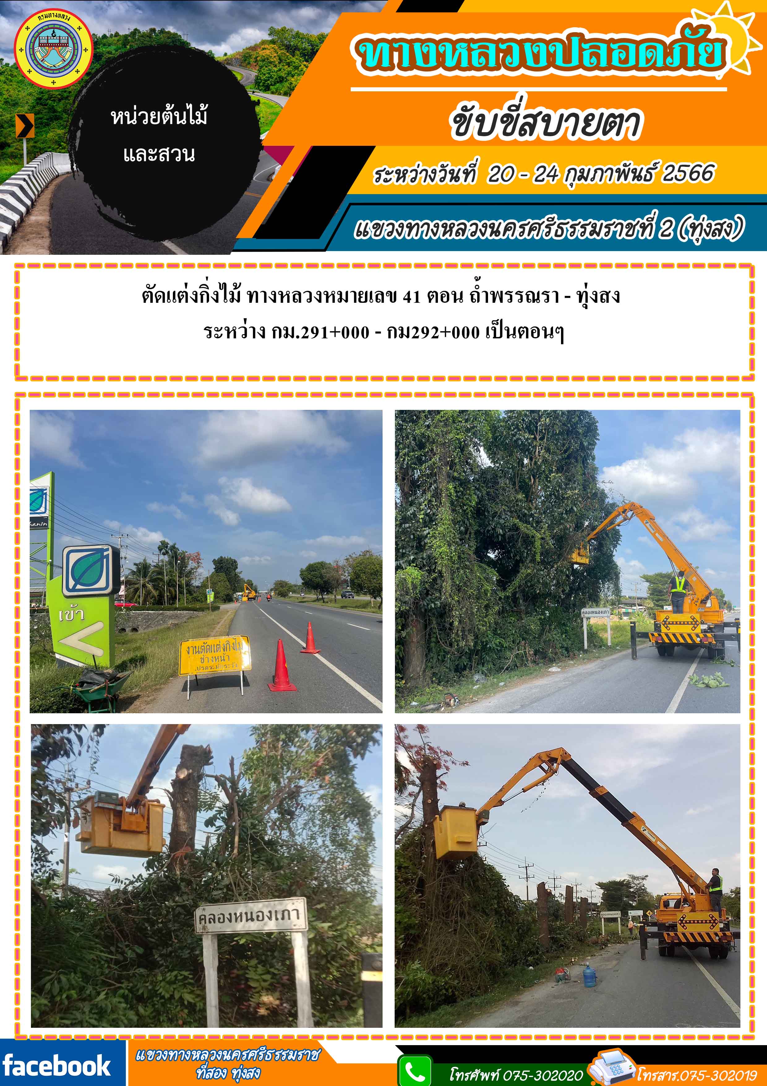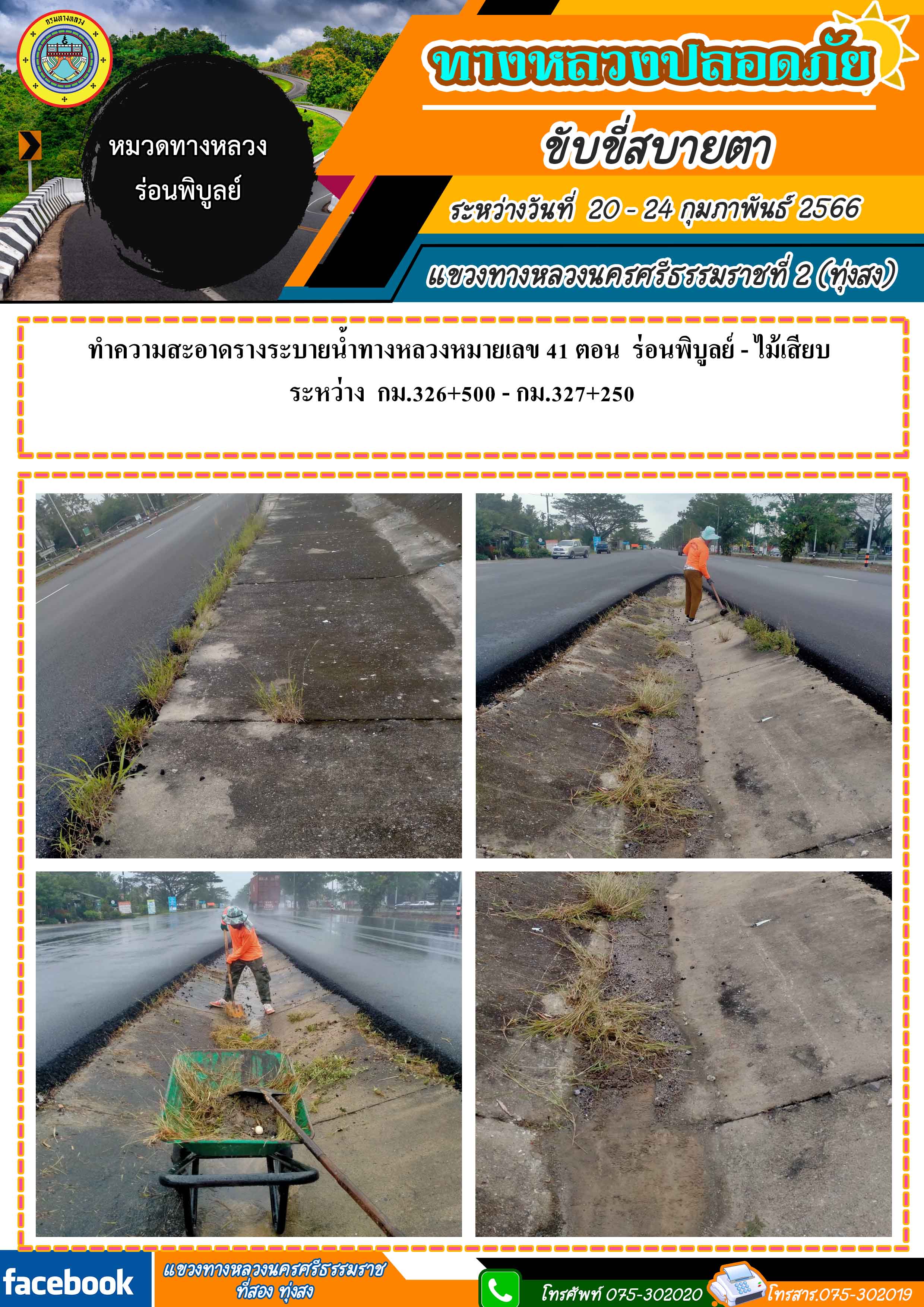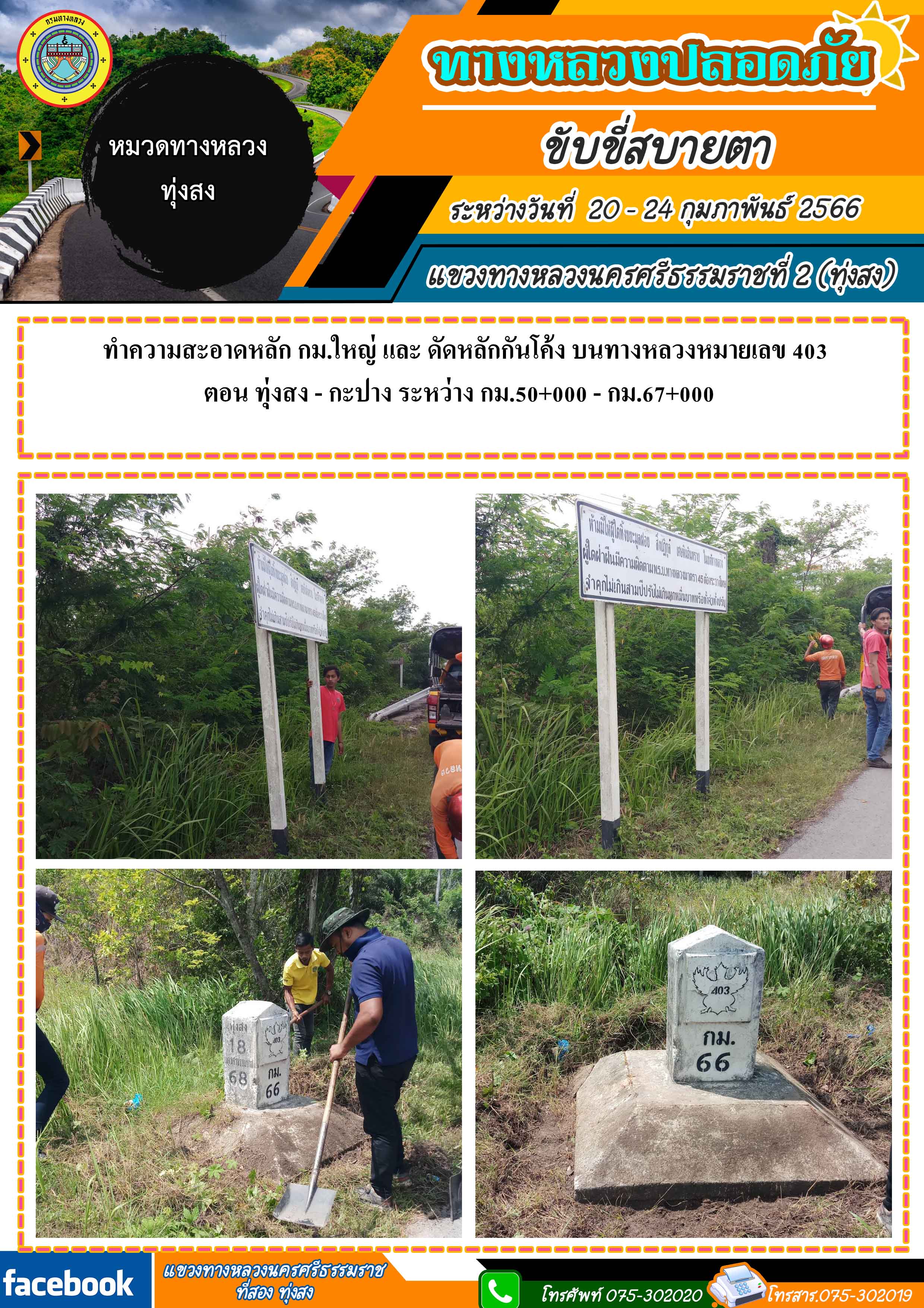 ผลการปฏิบัติงานประจำสัปดาห์ของแขวงทางหลวงนครศรีธรรมราชที่ 2 (ทุ่งสง) ระหว่างวันที่ 21 - 24 กุมภาพันธ์ 2566 โดยหมวดทางหลวงและหน่วยงานในสังกัด