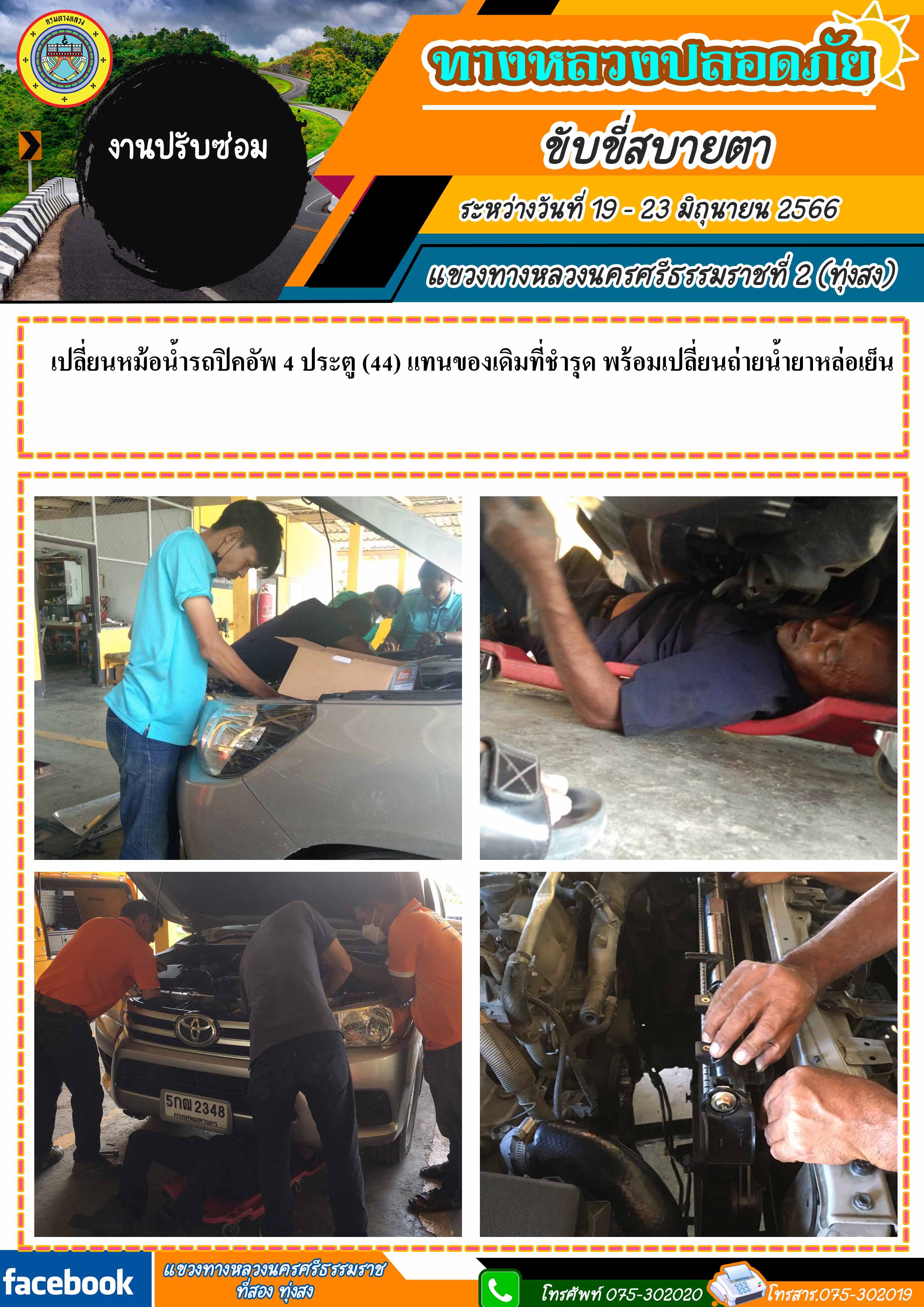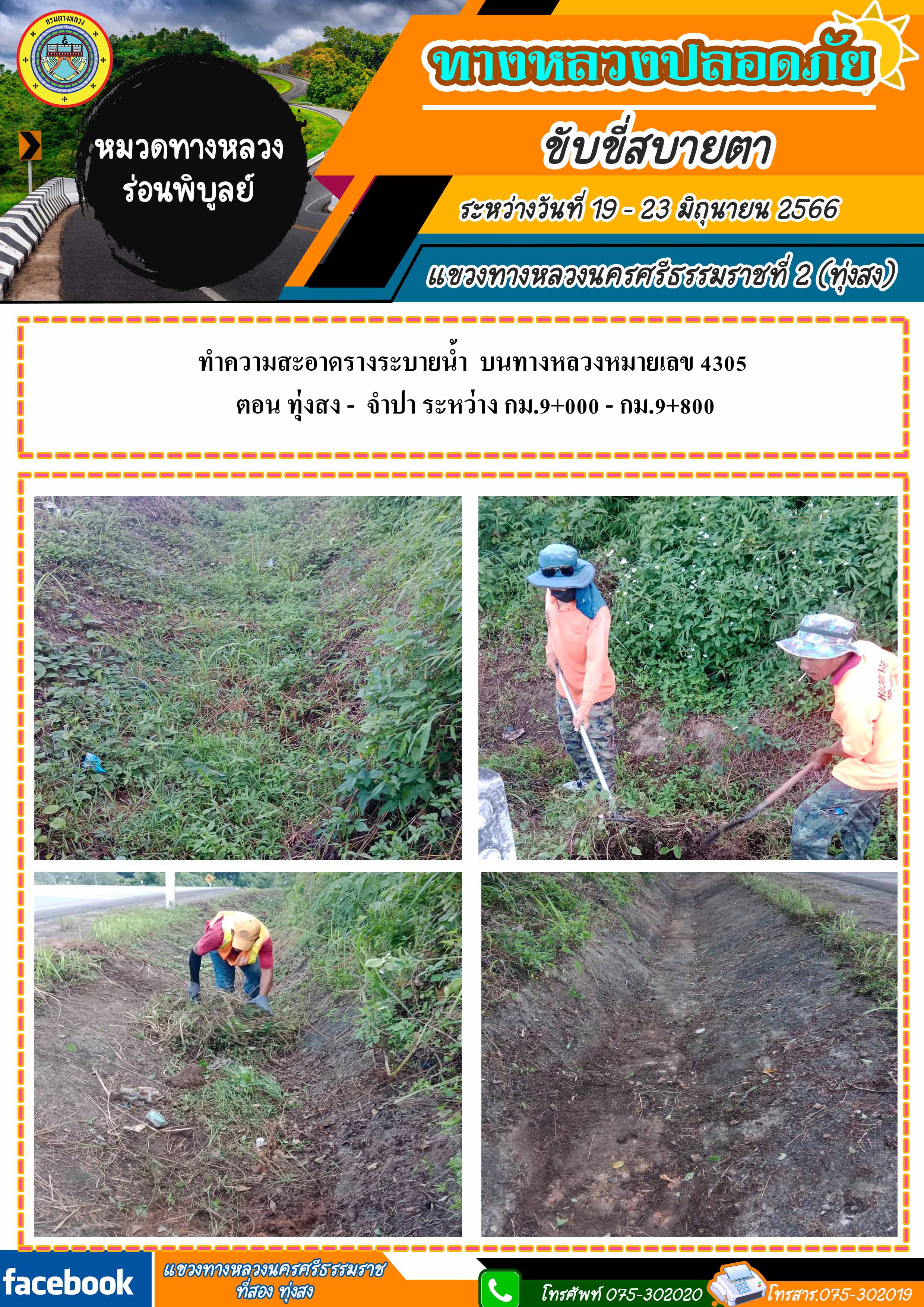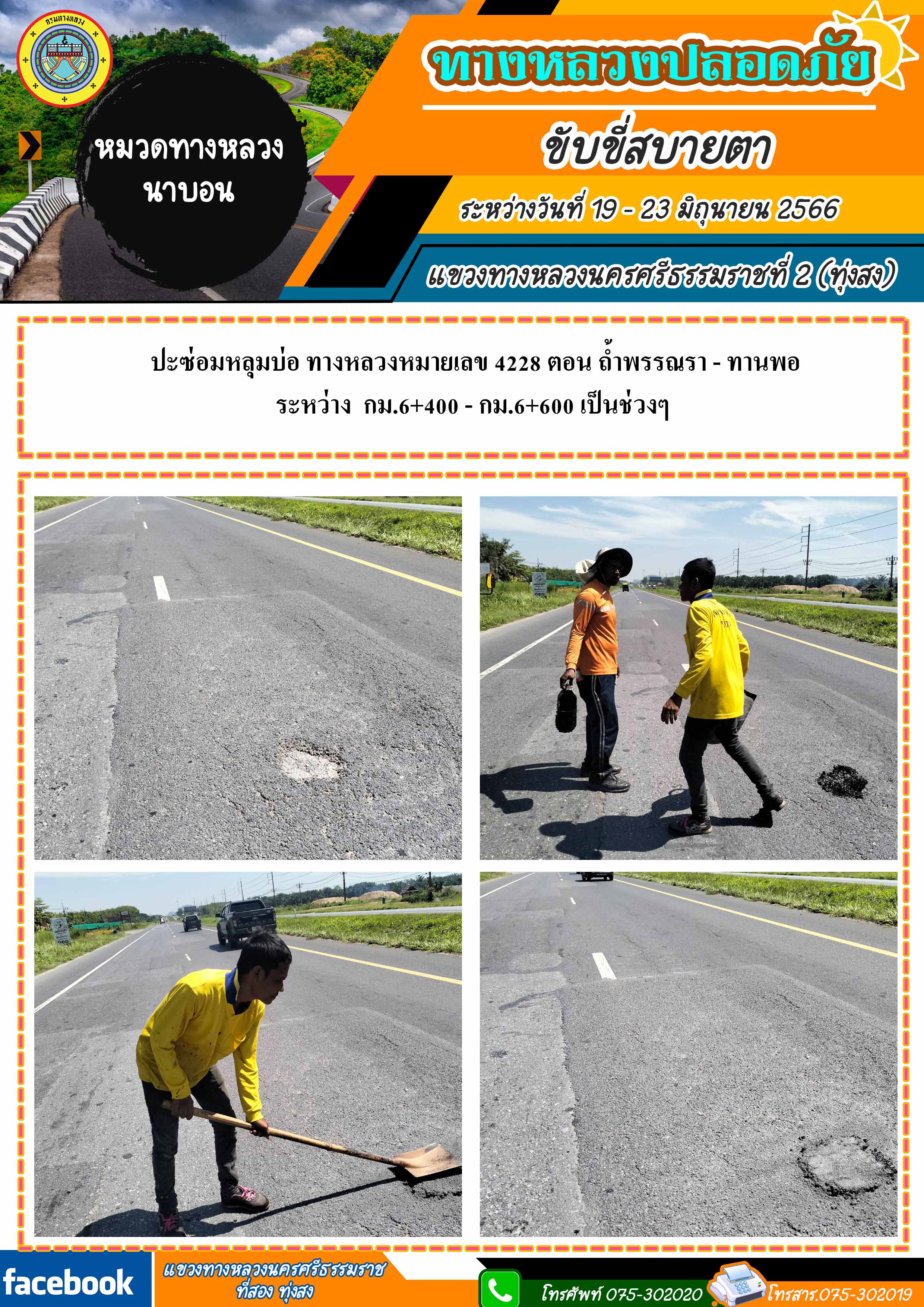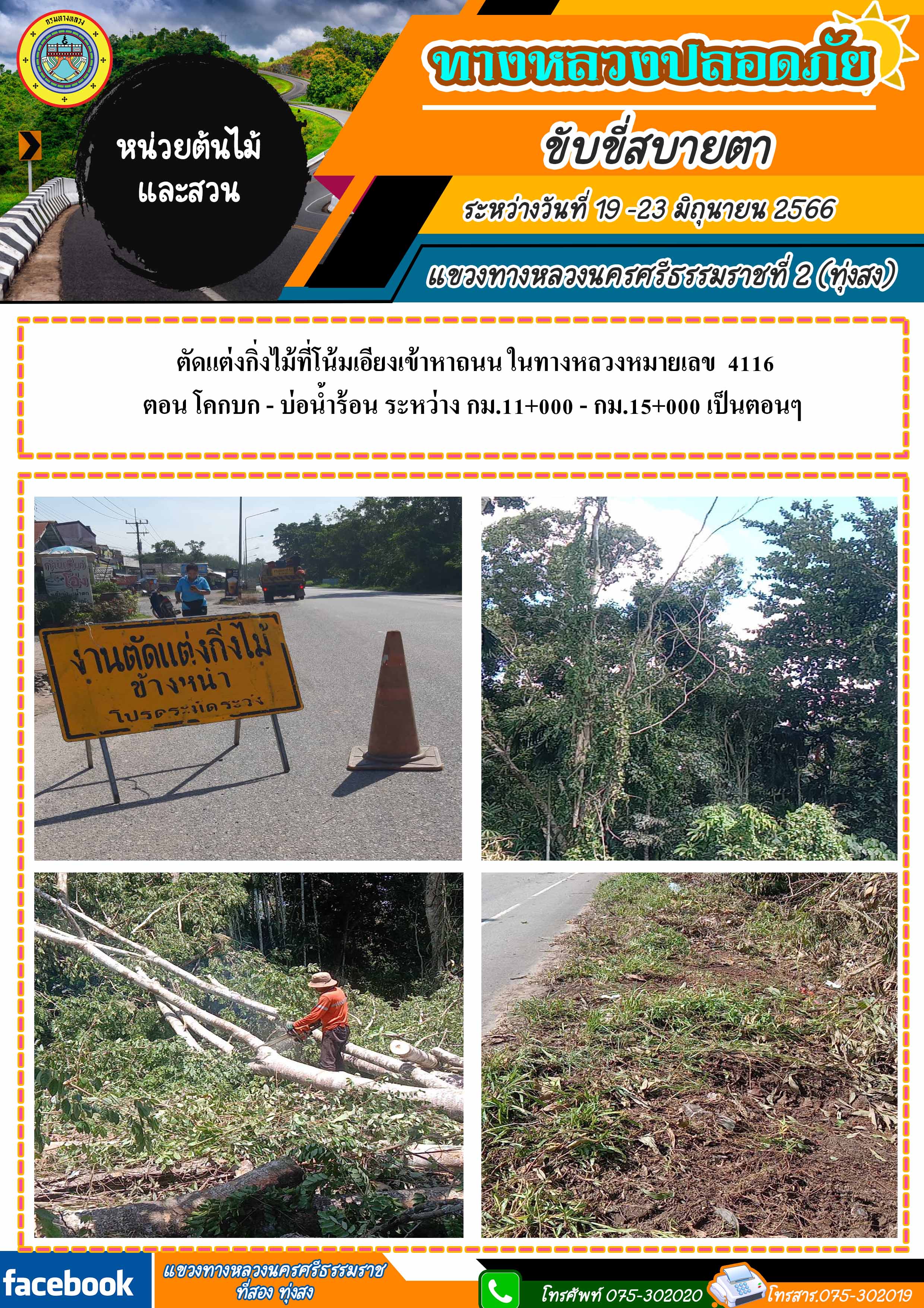 ทางหลวงปลอดภัย ขับขี่สบายตา ผลการปฏิบัติงานประจำสัปดาห์ของแขวงทางหลวงนครศรีธรรมราชที่ 2 (ทุ่งสง) ระหว่างวันที่ 19 - 23 มิถุนายน 2566 โดยหมวดทางหลวงและหน่วยงานในสังกัด