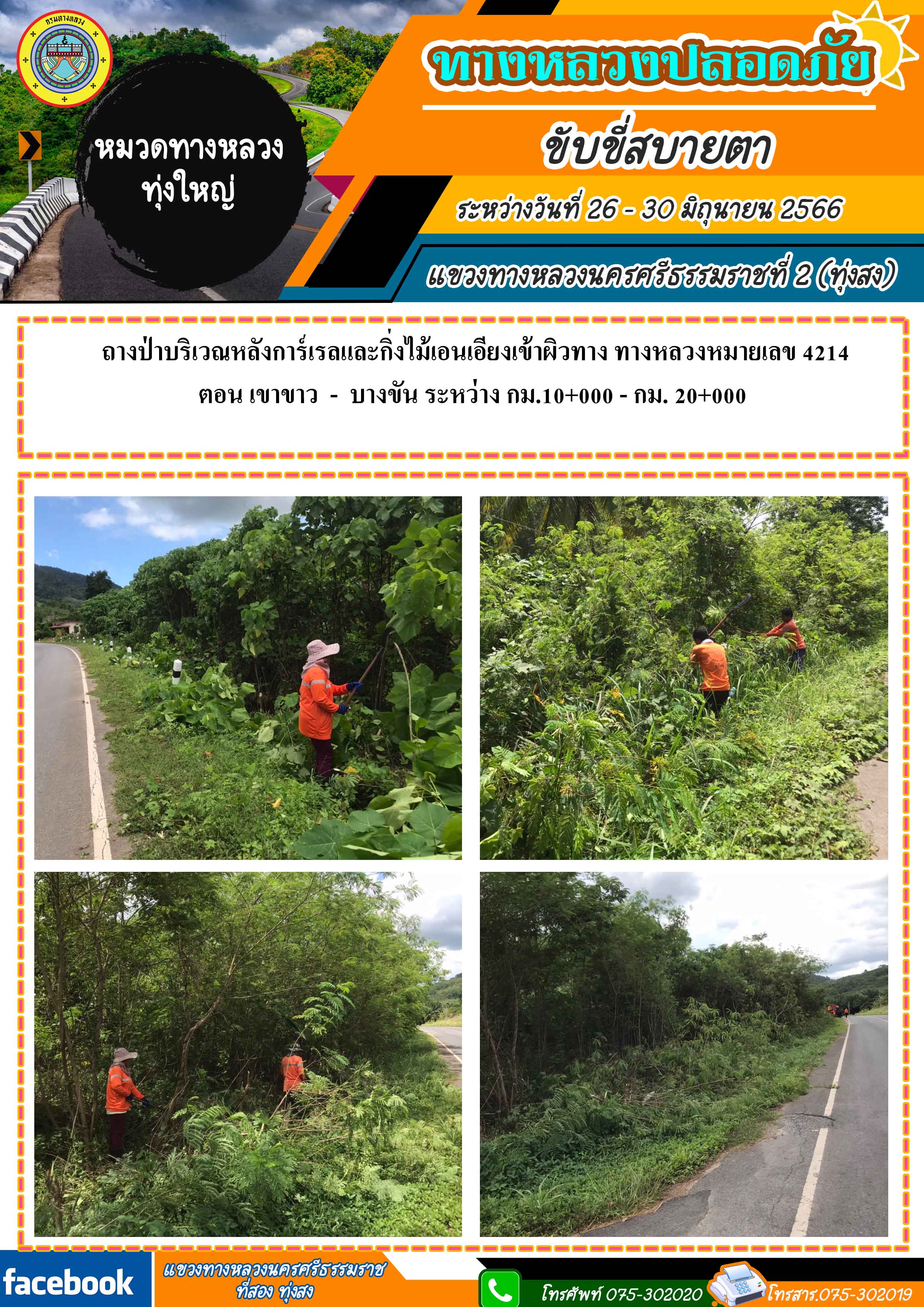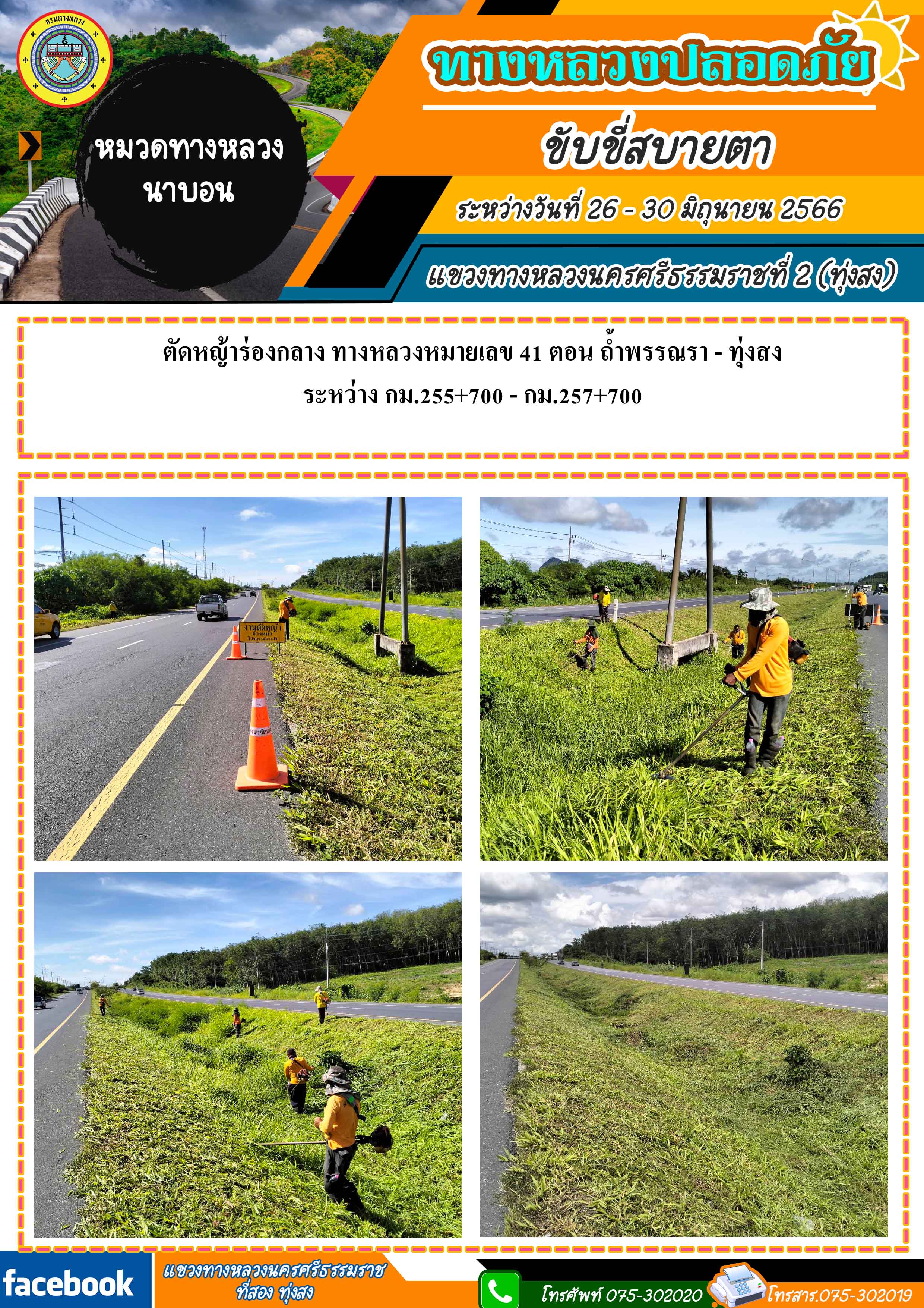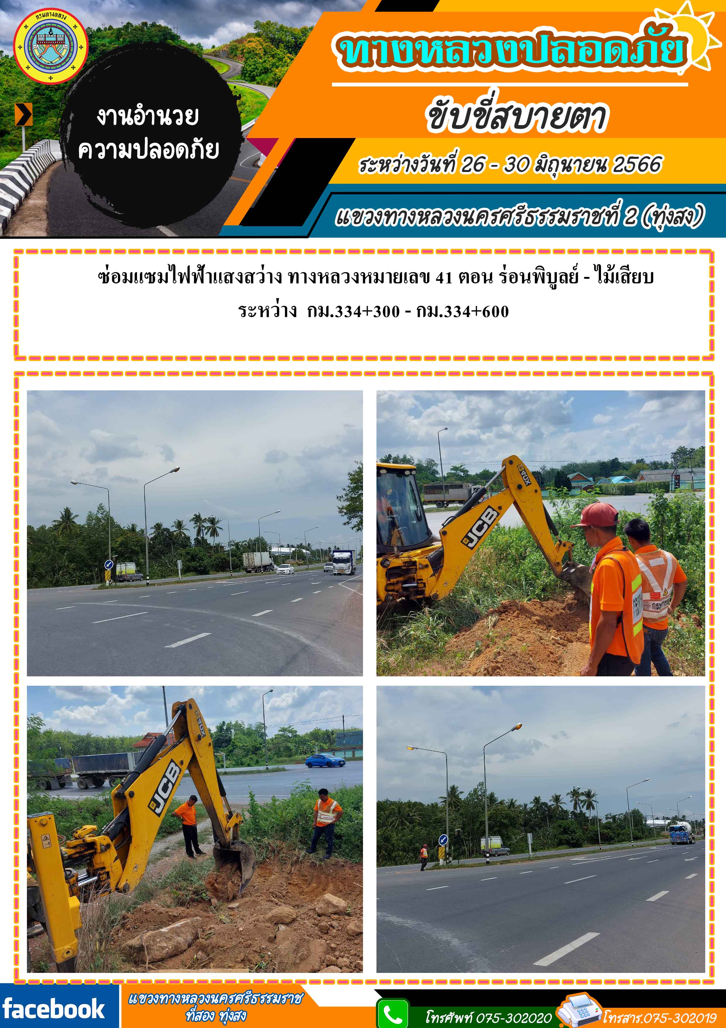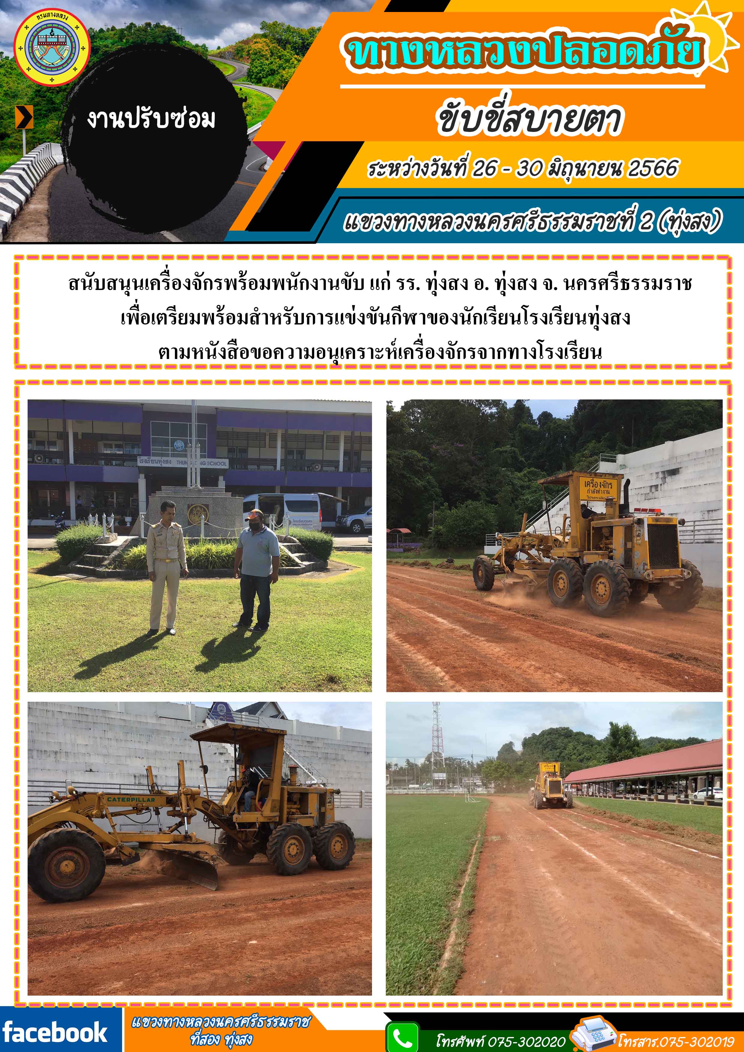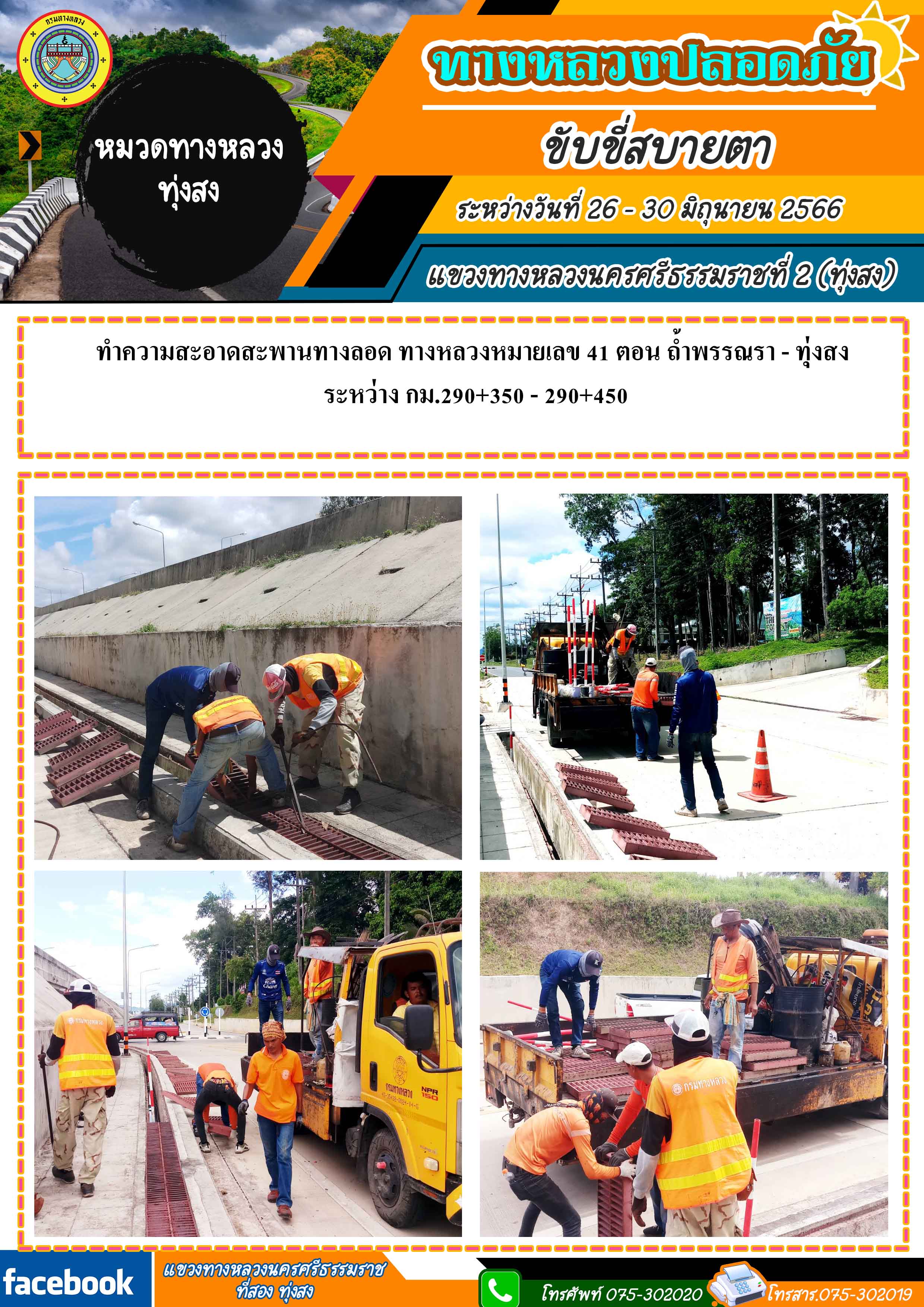 ผลการปฏิบัติงานประจำสัปดาห์ของแขวงทางหลวงนครศรีธรรมราชที่ 2 (ทุ่งสง) ระหว่างวันที่ 19 - 23 มิถุนายน 2566 โดยหมวดทางหลวงและหน่วยงานในสังกัด