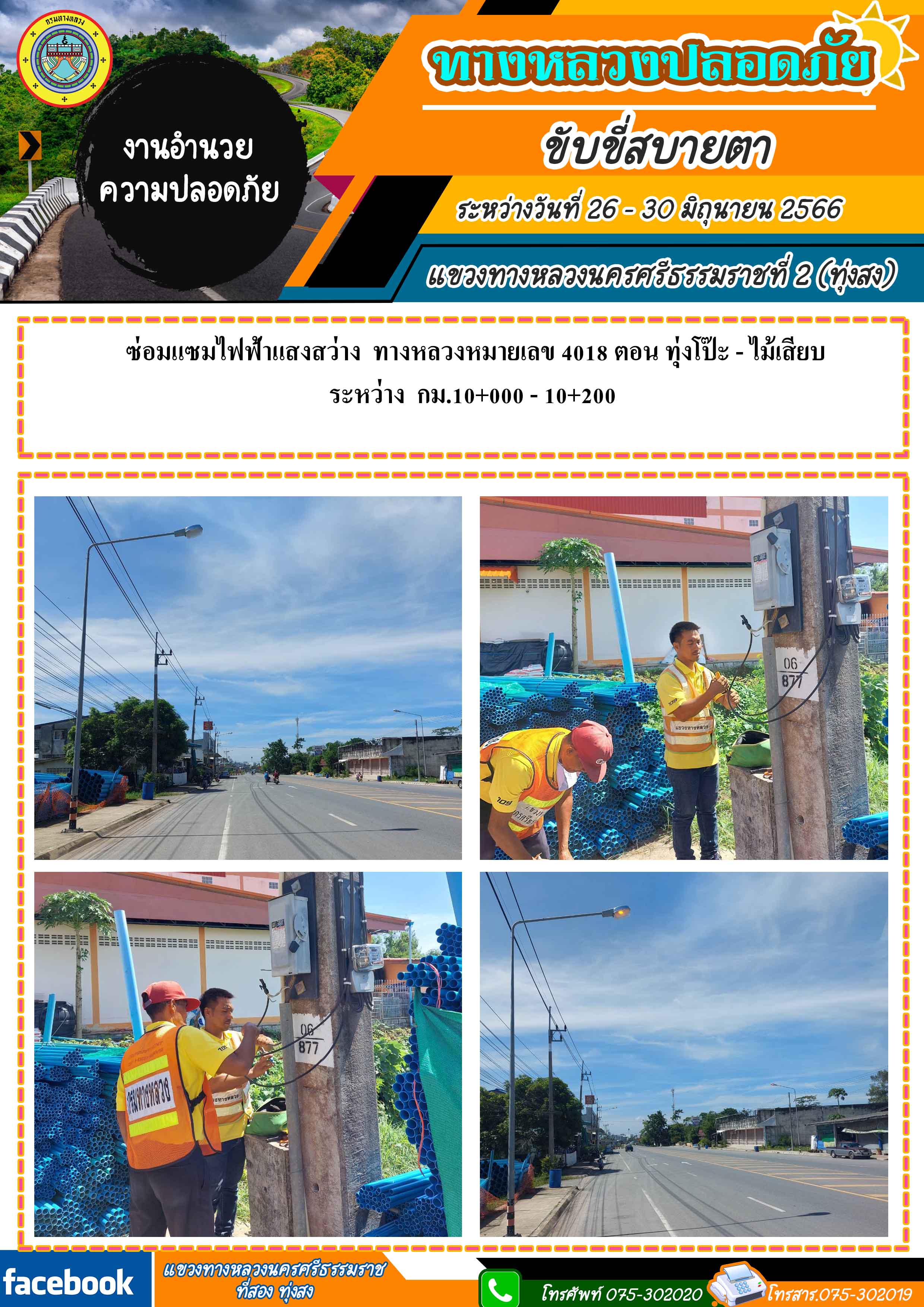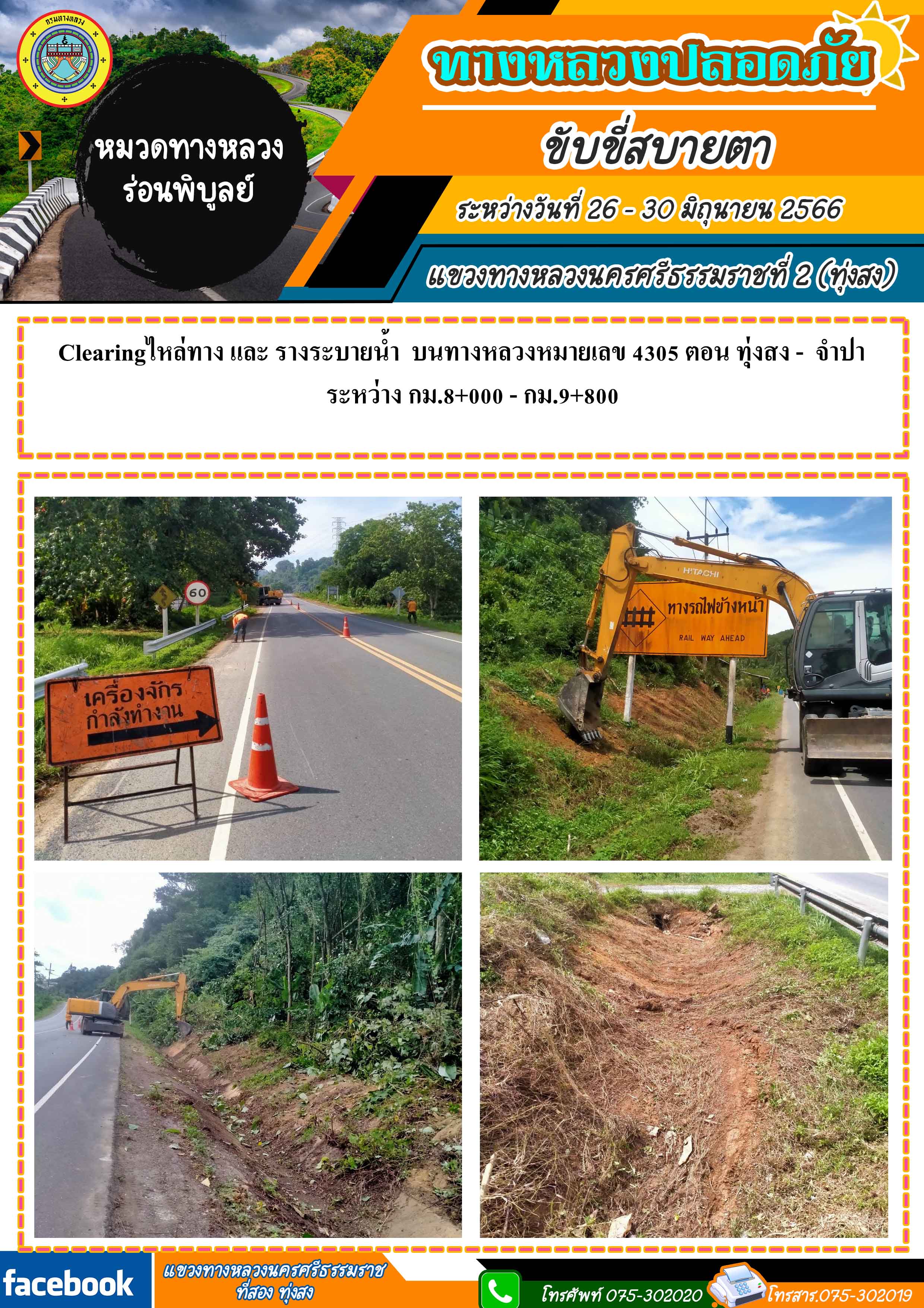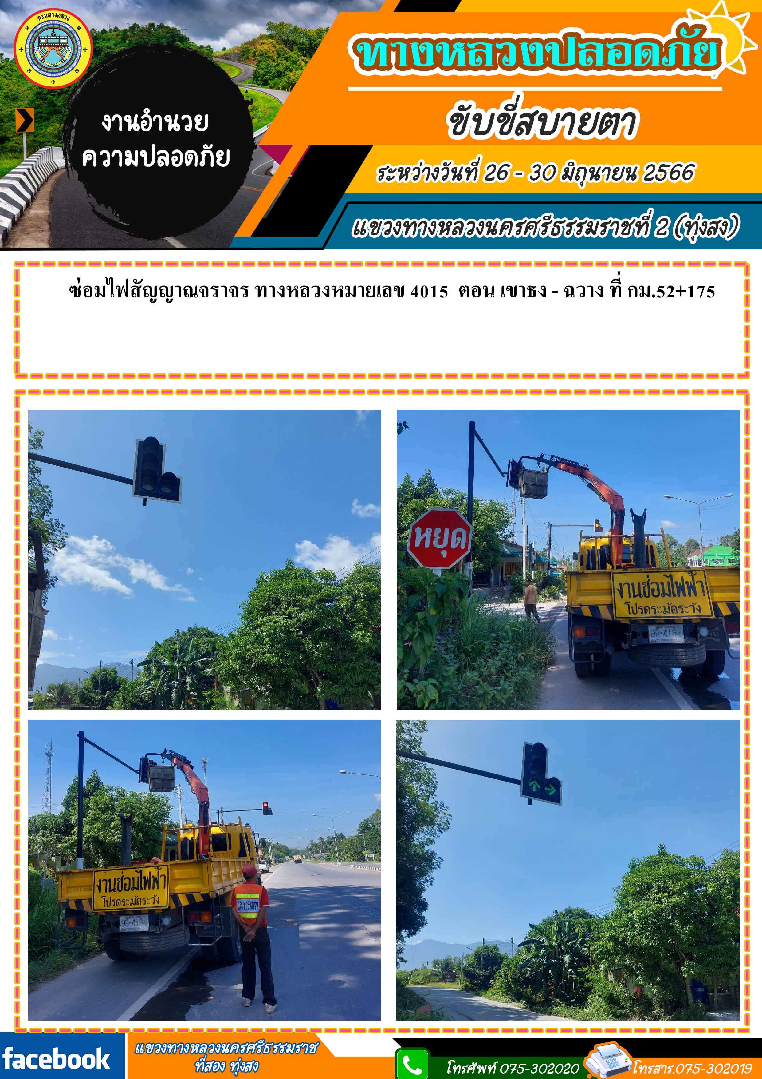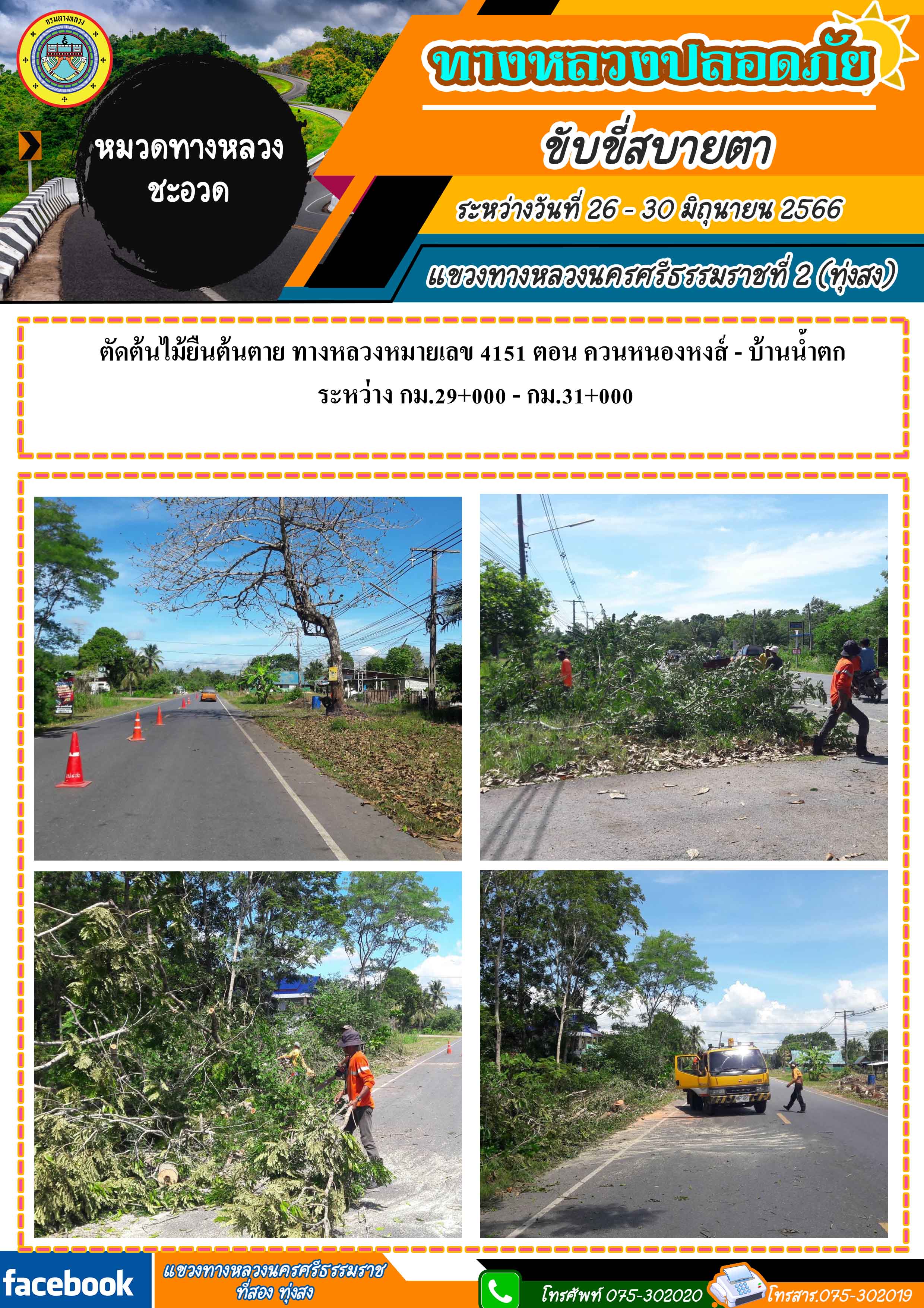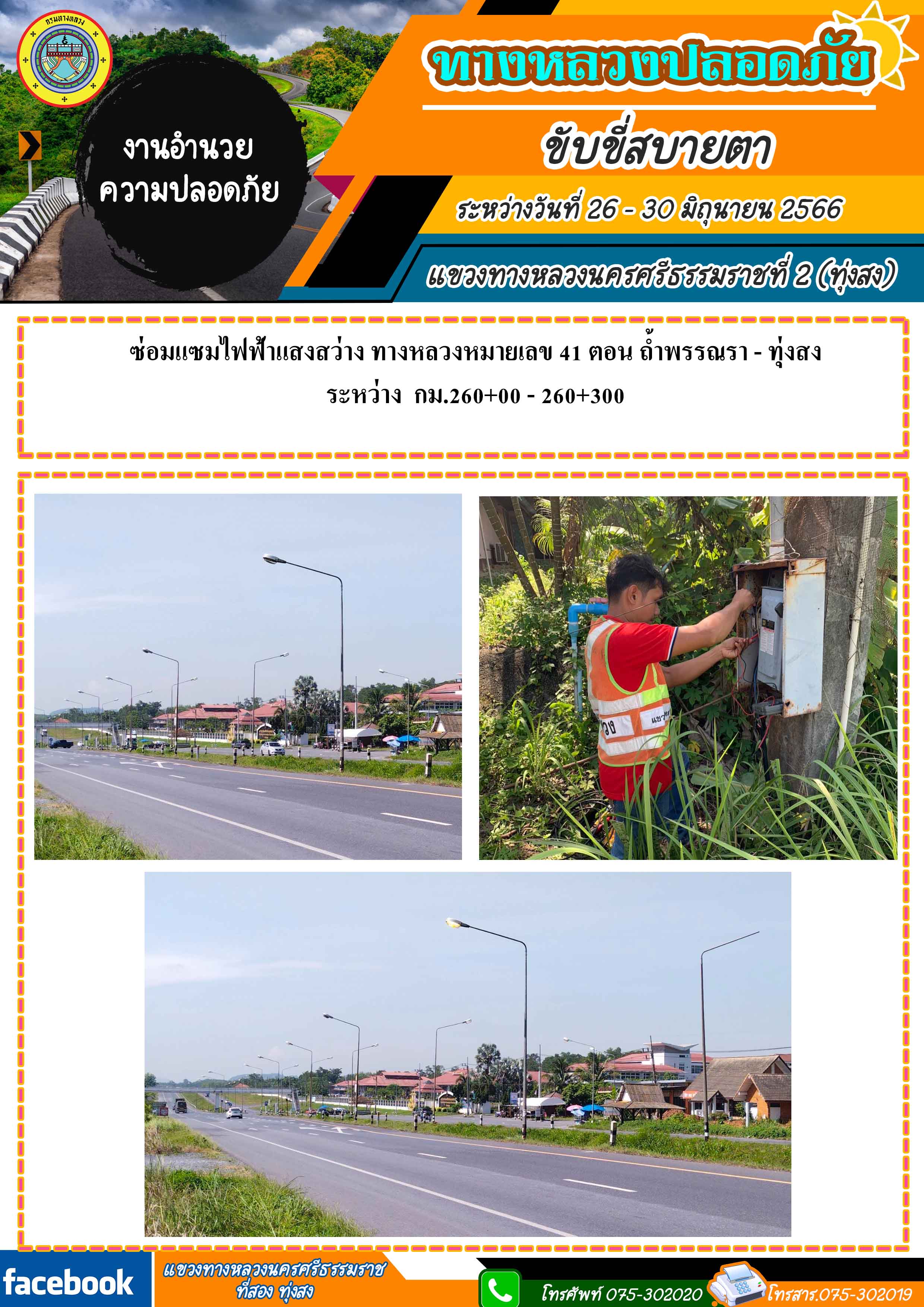 ผลการปฏิบัติงานประจำสัปดาห์ของแขวงทางหลวงนครศรีธรรมราชที่ 2 (ทุ่งสง) ระหว่างวันที่ 19 - 23 มิถุนายน 2566 โดยหมวดทางหลวงและหน่วยงานในสังกัด