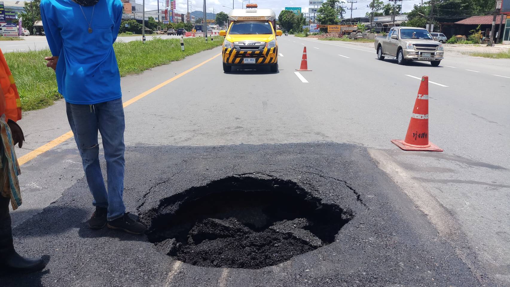 แขวงทางหลวงนครศรีธรรมราชที่ 2 (ทุ่งสง) ได้ดำเนินการขุดซ่อมผิวทาง ในทางหลวงหมายเลข 41 ตอน ถ้ำพรรณรา - ทุ่งสง ที่ กม.293+350 ด้านขวาทาง เนื่องจากถนนเกิดการทรุดตัวสาเหตุเกิดจากมีน้ำซึมเข้าวัสดุคันทางทำให้เกิดความชื้นและเกิดการทรุดตัวเป็นโพรงบนถนน หลังจากเกิดเหตุ แขวงฯ ได้ดำเนินการขุดซ่อมผิวทางโดยเร่งด่วนทำให้ขณะนี้สามารถใช้งานทางหลวงได้ตามปกติแล้ว