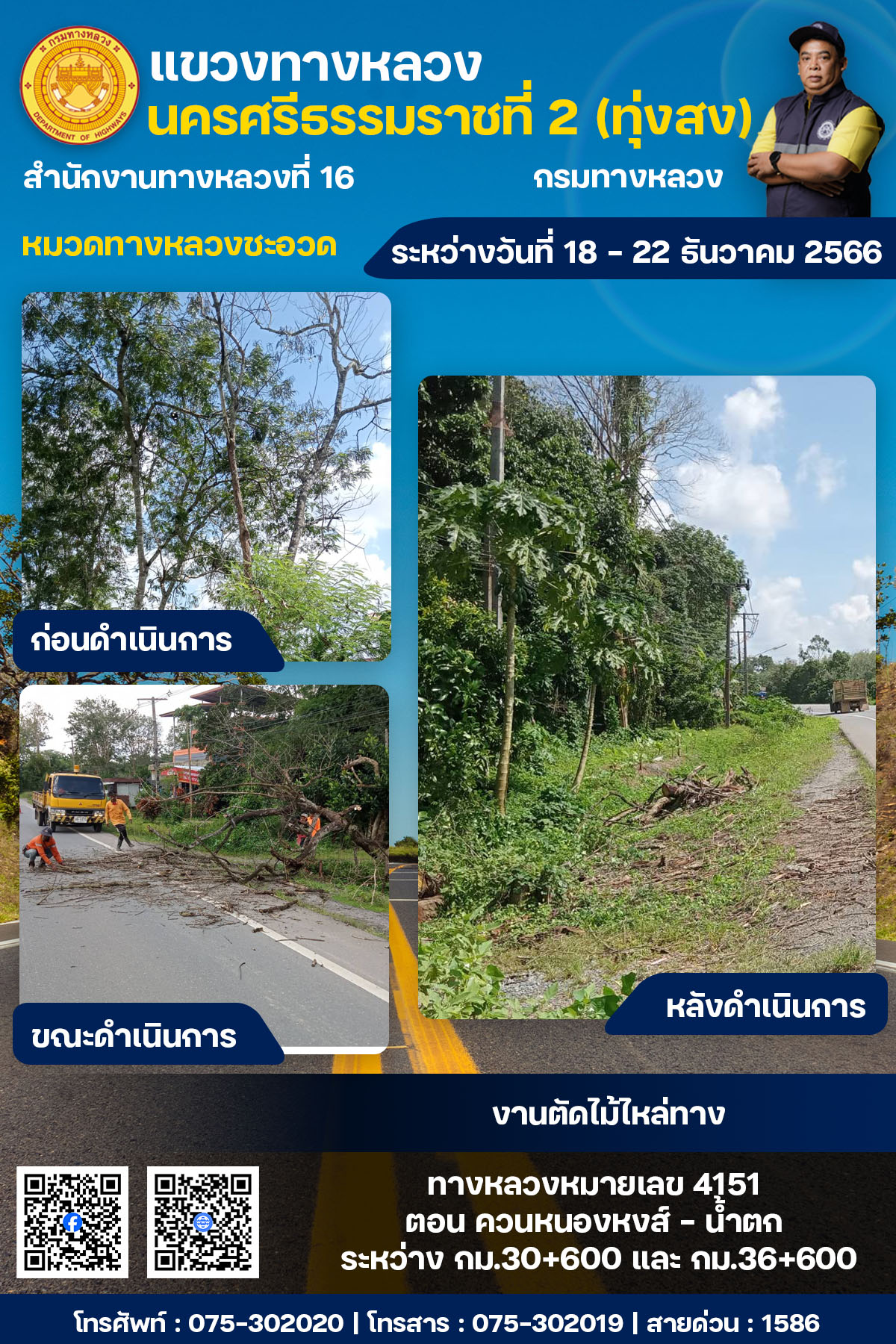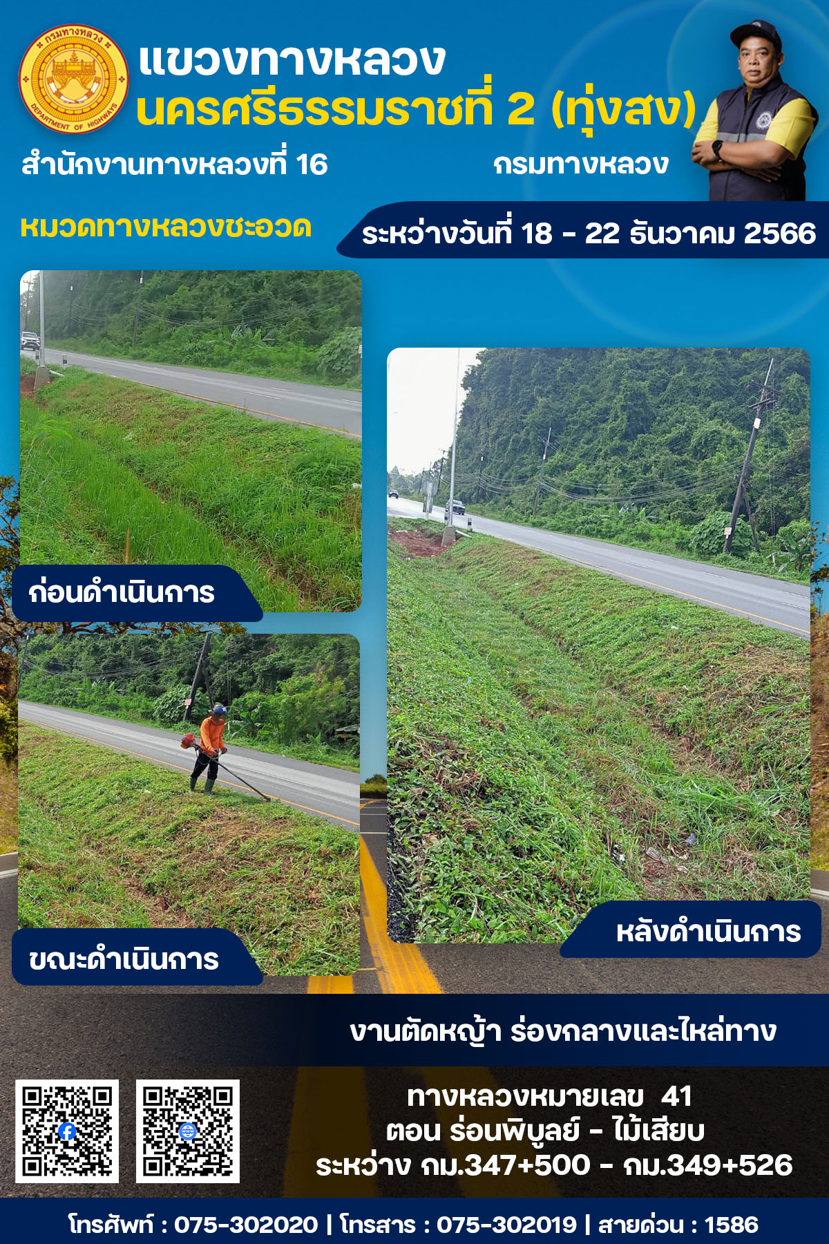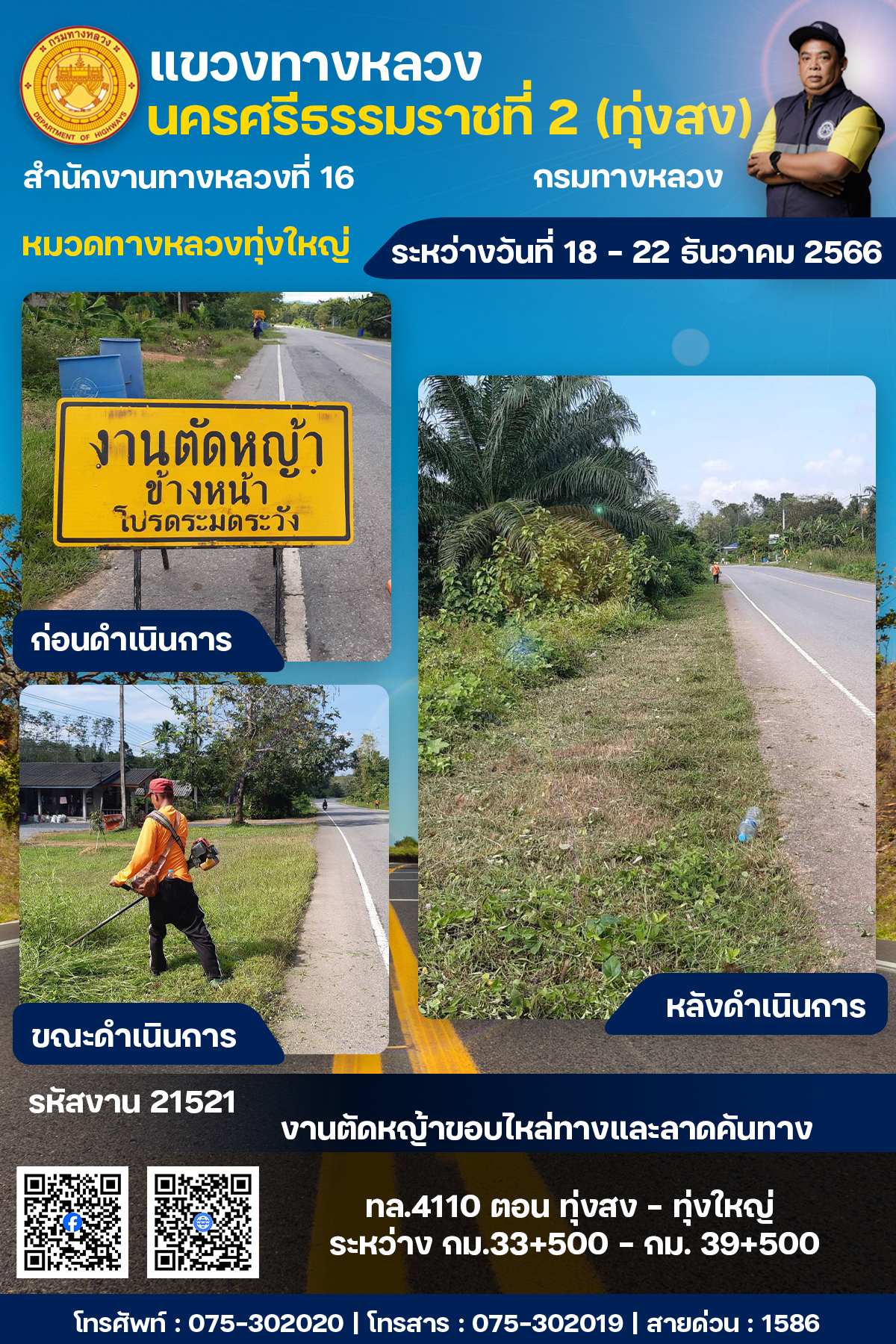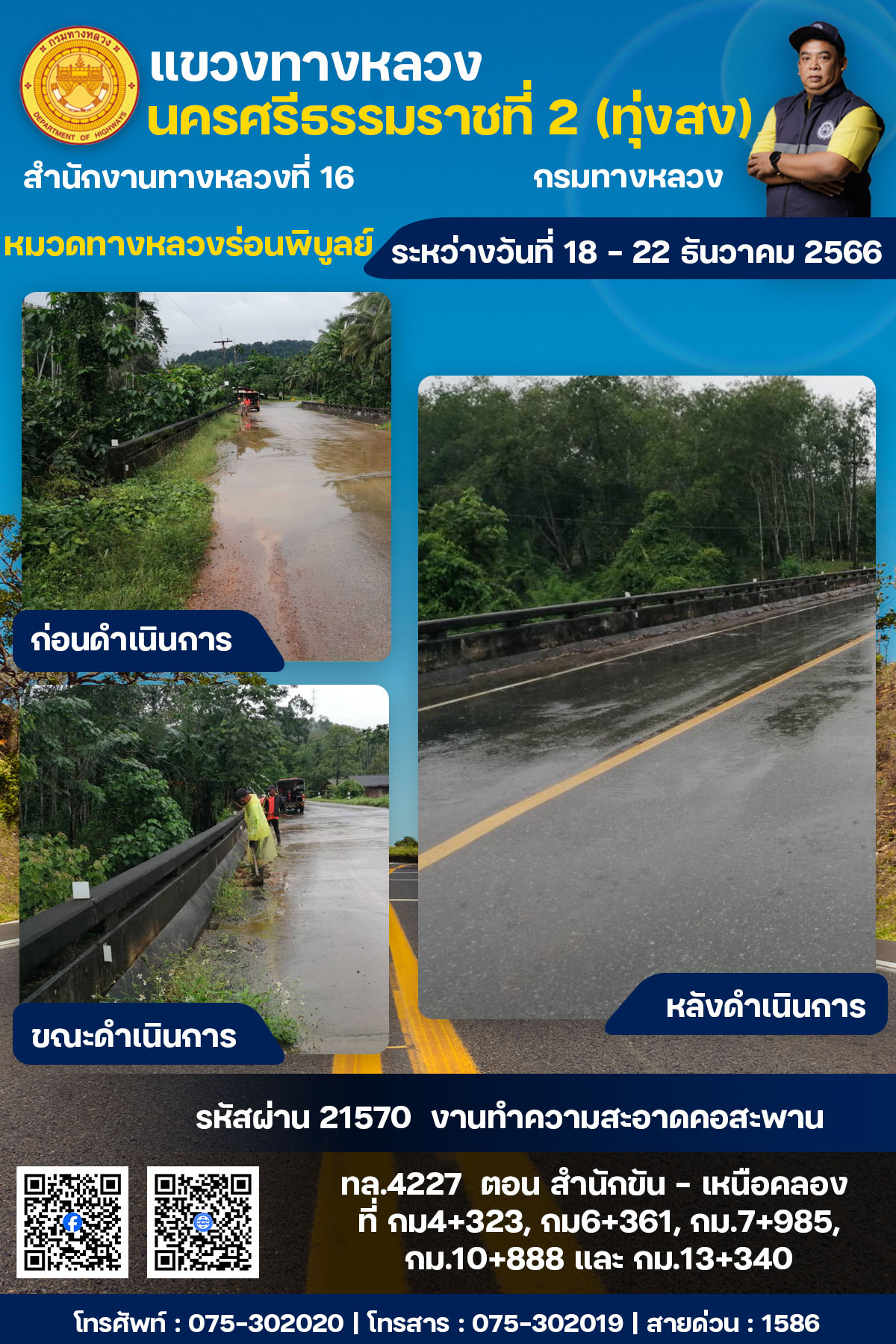 ผลการปฏิบัติงานของหมวดทางหลวงและหน่วยงานในสังกัด ระหว่างวันที่ 18 - 22 ธันวาคม พ.ศ.2567