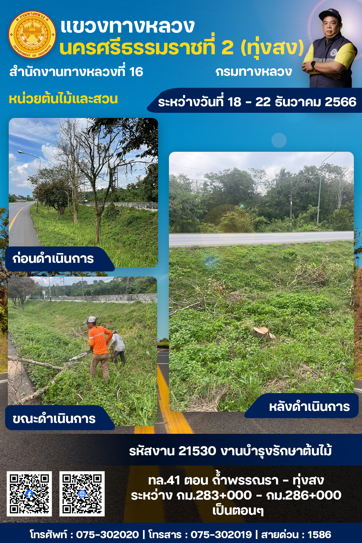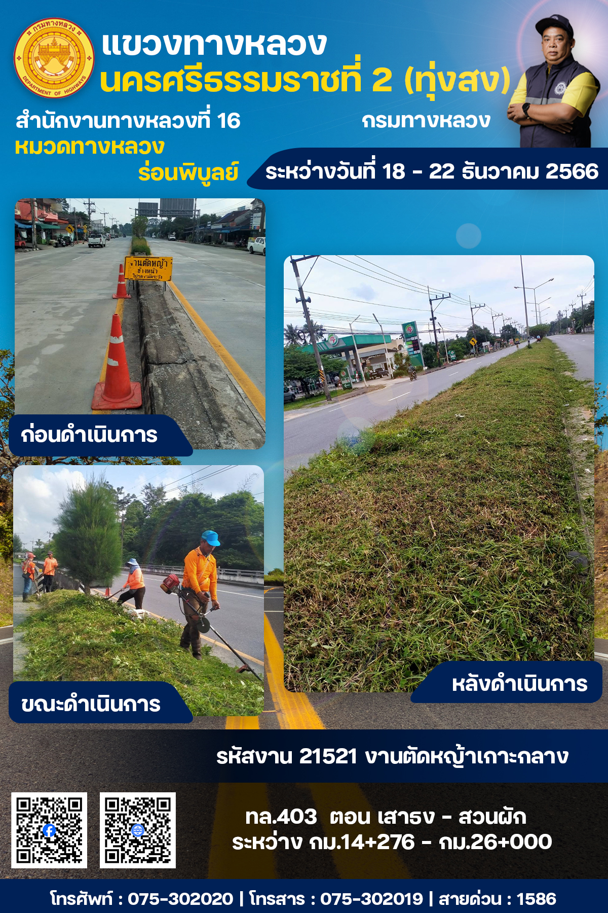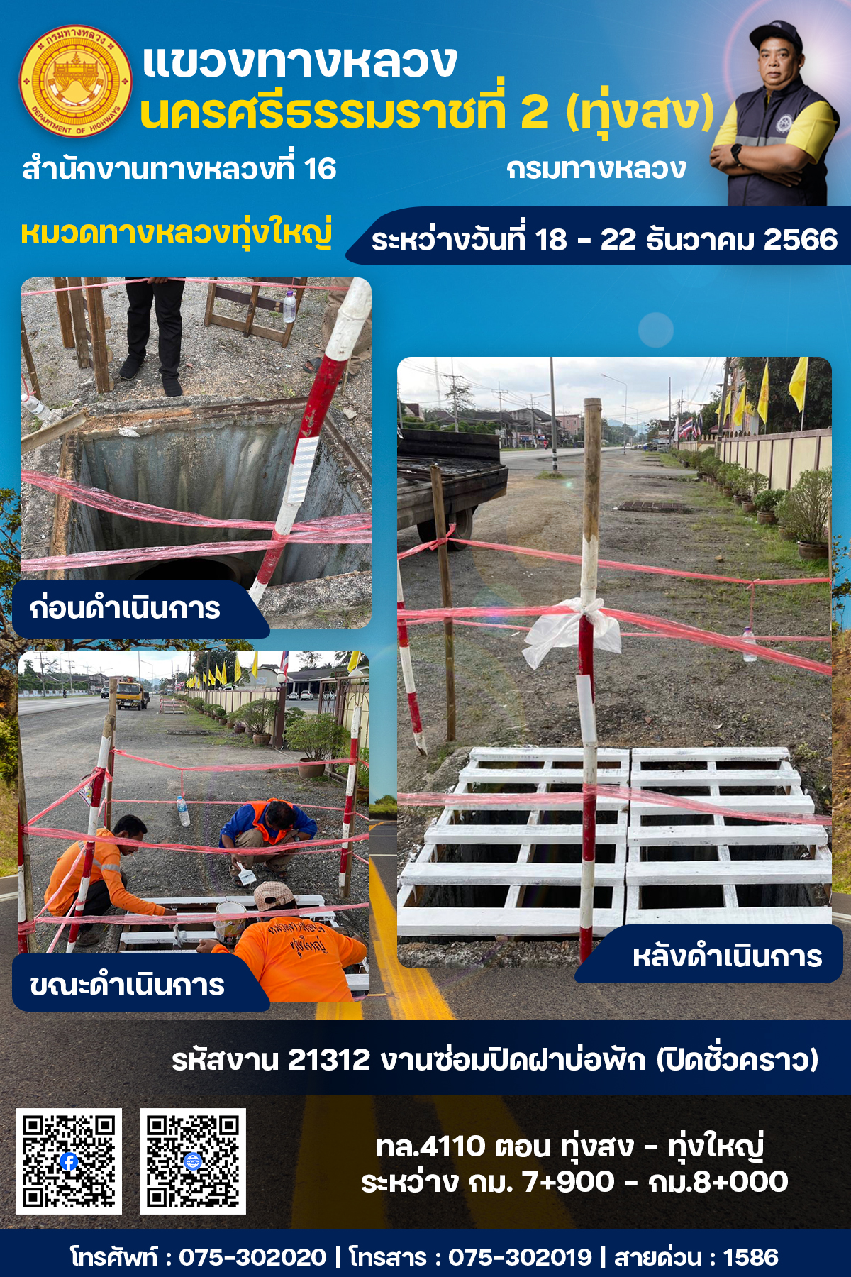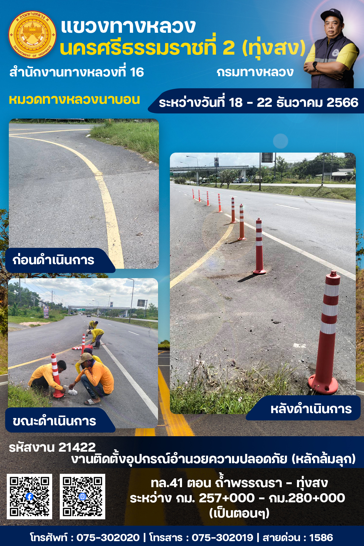 ผลการปฏิบัติงานของหมวดทางหลวงและหน่วยงานในสังกัด ระหว่างวันที่ 18 - 22 ธันวาคม พ.ศ.2567