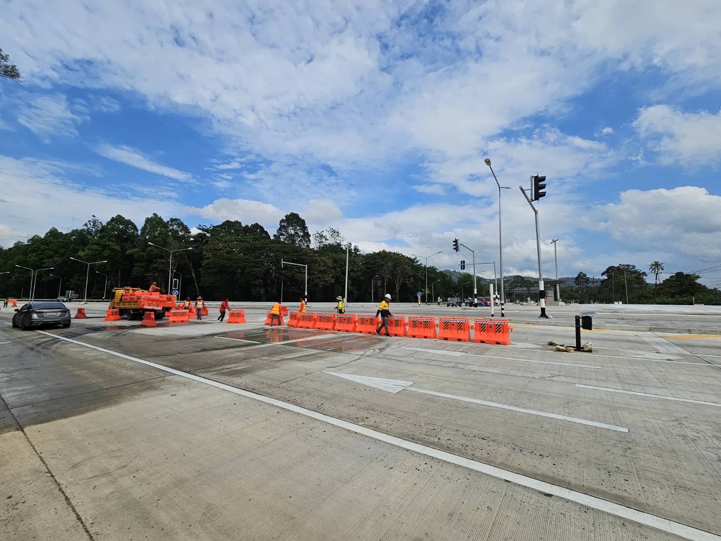 ติดตั้งแบริเออร์พลาสติกและหลักล้มลุกเพื่อแบ่งช่องจราจร พร้อมติดตั้งป้ายเตือน ในทล.41