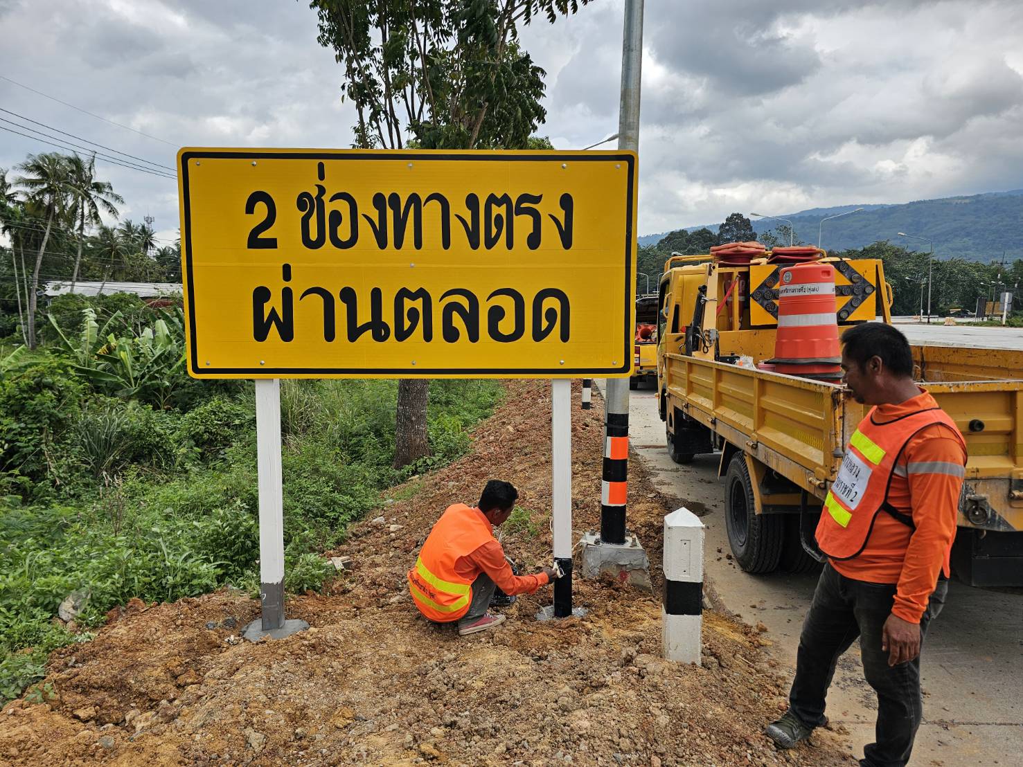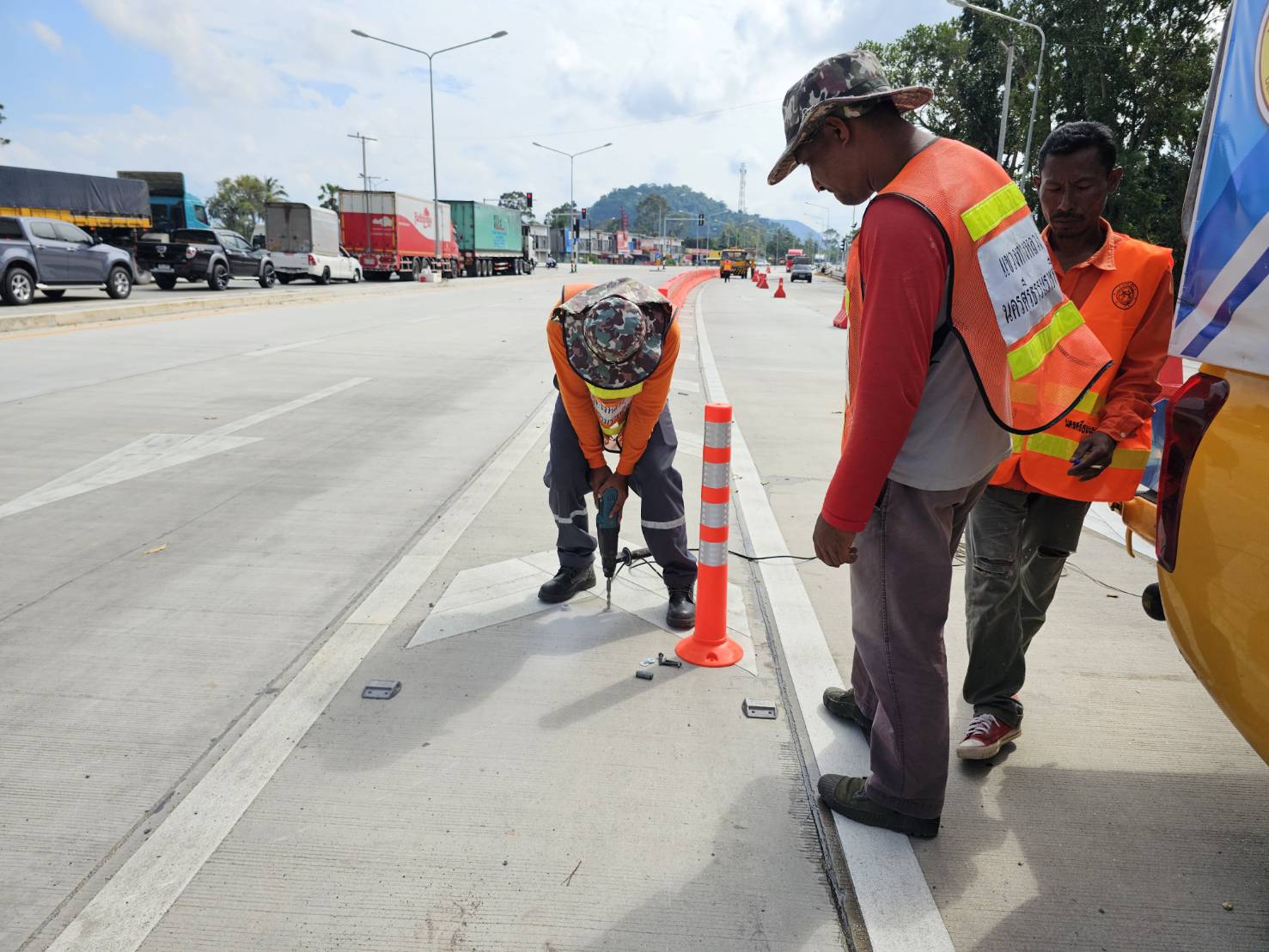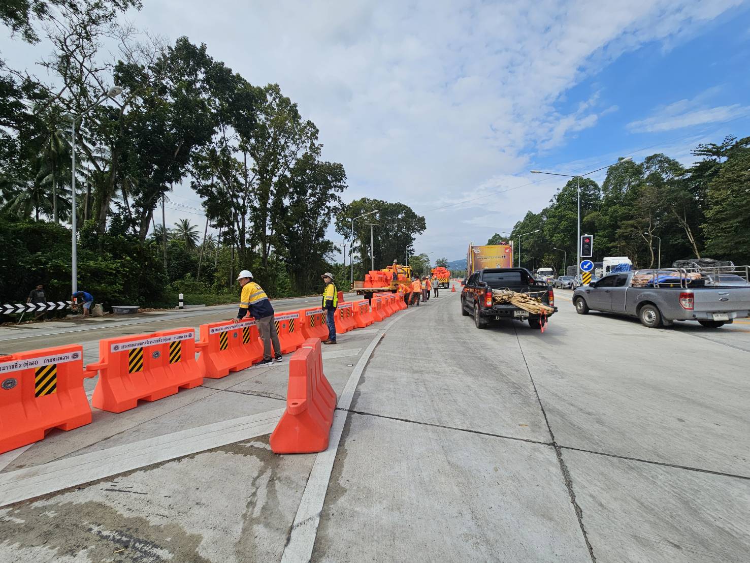 ติดตั้งแบริเออร์พลาสติกและหลักล้มลุกเพื่อแบ่งช่องจราจร พร้อมติดตั้งป้ายเตือน ทล.41