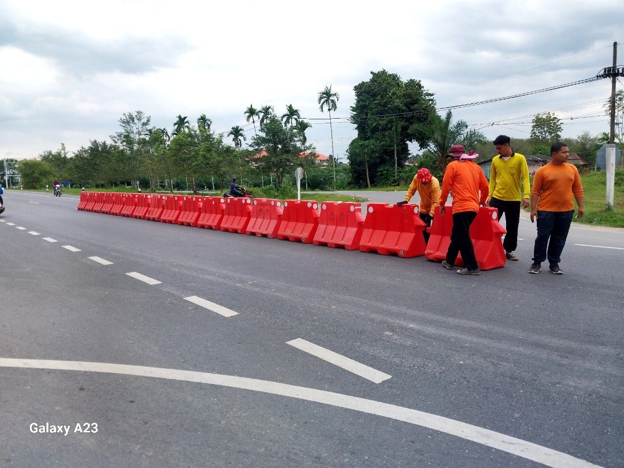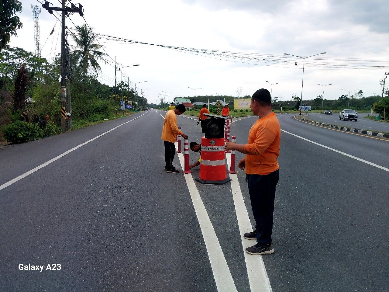 หมวดทางหลวงช้างกลาง ได้ดำเนินการติดตั้งอุปกรณ์อำนวยความปลอดภัย เพื่อกำหนดทิศทางการเลี้ยวของรถ ในจุดเสี่ยงที่จะเกิดอุบัติเหตุช่วงเทศกาลปีใหม่ 2567 ดังนี้