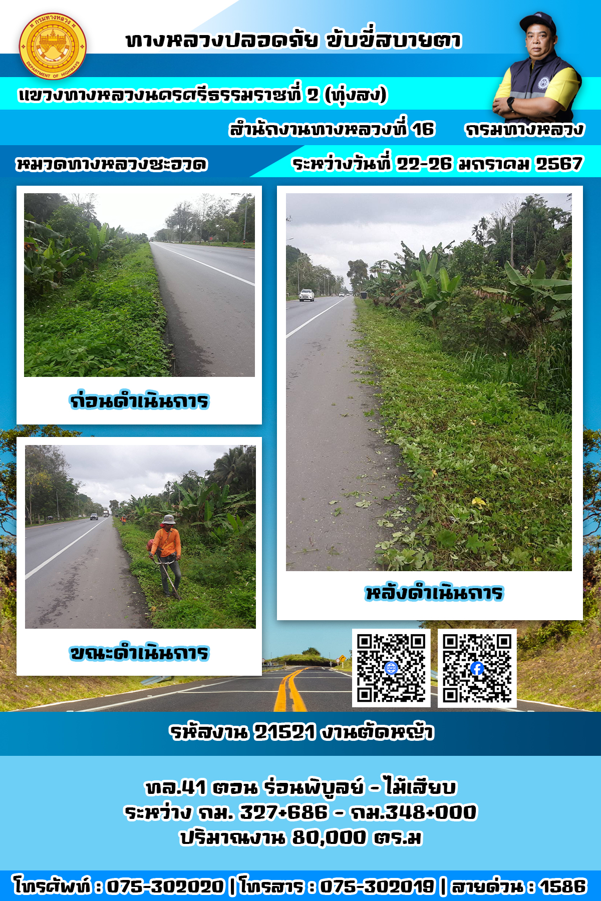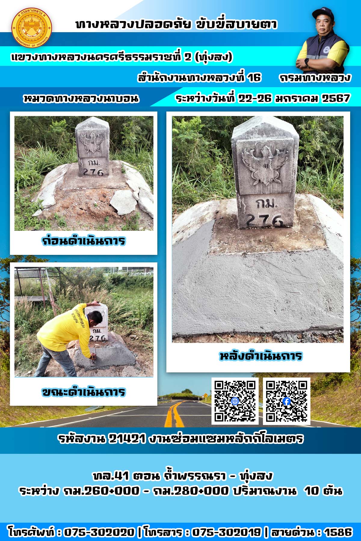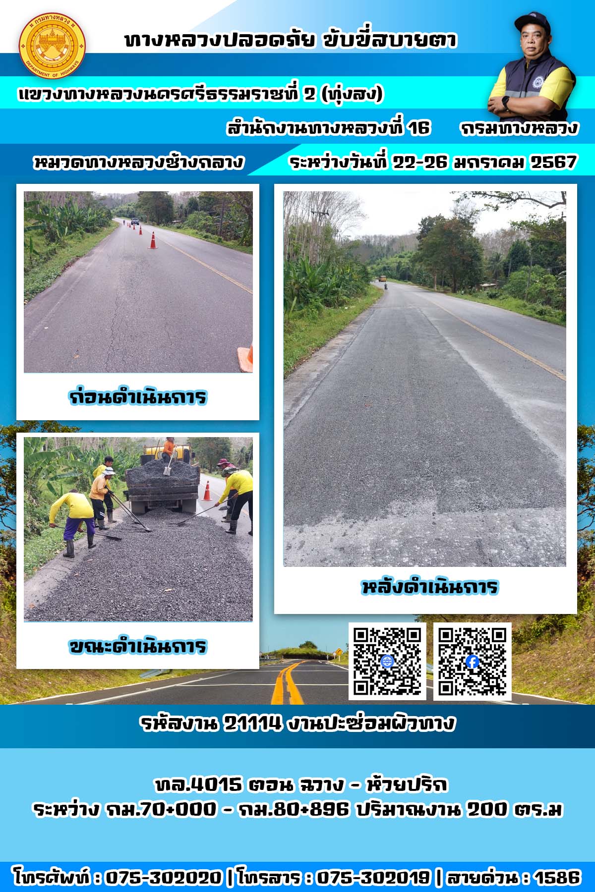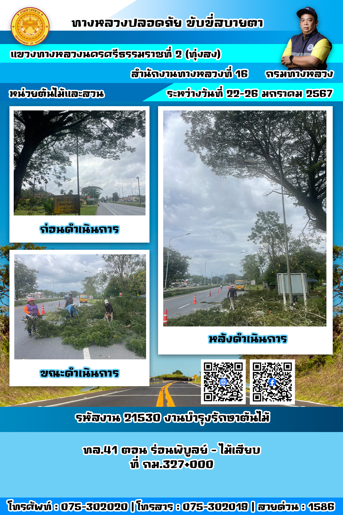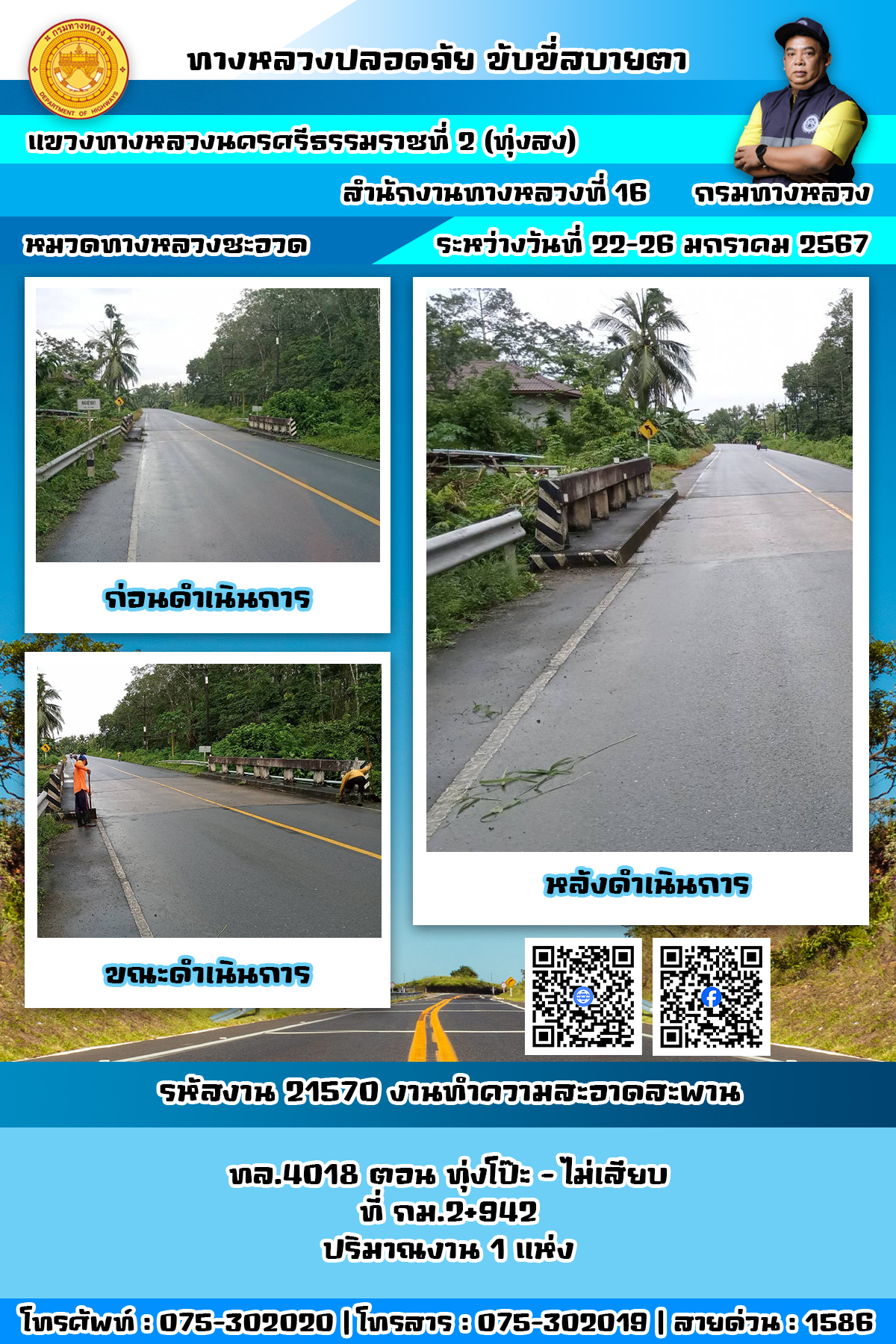 ผลการปฏิบัติงานของหมวดทางหลวงและหน่วยงานในสังกัด แขวงทางหลวงนครศรีธรรมราชที่ 2 (ทุ่งสง) ระหว่างวันที่ 22-26 มกราคม พ.ศ.2567