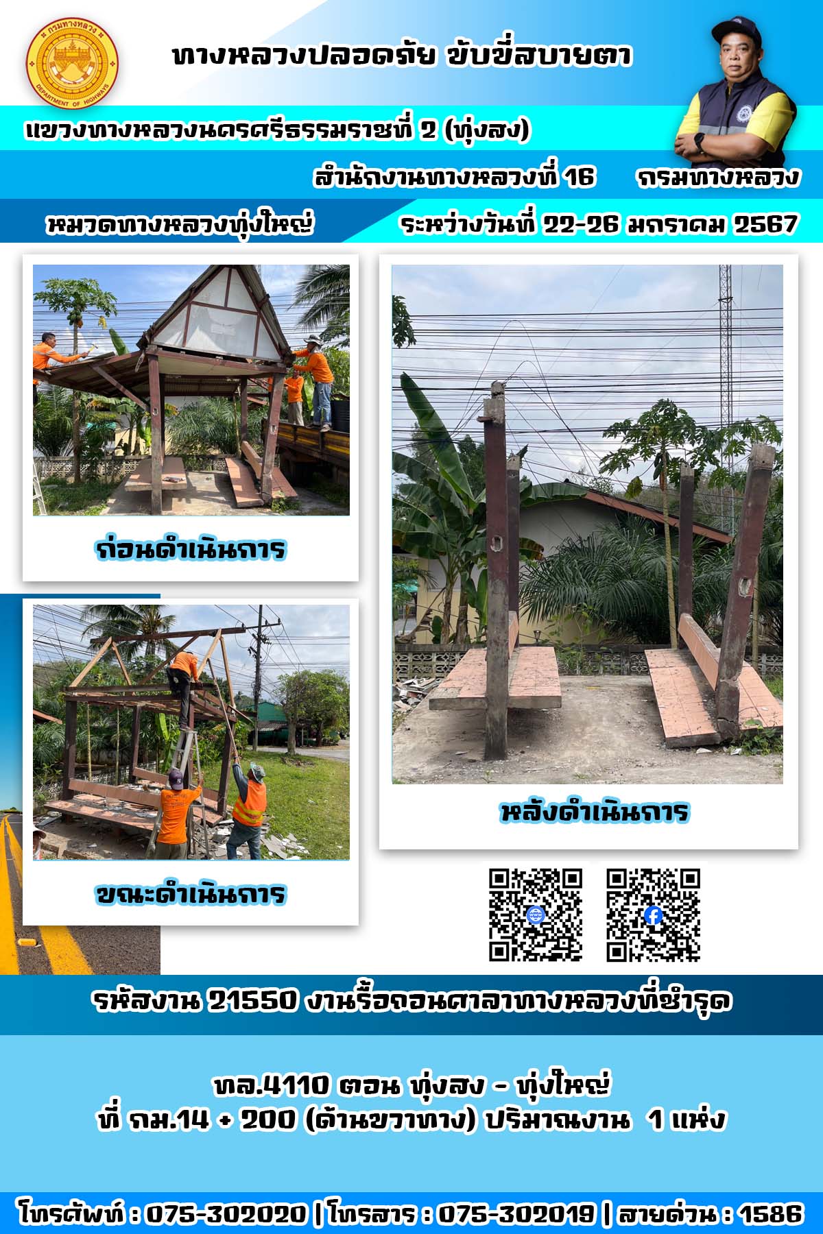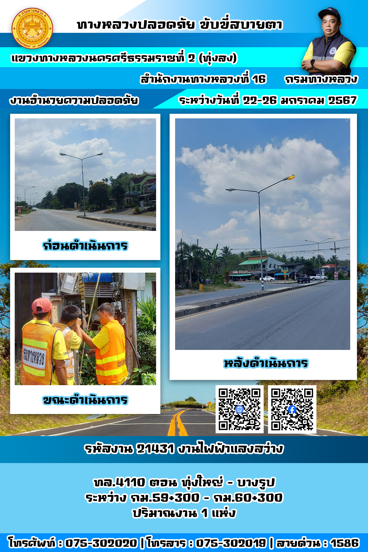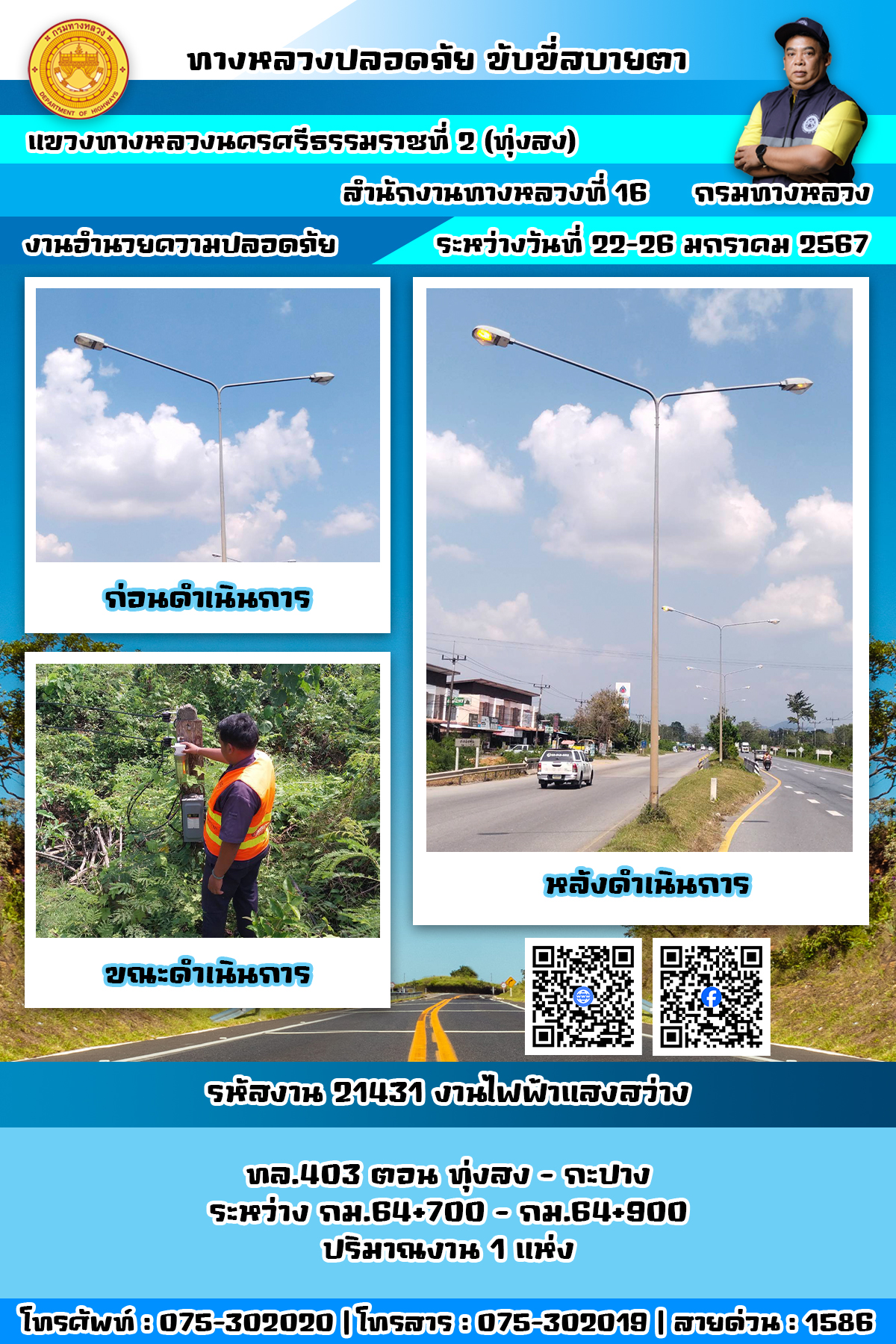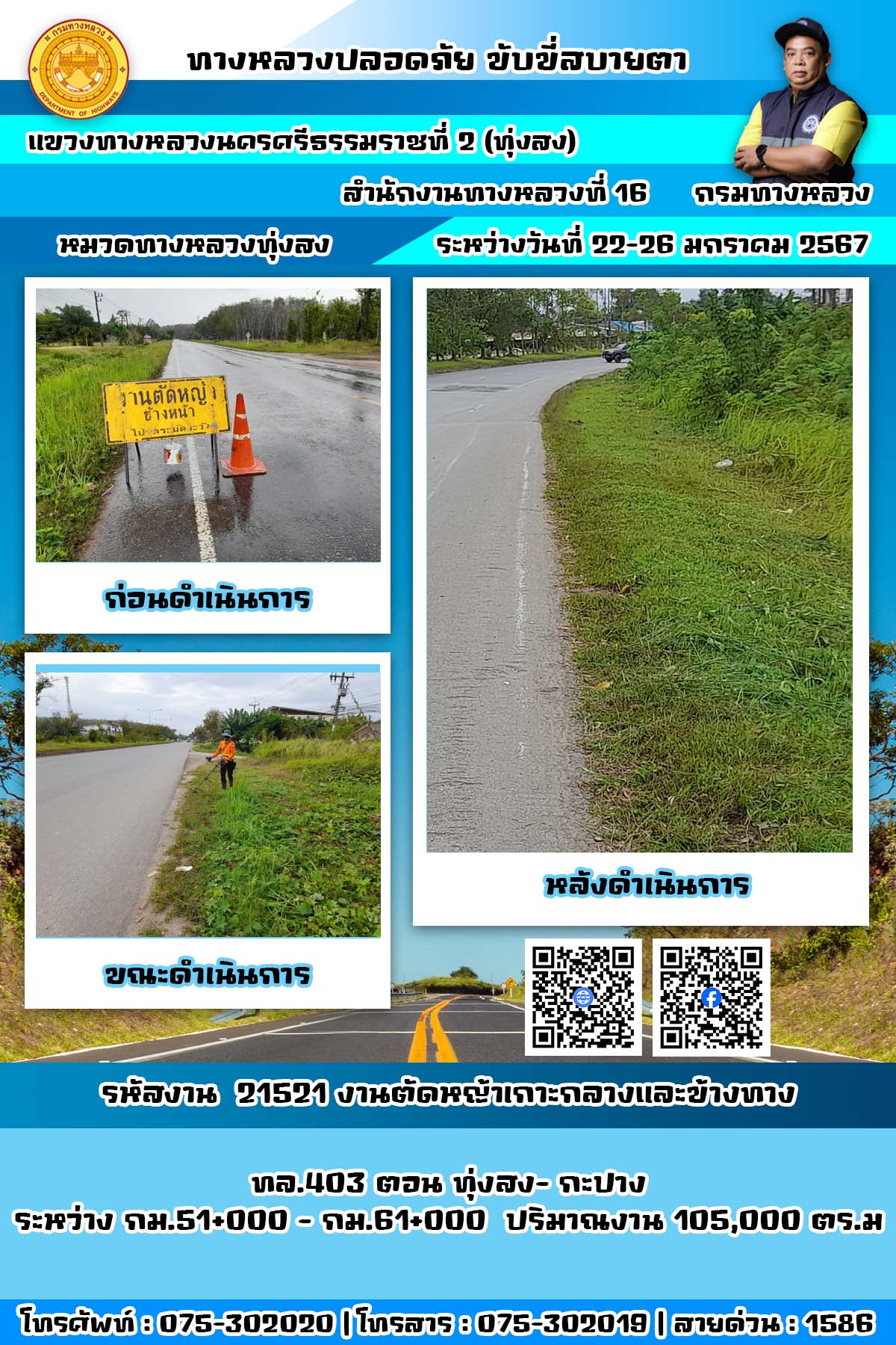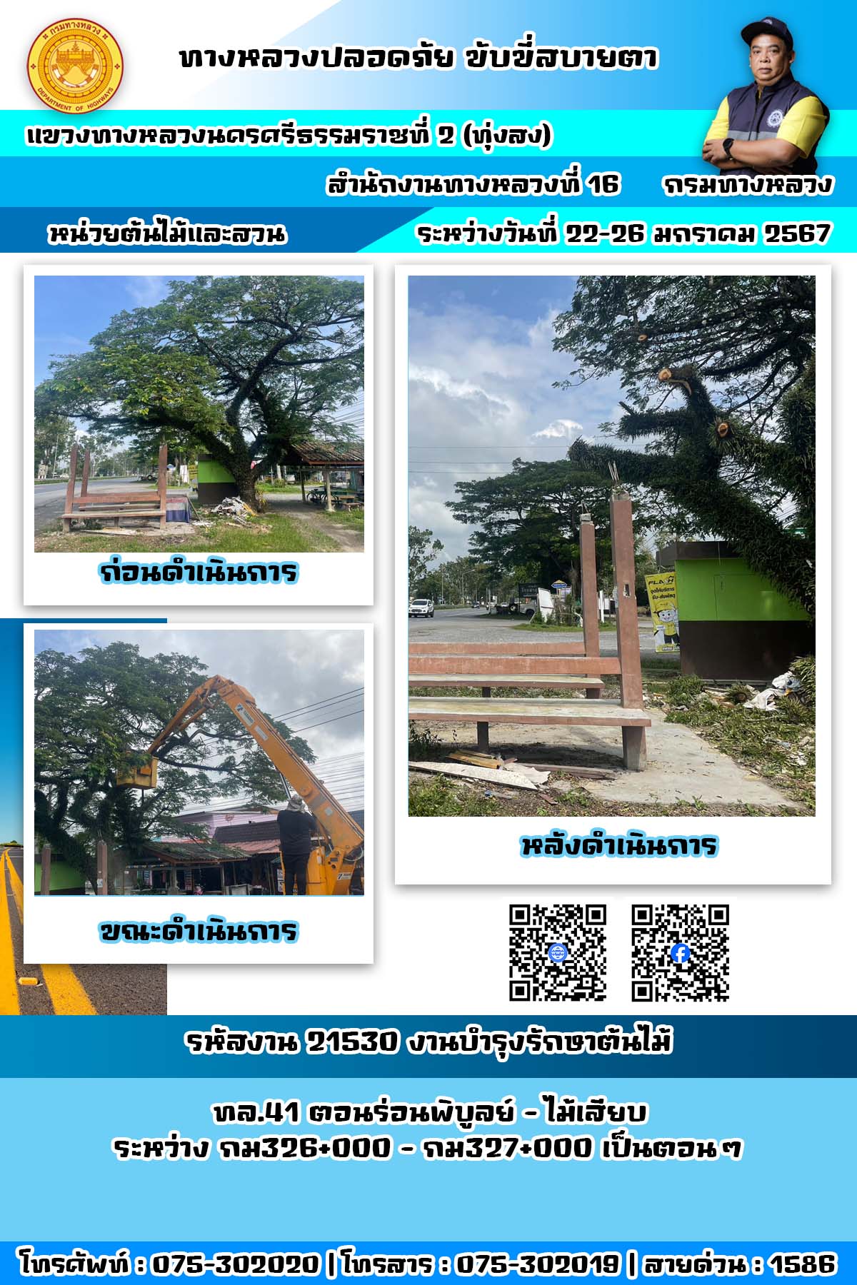 ผลการปฏิบัติงานของหมวดทางหลวงและหน่วยงานในสังกัด แขวงทางหลวงนครศรีธรรมราชที่ 2 (ทุ่งสง) ระหว่างวันที่ 22-26 มกราคม พ.ศ.2567