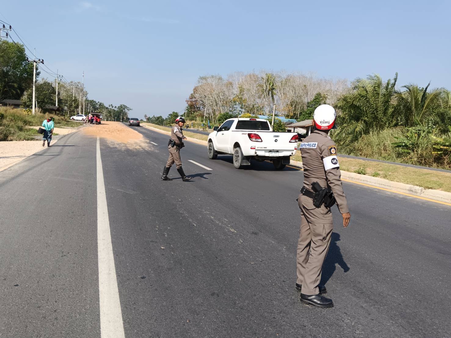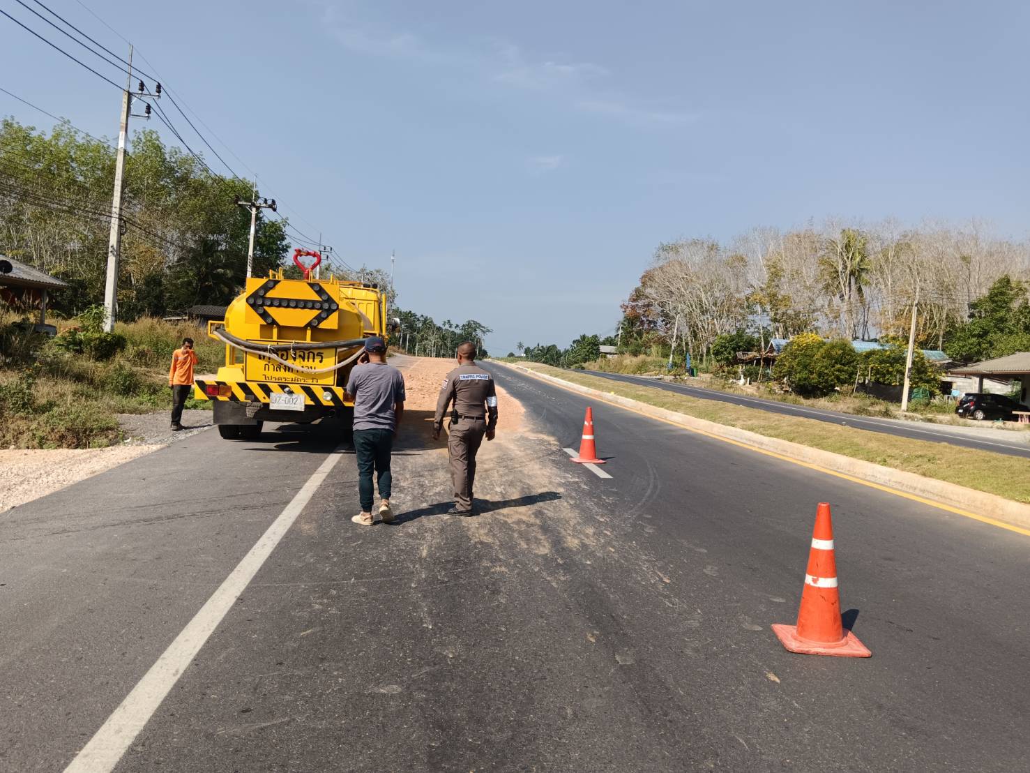 จึงได้เข้าดำเนินการเก็บกวาด โดยมีเจ้าหน้าที่ตำรวจ รถน้ำเทศบาลตำบลท่ายาง ร่วมดำเนินการด้วย