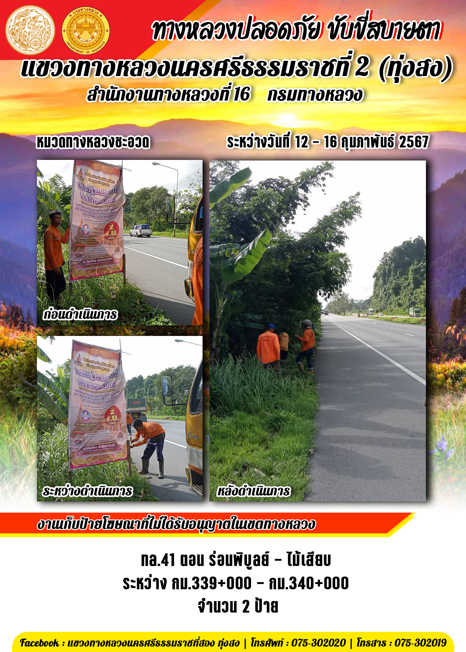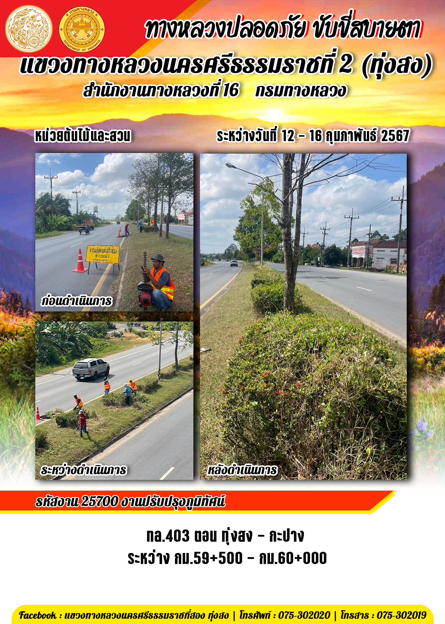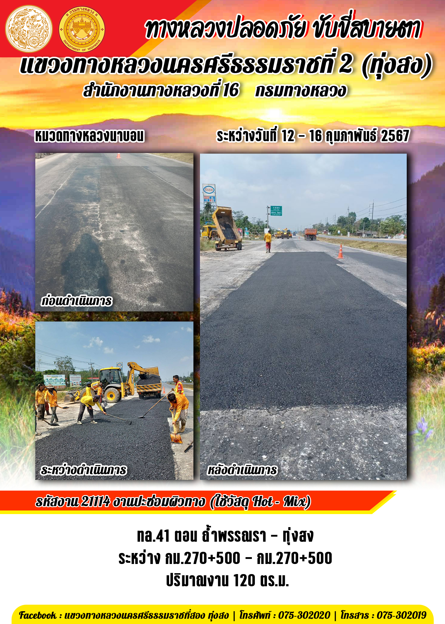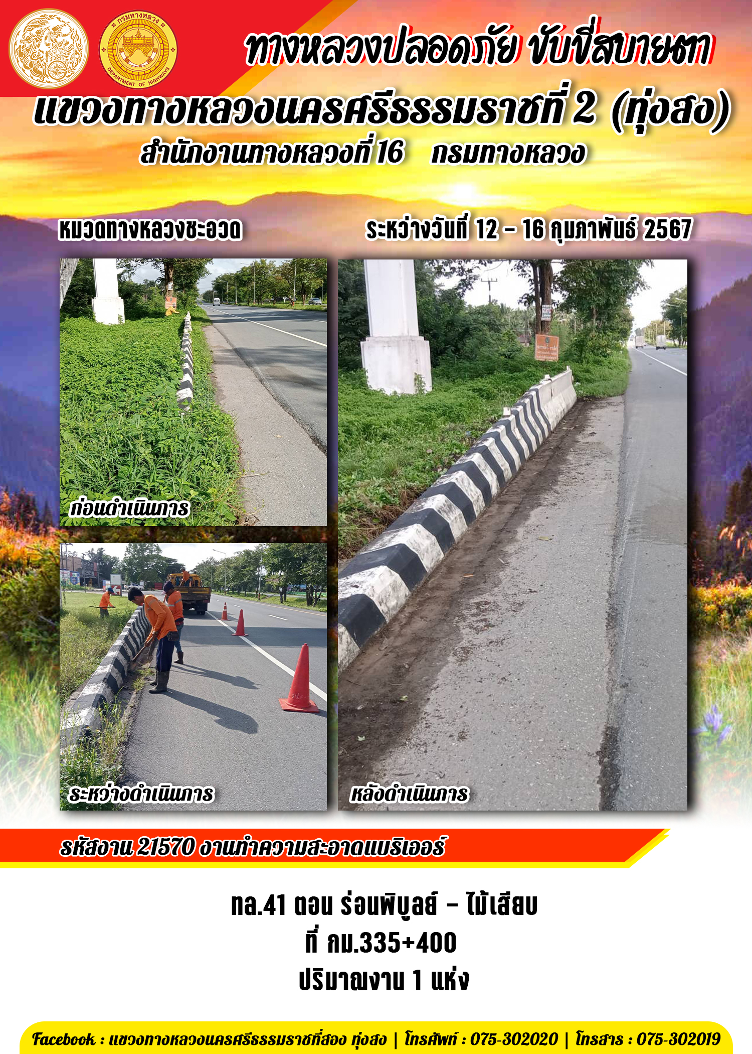 ข้อมูลข่าว : รายงานผลการปฏิบัติงาน ประจำวันที่ 12-16 กุมภาพันธ์ พ.ศ.2567 ของหมวดทางหลวงและหน่วยงานในสังกัด