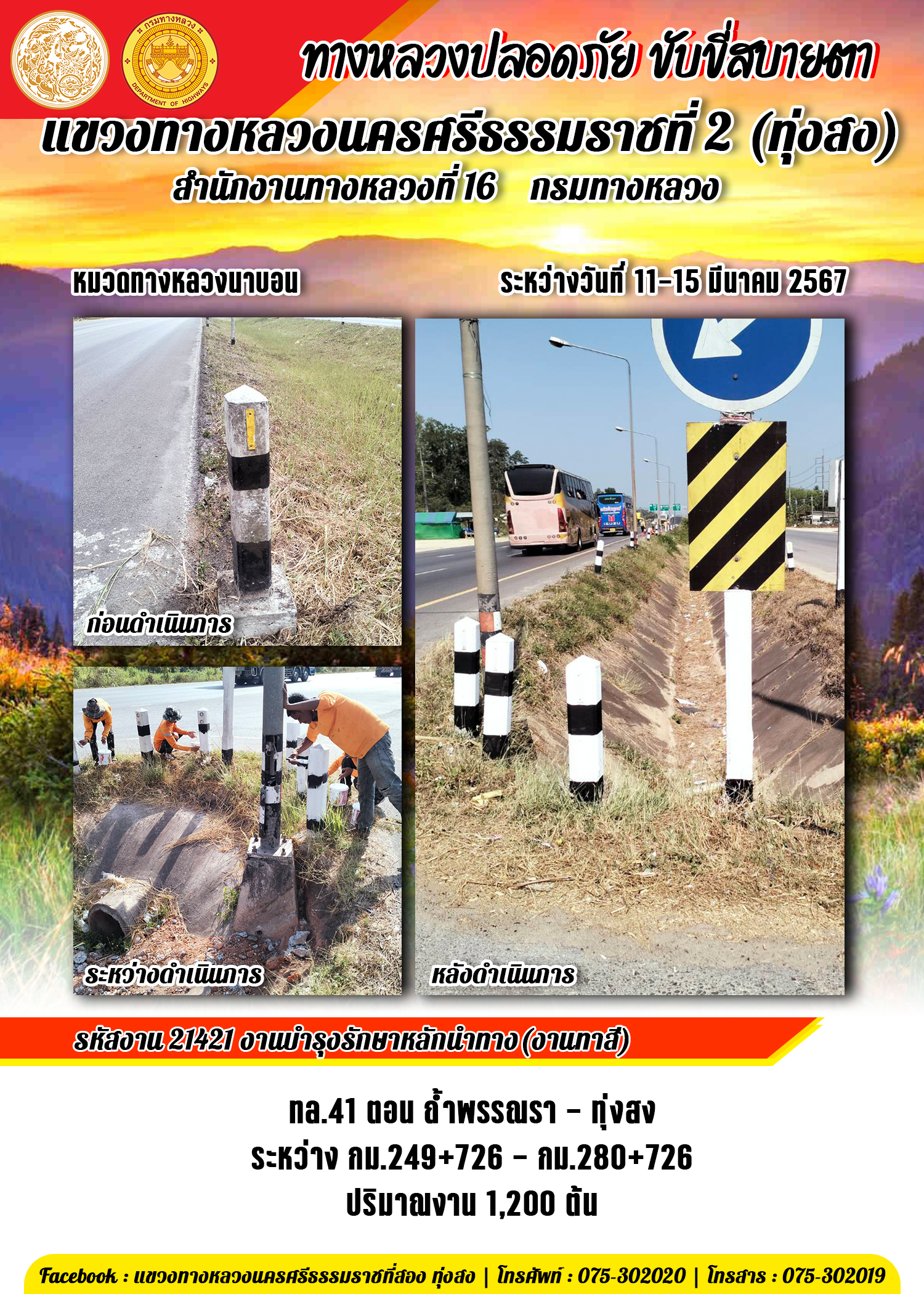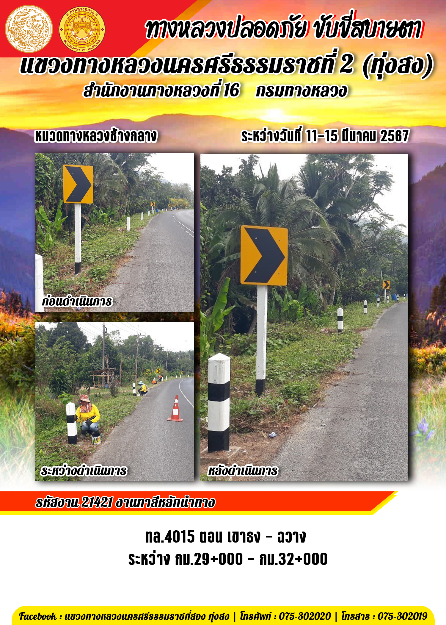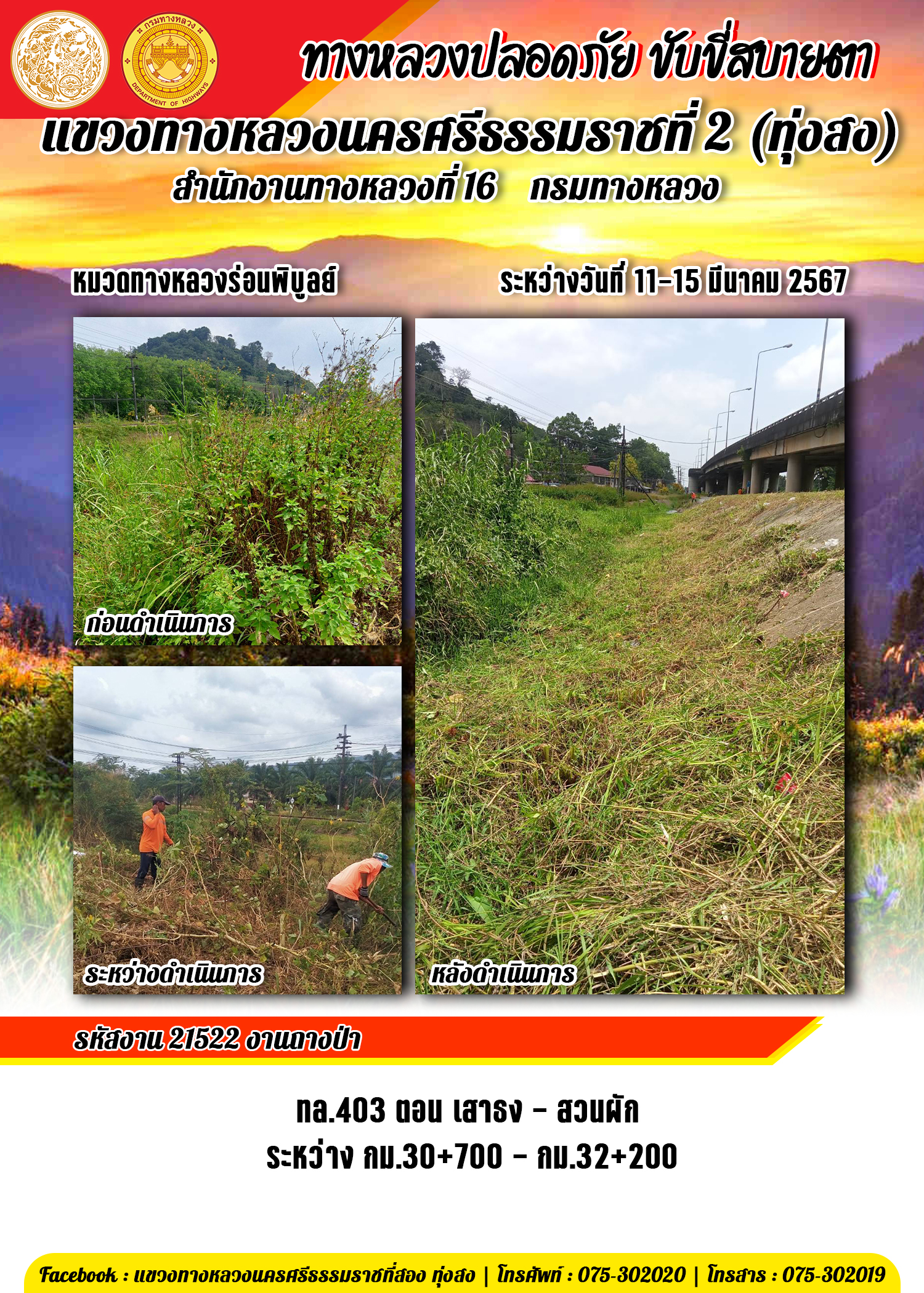 ข้อมูลข่าว : รายงานผลการปฏิบัติงาน ประจำวันที่ 11-15 มีนาคม พ.ศ.2567 ของหมวดทางหลวงและหน่วยงานในสังกัด