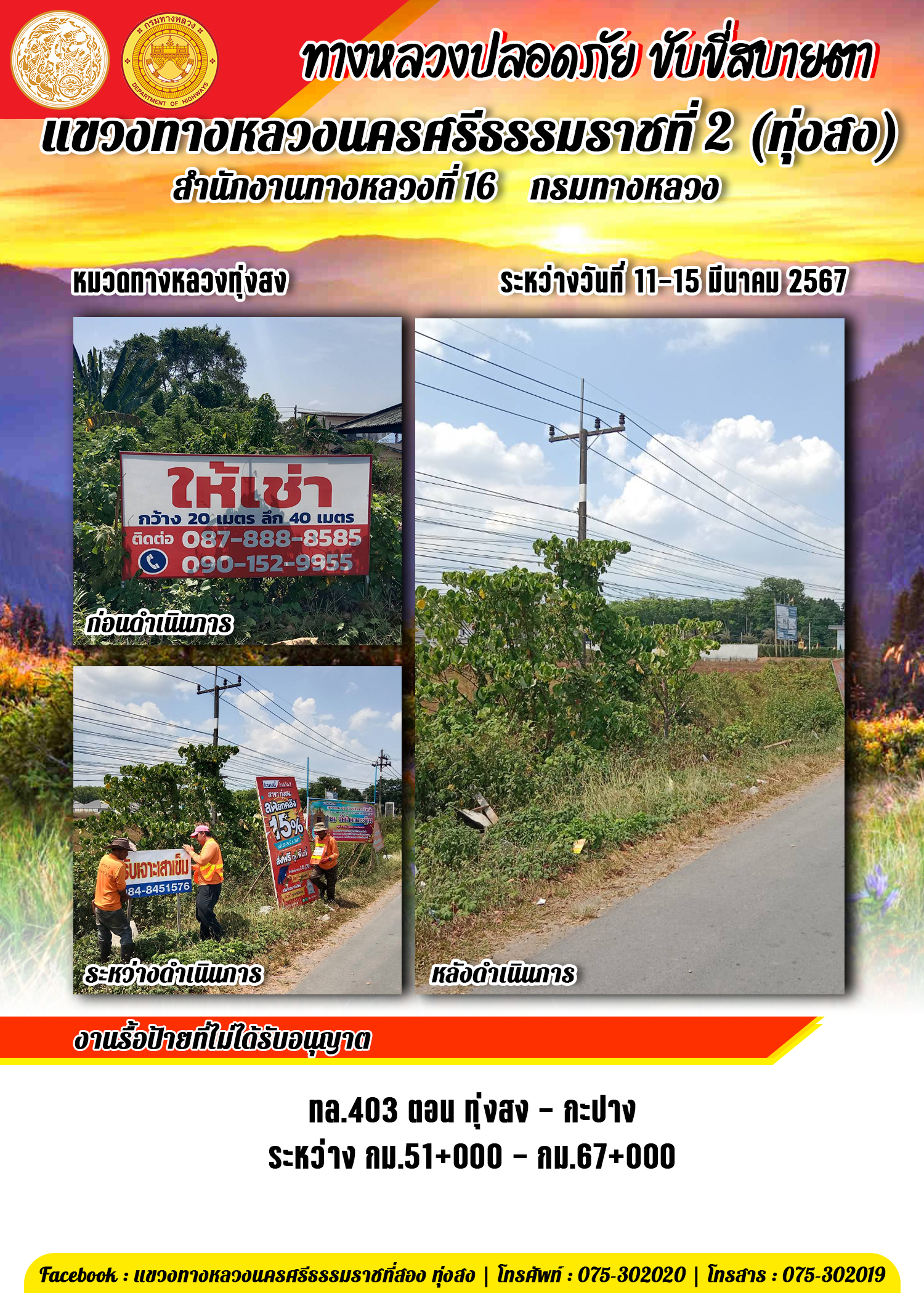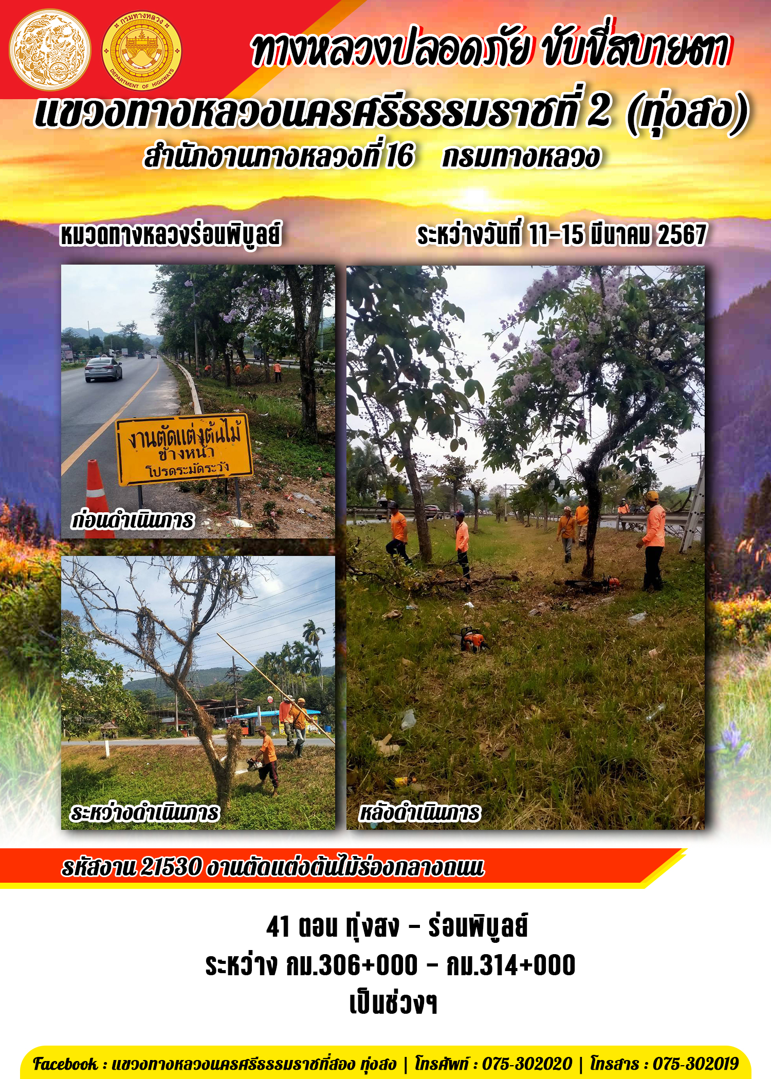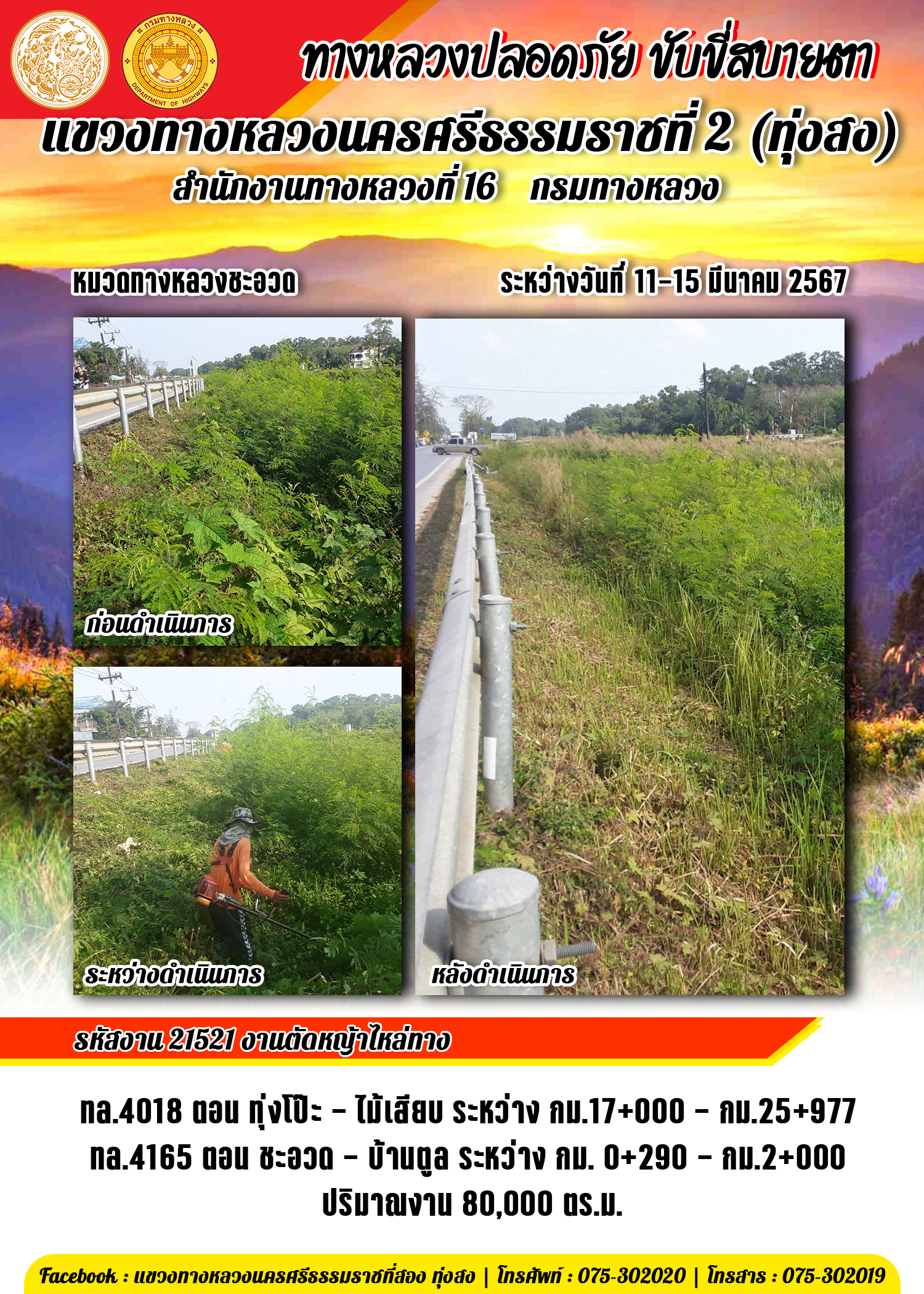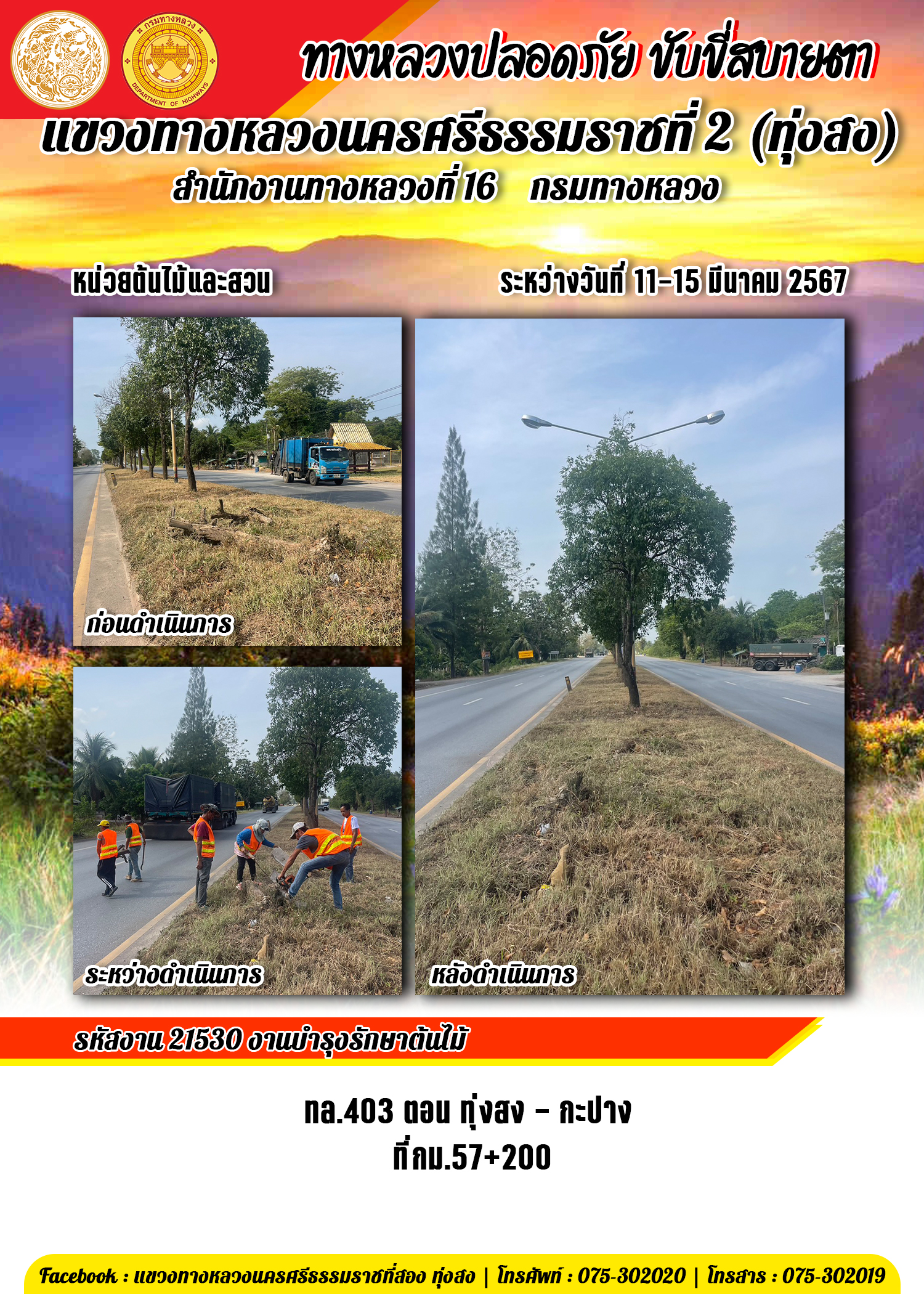 ข้อมูลข่าว : รายงานผลการปฏิบัติงาน ประจำวันที่ 11-15 มีนาคม พ.ศ.2567 ของหมวดทางหลวงและหน่วยงานในสังกัด