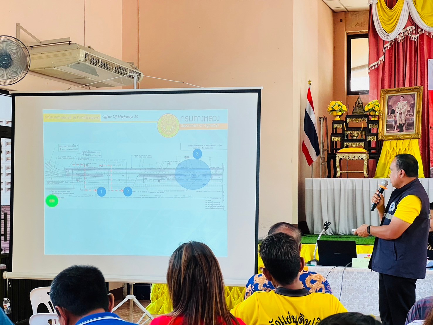 นายปริญญา วีระจิตต์ ผู้อำนวยการเแขวงทางหลวงนครศรีธรรมราชที่ 2 (ทุ่งสง) มอบหมายให้ รองผู้อำนวยการ พร้อมด้วย นายชวลิตร ชูสุวรรณ วิศวกรโยธาปฏิบัติการ สำนักงานทางหลวงที่ 16 , หัวหน้าหมวดทางหลวงนาบอน, หัวหน้างานวางแผน, หัวหน้างานสารสนเทศ และเจ้าหน้าที่ในสังกัด จัดประชุมการรับฟังความคิดเห็นของประชาชน