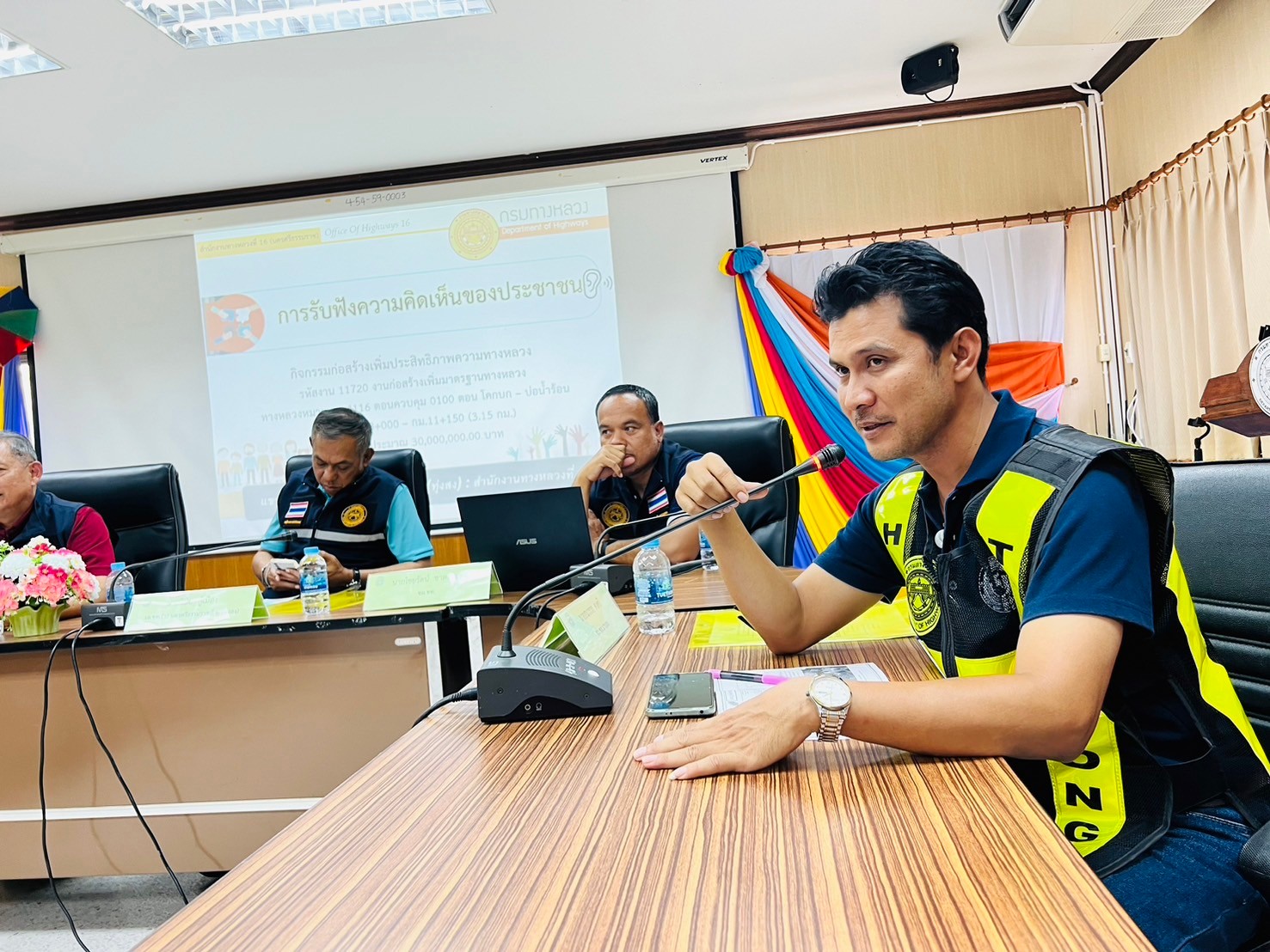 ประชุมการรับฟังความคิดเห็นของประชาชน กิจกรรมบำรุงรักษาทางหลวง ประจำปี 2567 งานขยายทางจราจรทางหลวงหมายเลข 4228 ตอนควบคุม 0100 ตอน ถ้ำพรรณรา - ทานพอ ระหว่าง กม.14+800 - กม.16+225