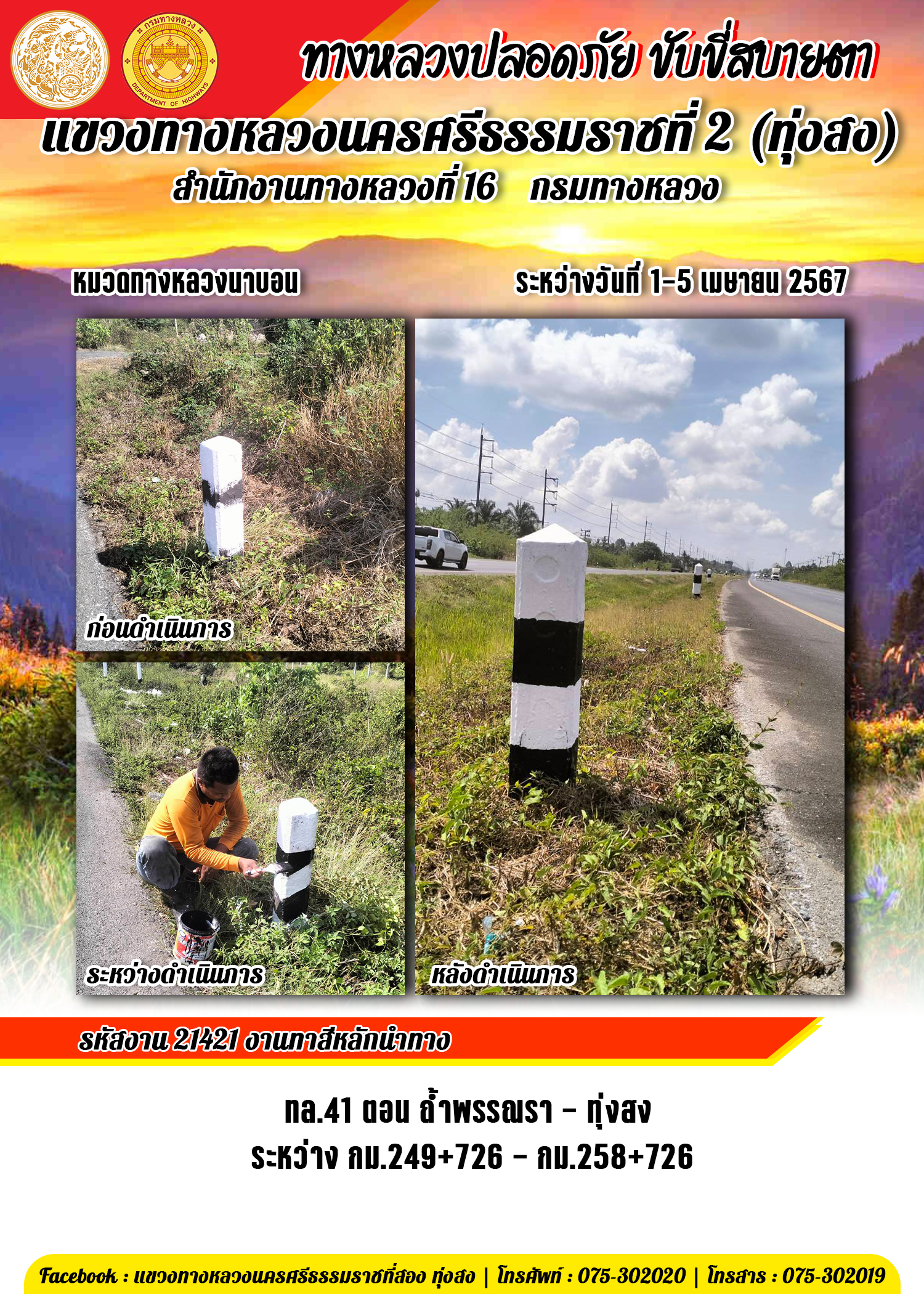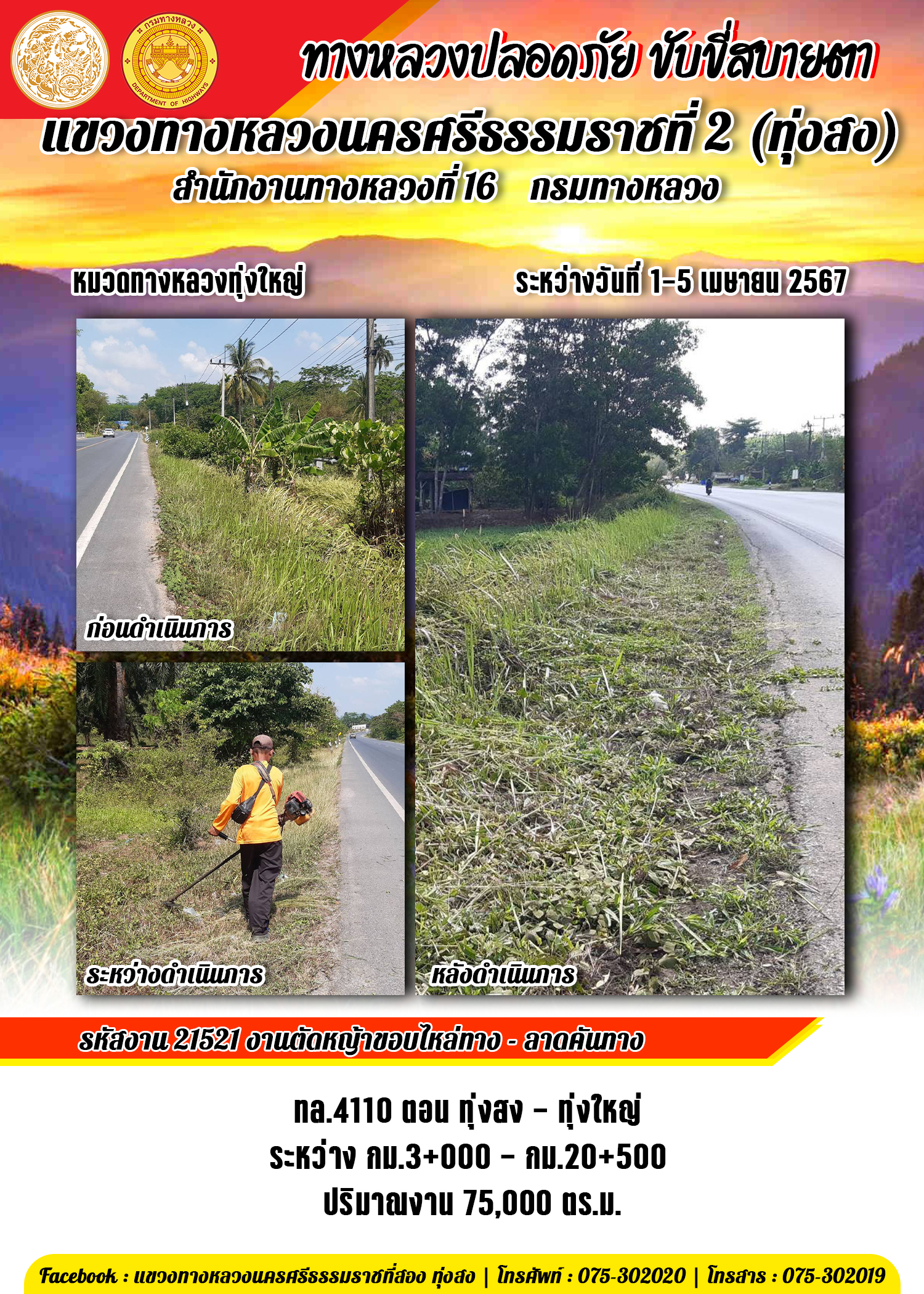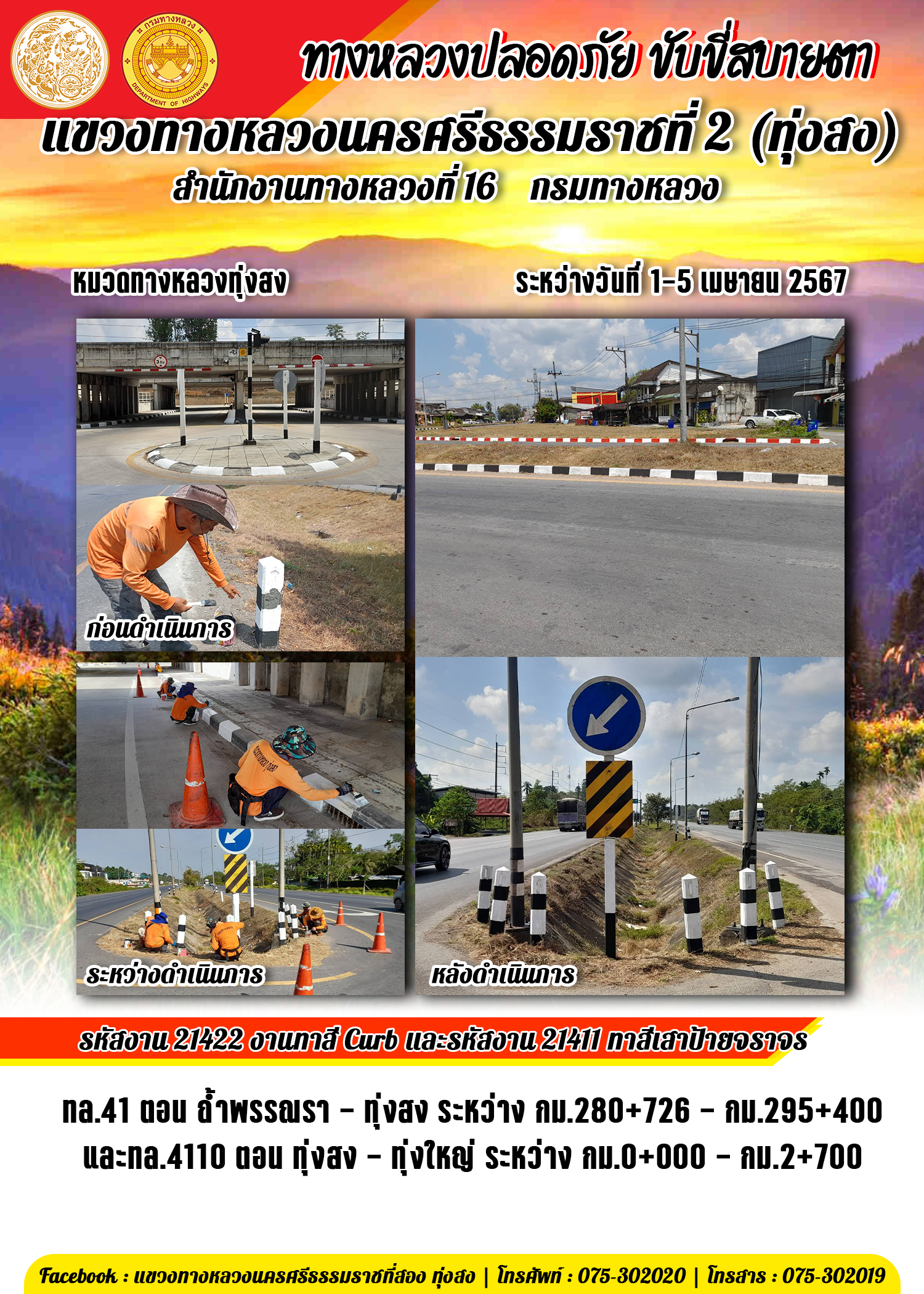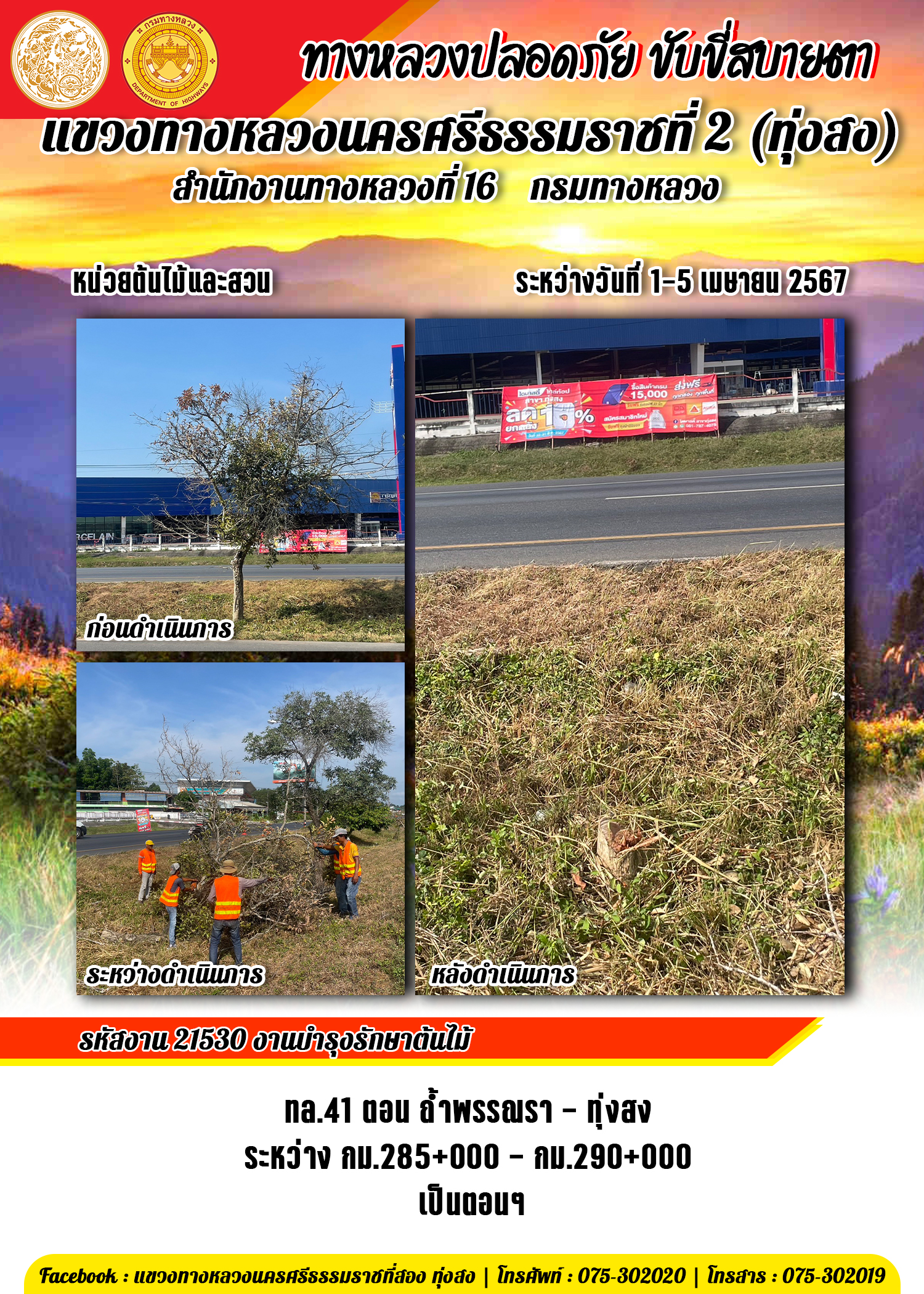 ผลการปฏิบัติงานของหมวดทางหลวงและหน่วยงานในสังกัด แขวงทางหลวงนครศรีธรรมราชที่ 2 (ทุ่งสง) ระหว่างวันที่ 1-5 เมษายน พ.ศ.2567