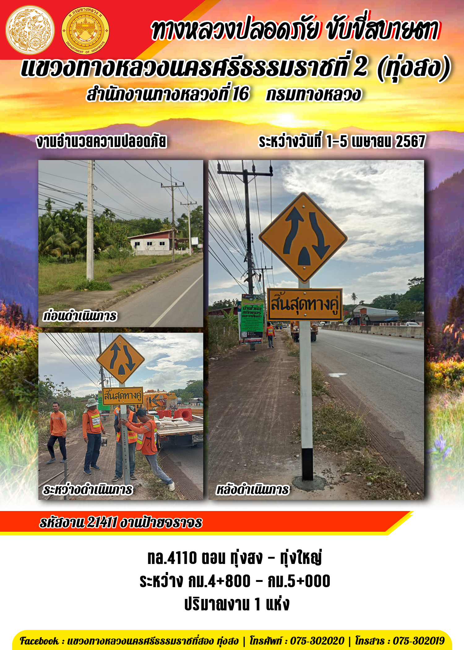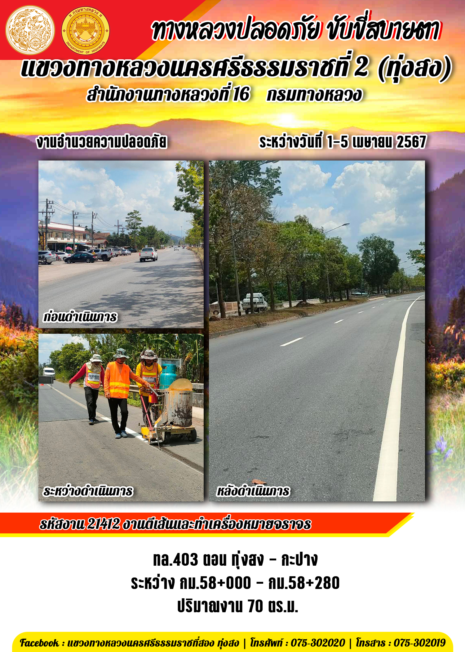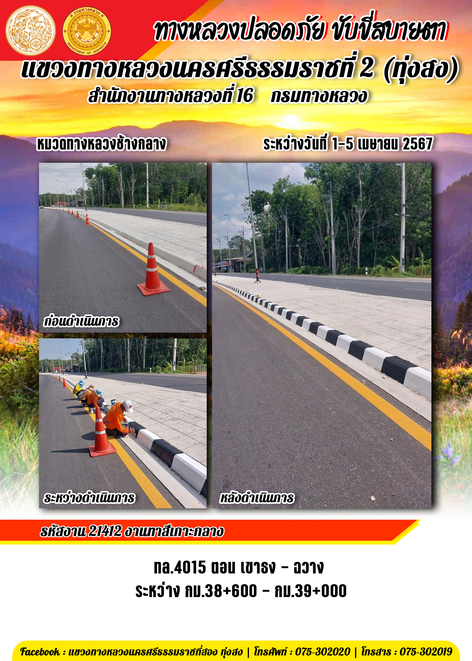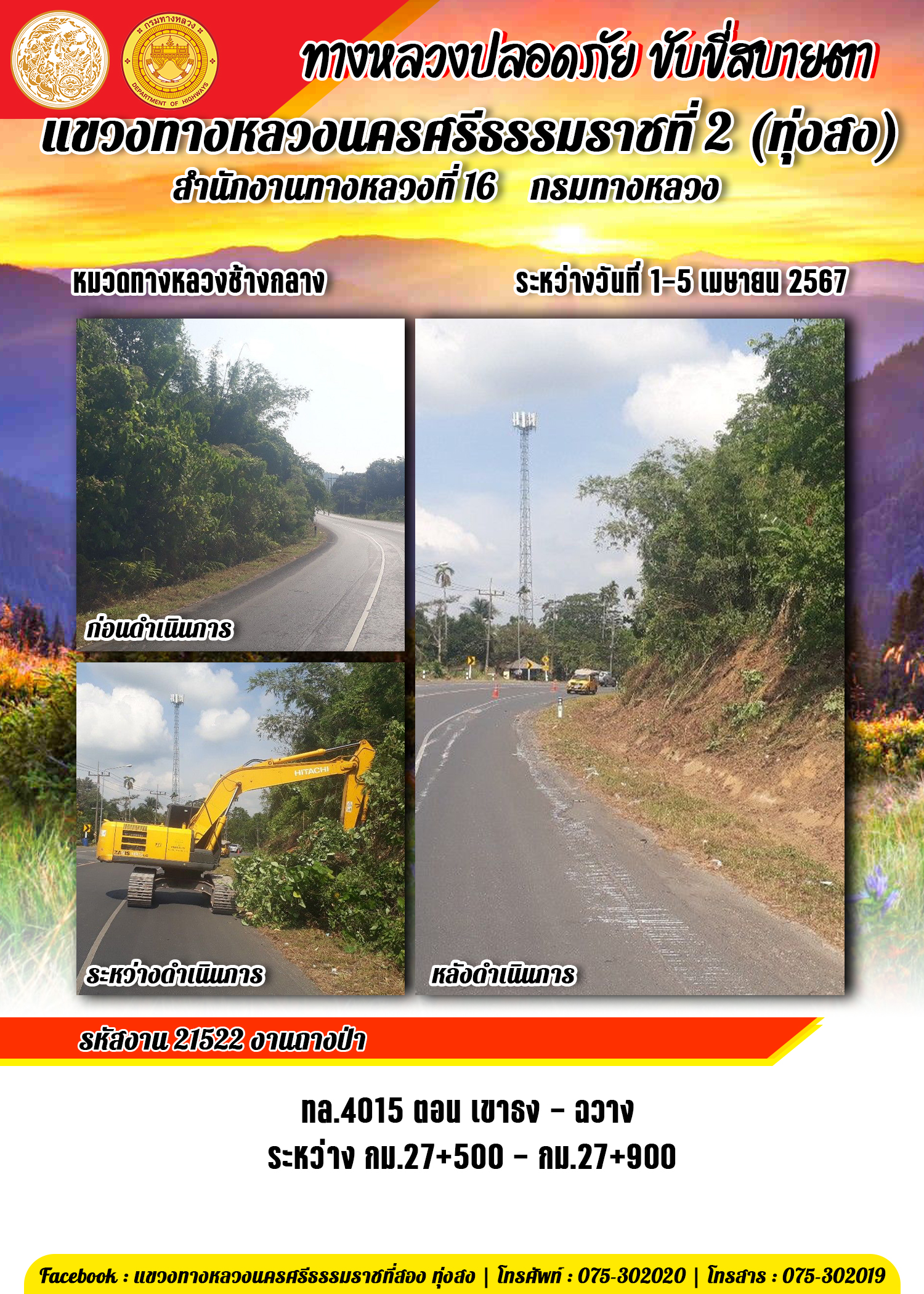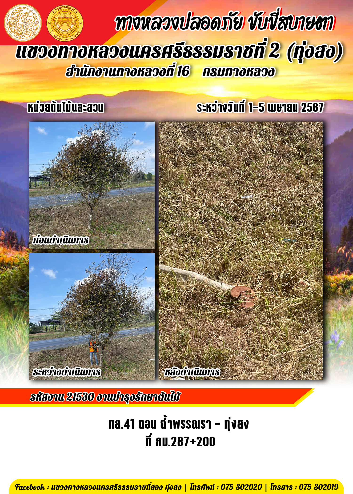 ผลการปฏิบัติงานของหมวดทางหลวงและหน่วยงานในสังกัด แขวงทางหลวงนครศรีธรรมราชที่ 2 (ทุ่งสง) ระหว่างวันที่ 1-5 เมษายน พ.ศ.2567