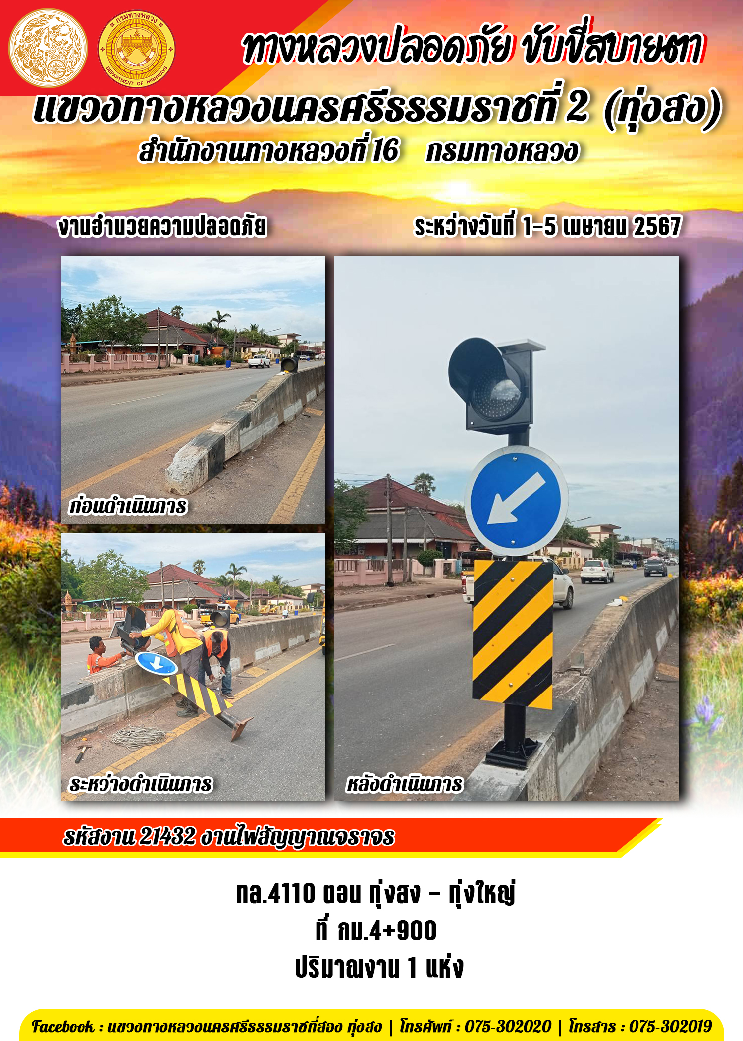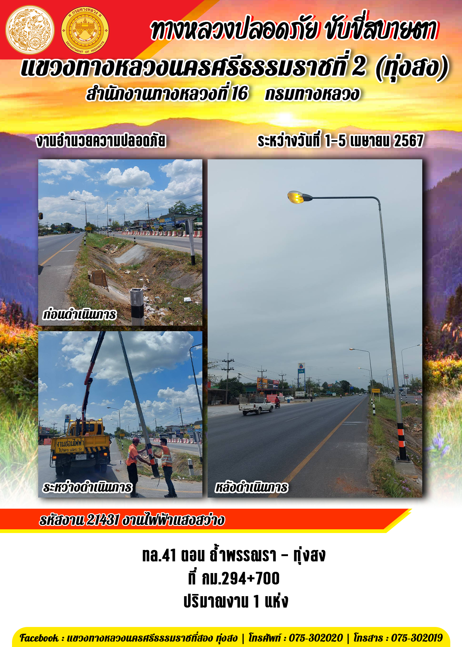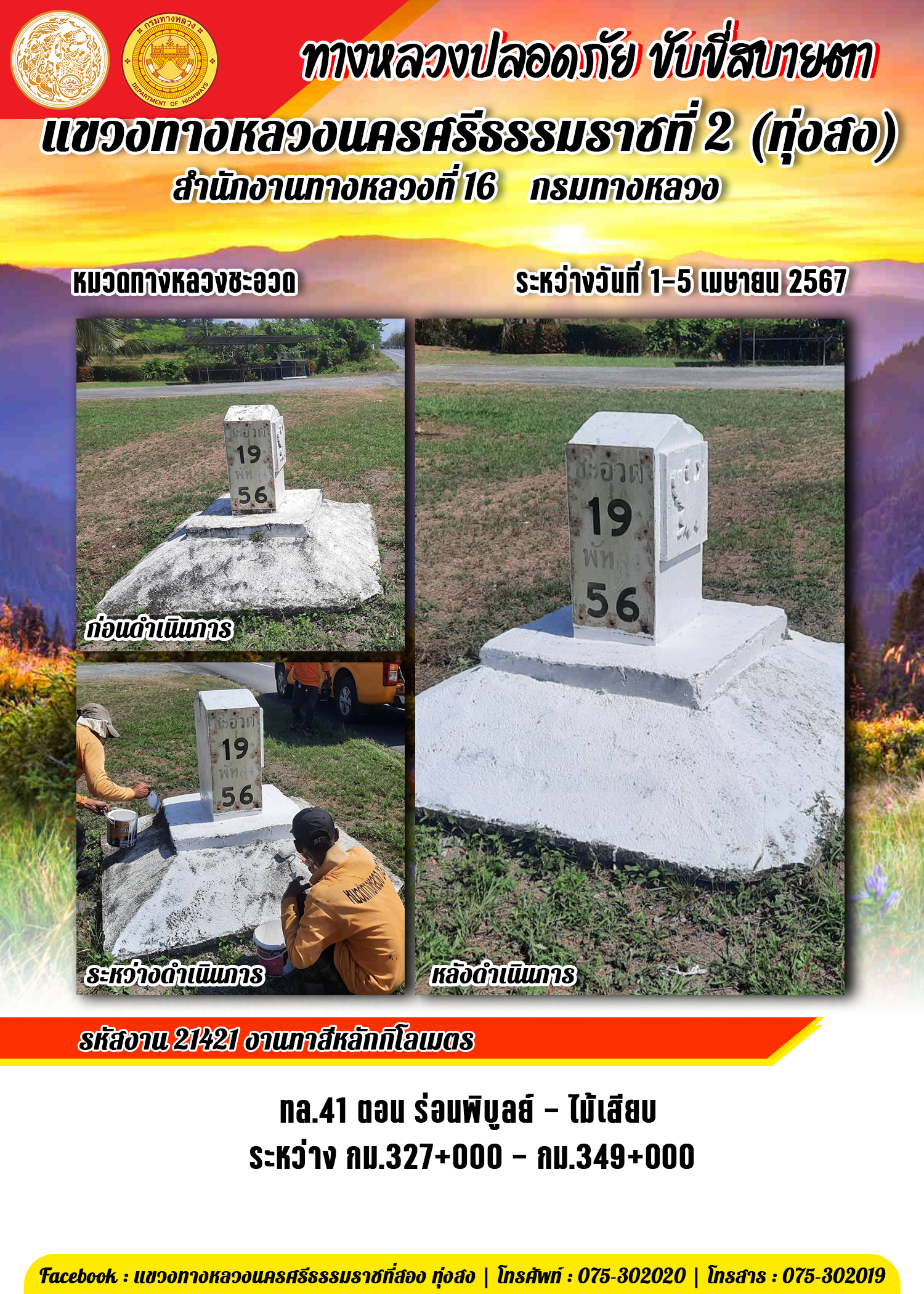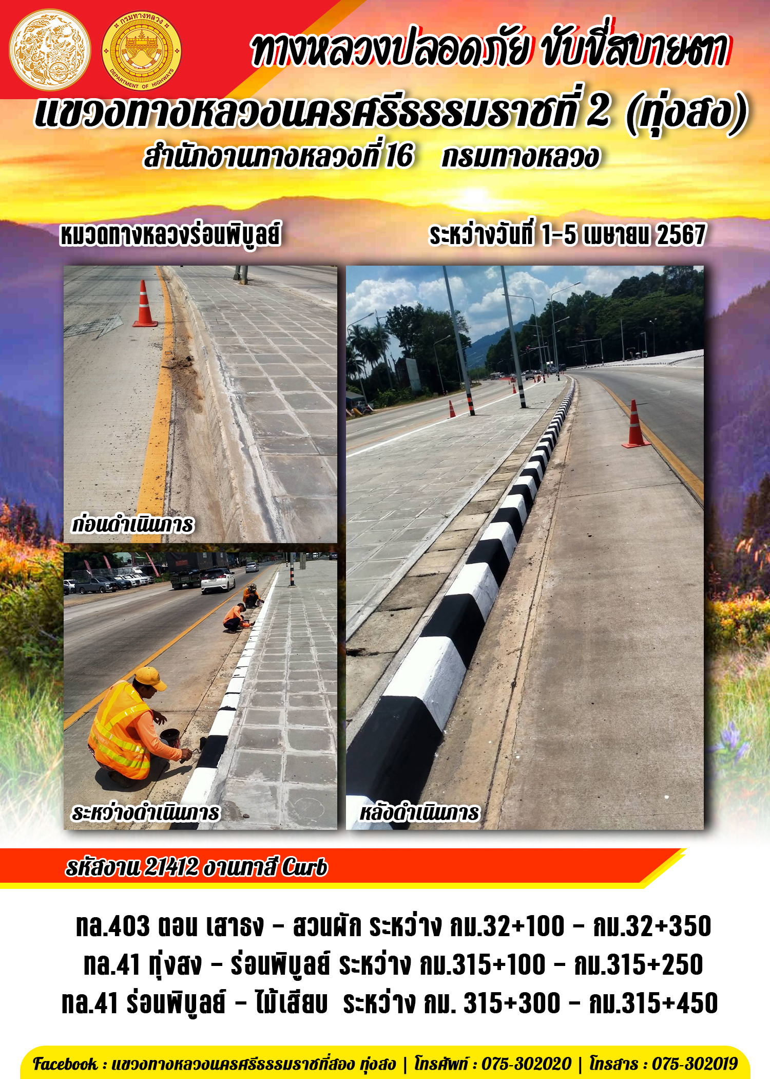ผลการปฏิบัติงานของหมวดทางหลวงและหน่วยงานในสังกัด แขวงทางหลวงนครศรีธรรมราชที่ 2 (ทุ่งสง) ระหว่างวันที่ 1-5 เมษายน พ.ศ.2567