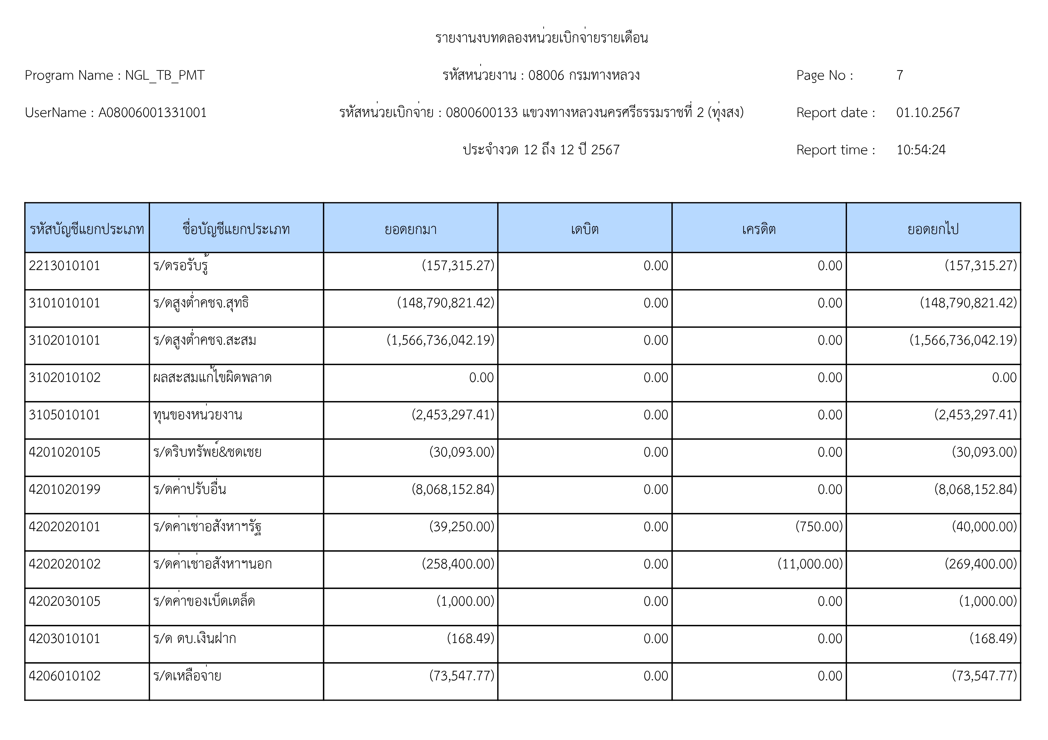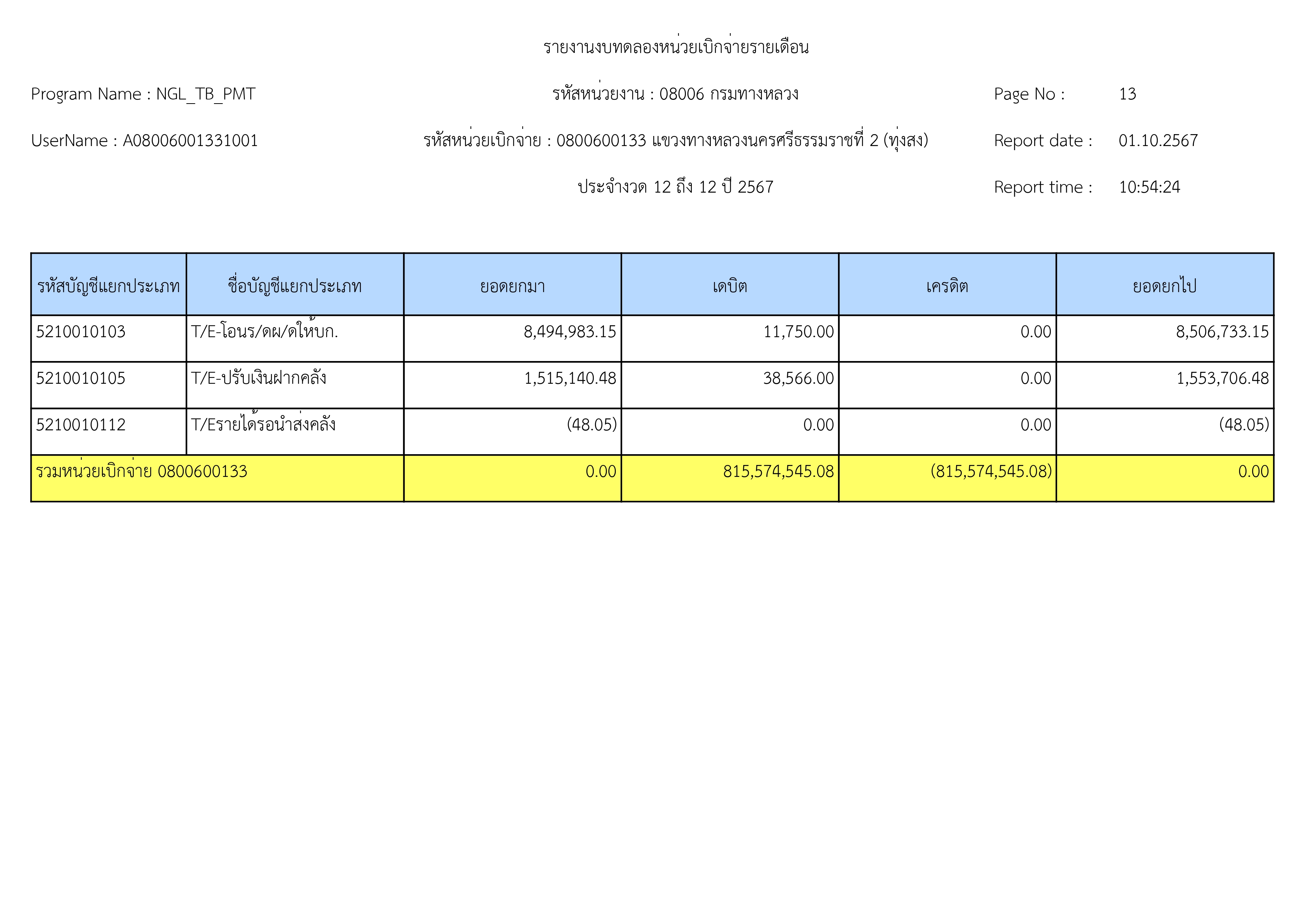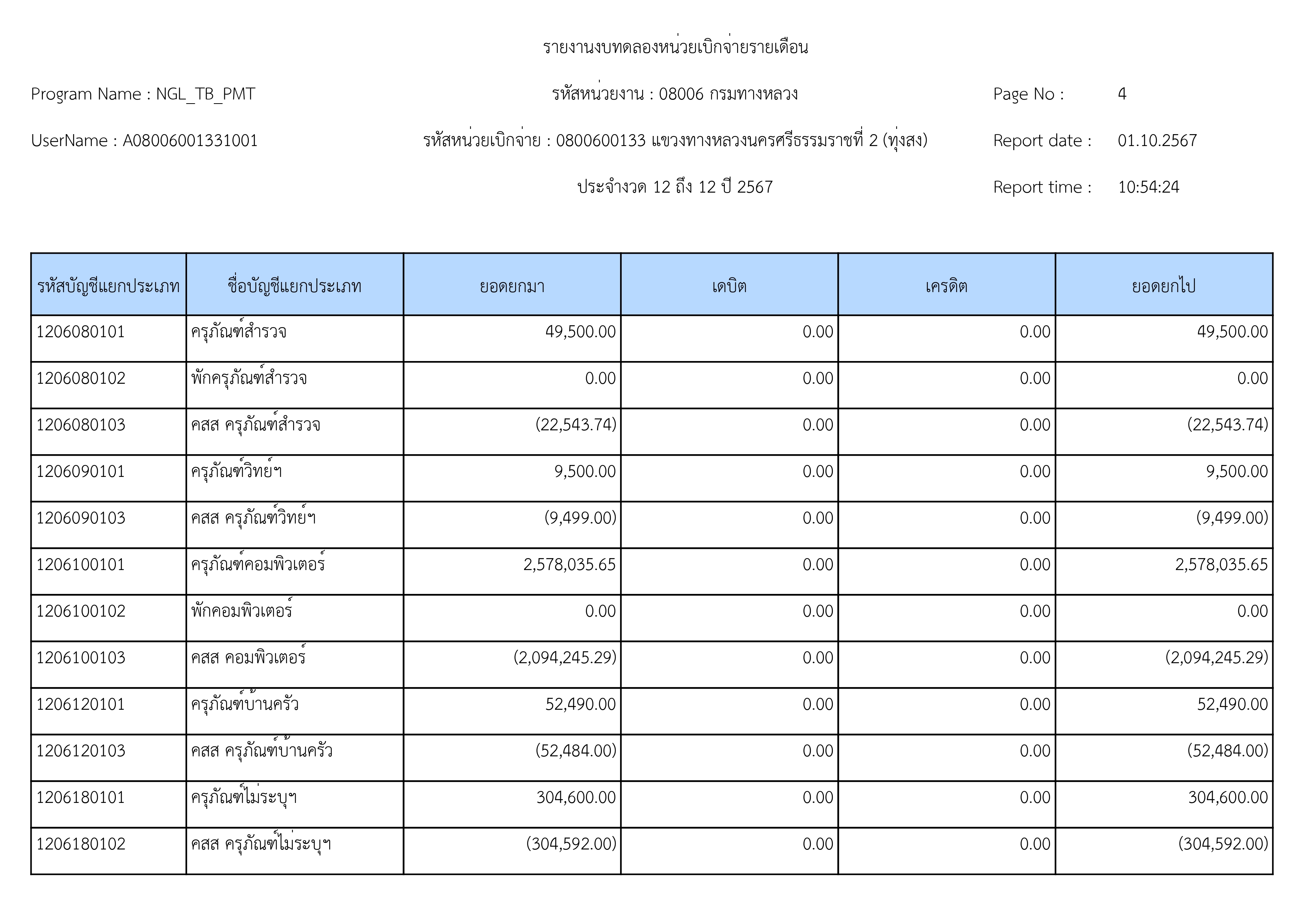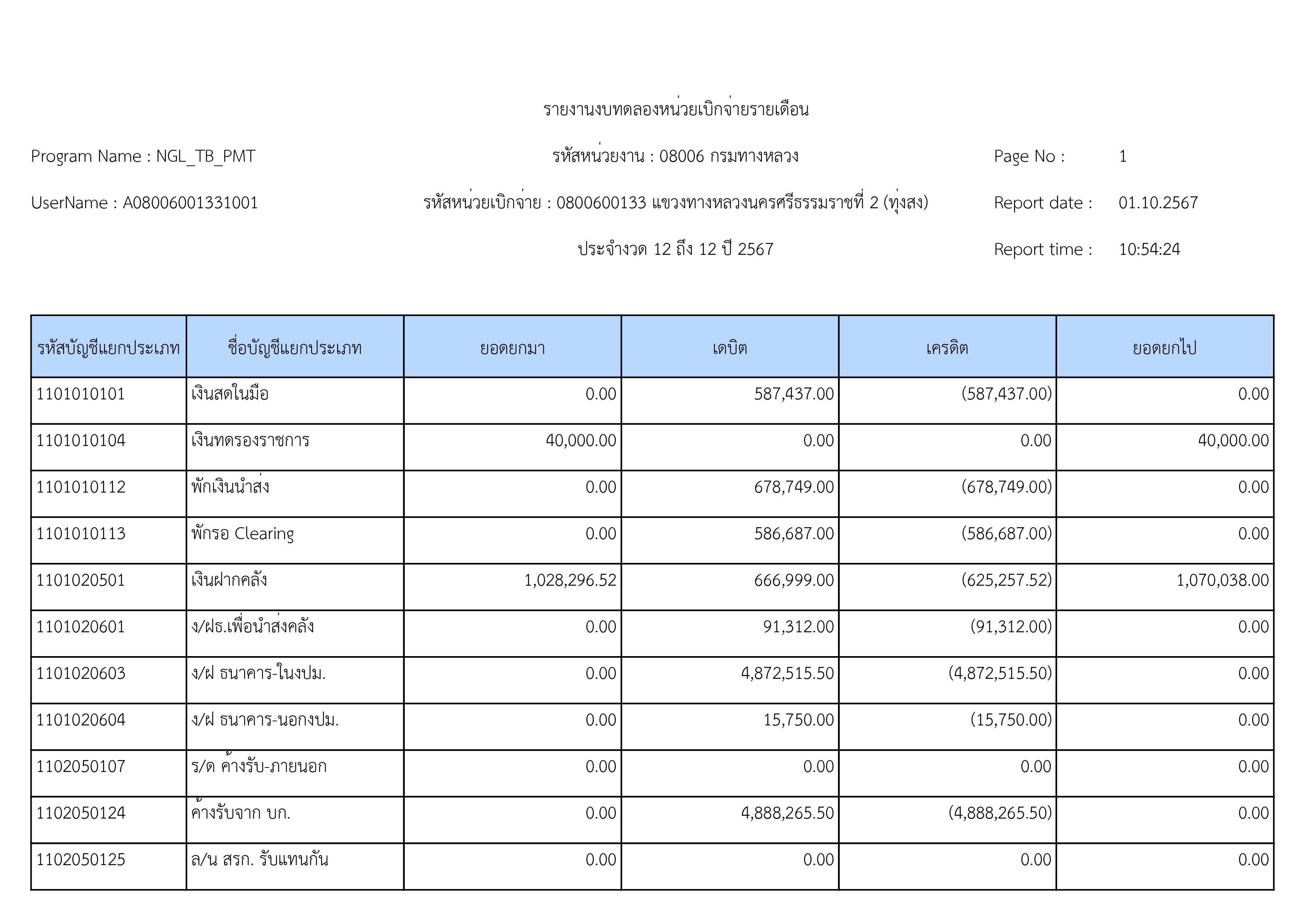 รายงานงบทดลองหน่วยเบิกจ่ายรายเดือน ณ วันที่ 30 กันยายน 2567