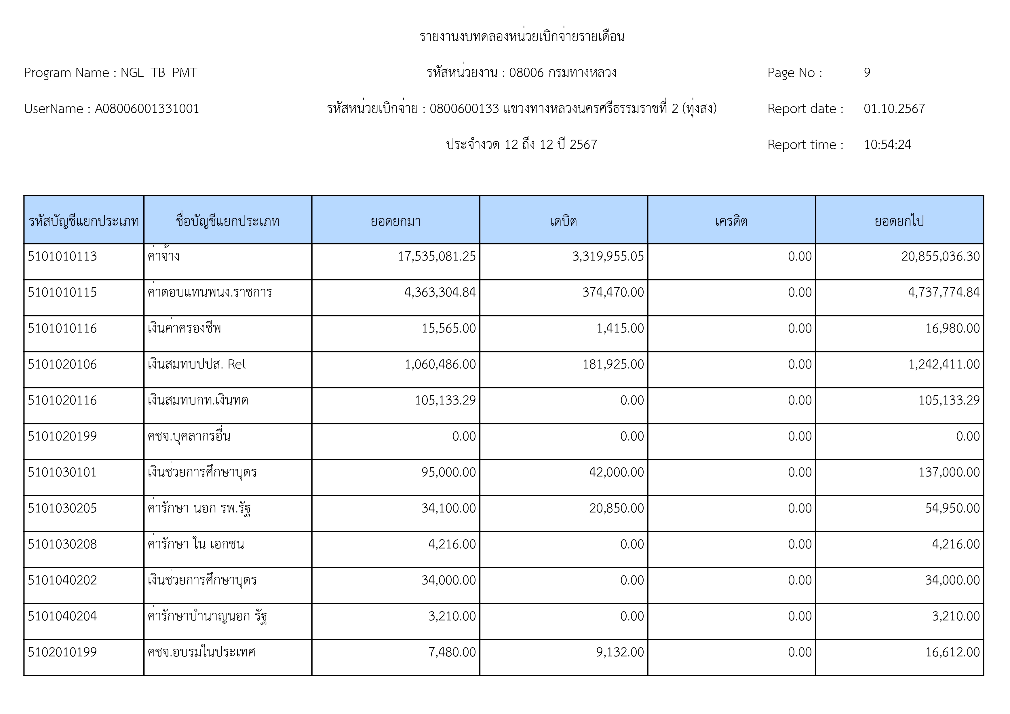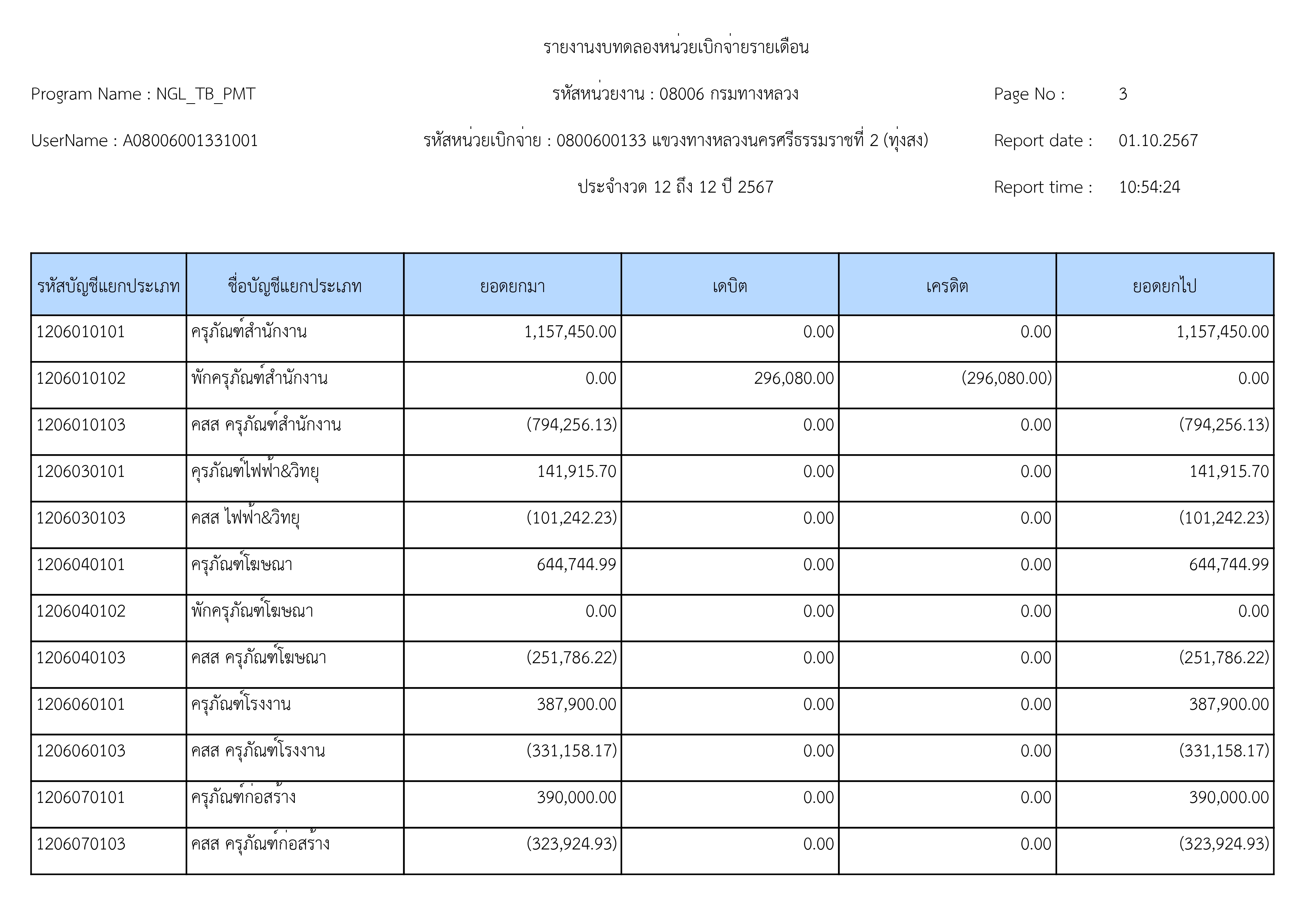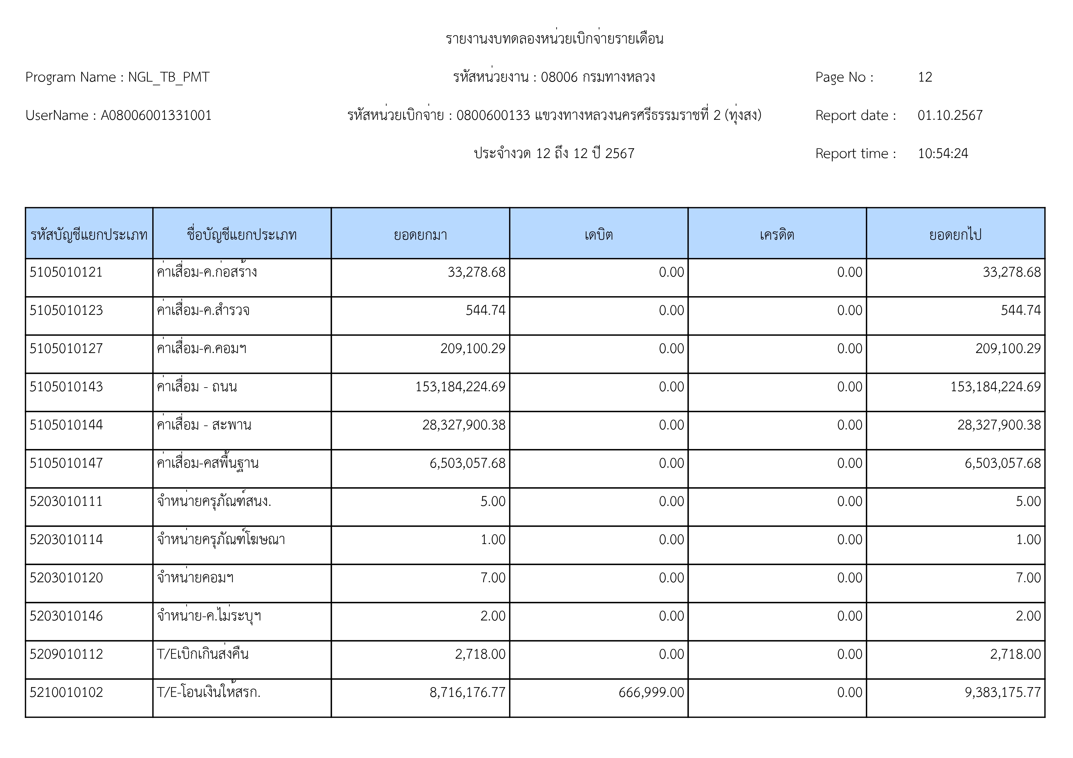 รายงานงบทดลองหน่วยเบิกจ่ายรายเดือน ณ วันที่ 30 กันยายน 2567