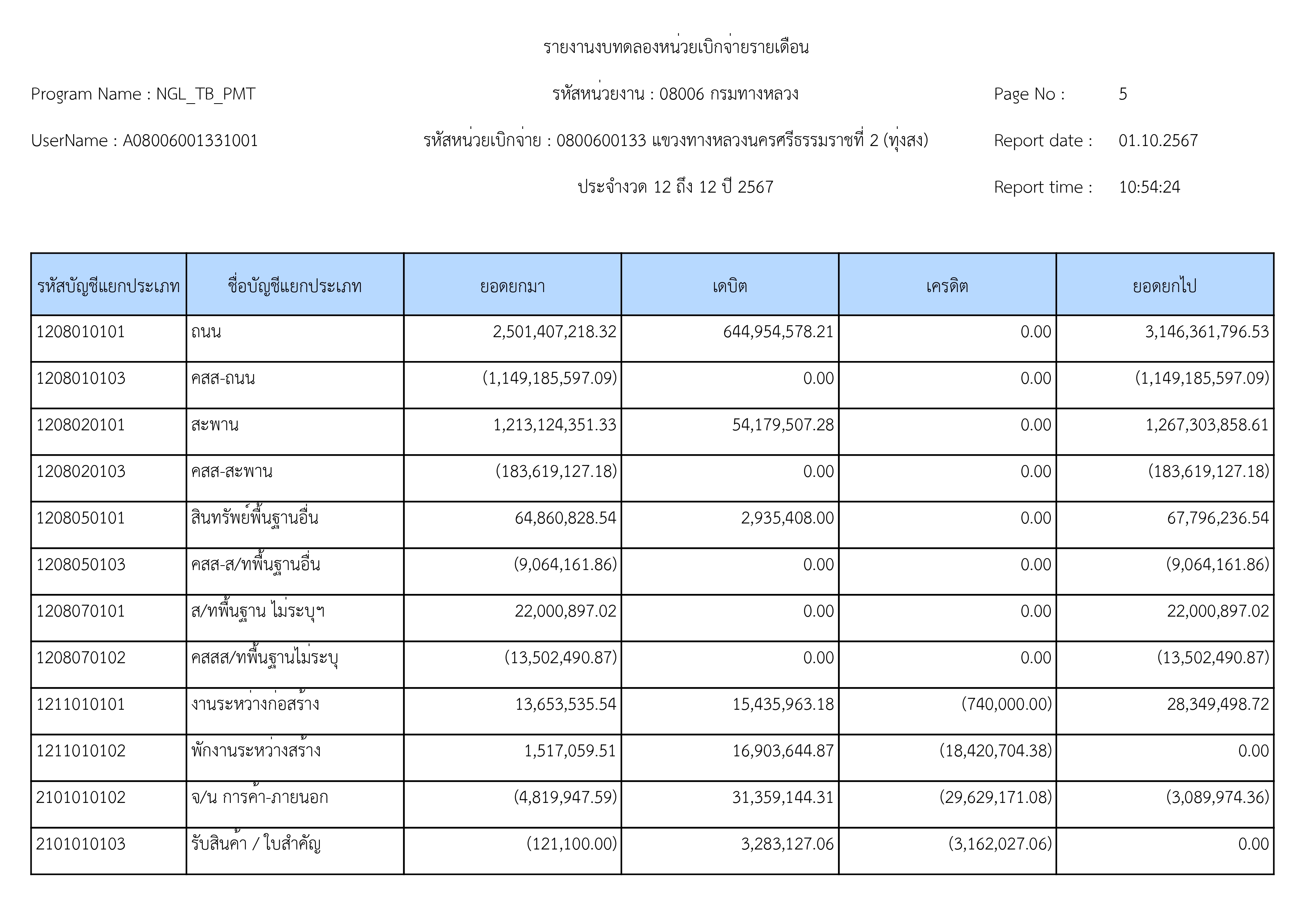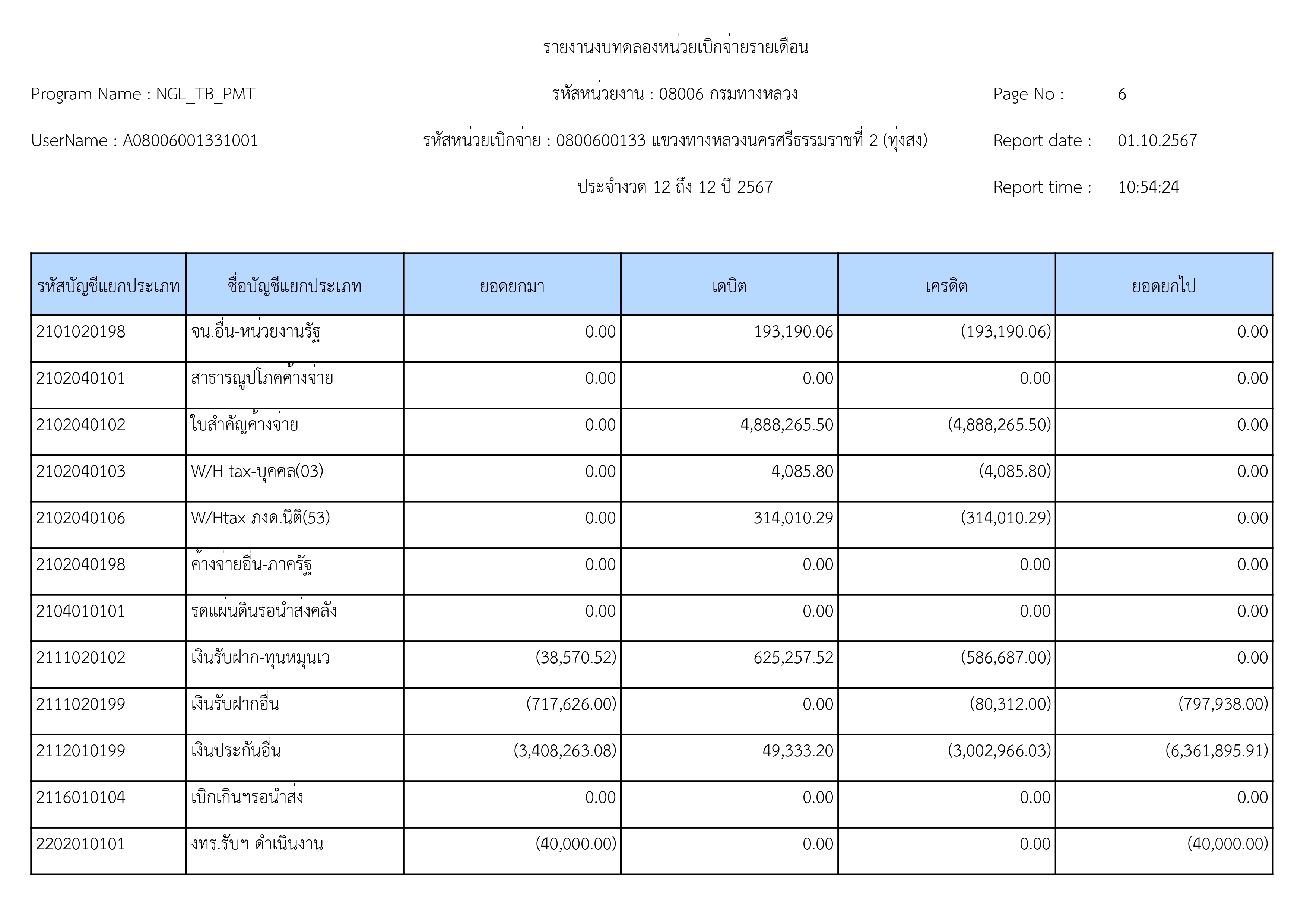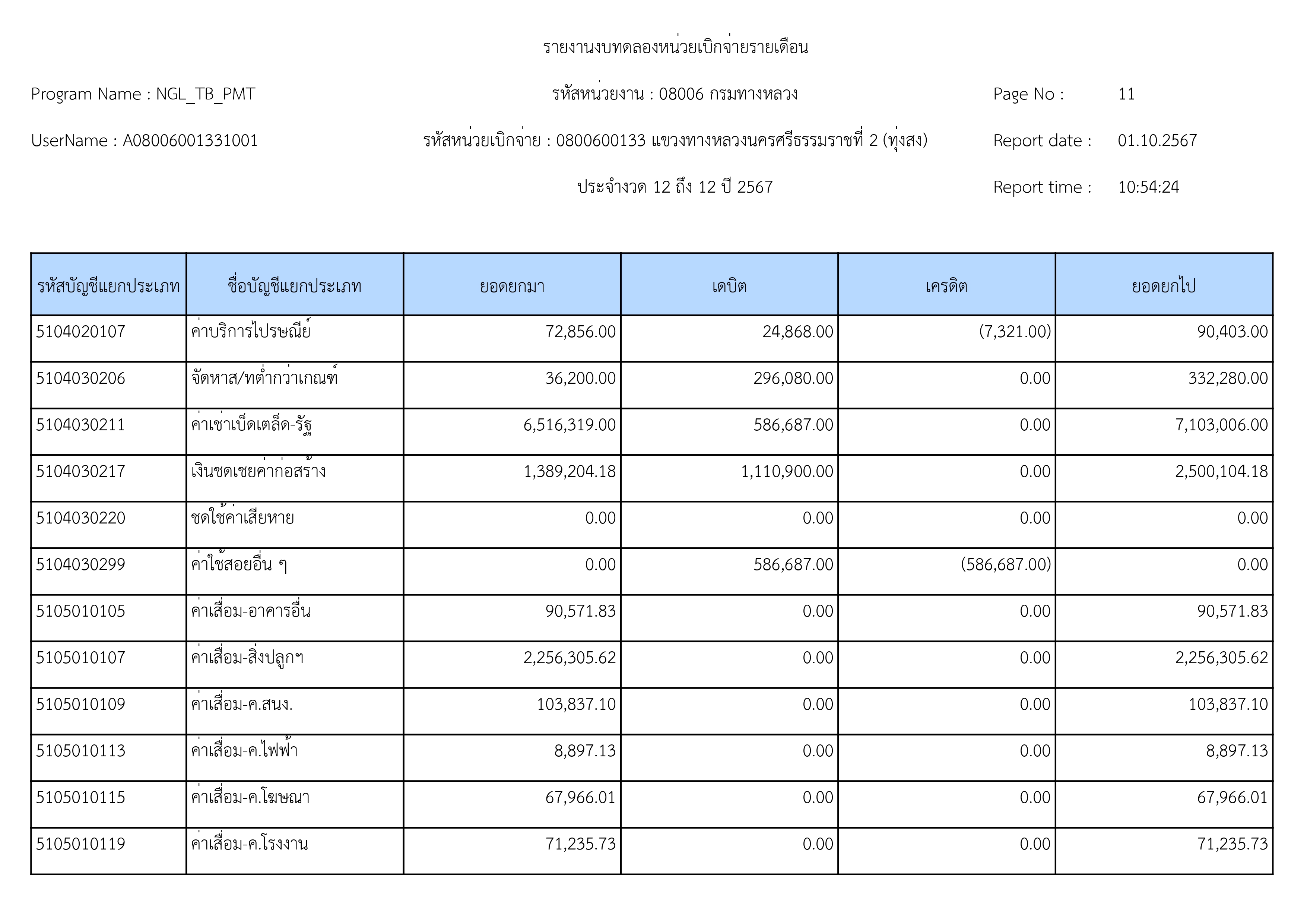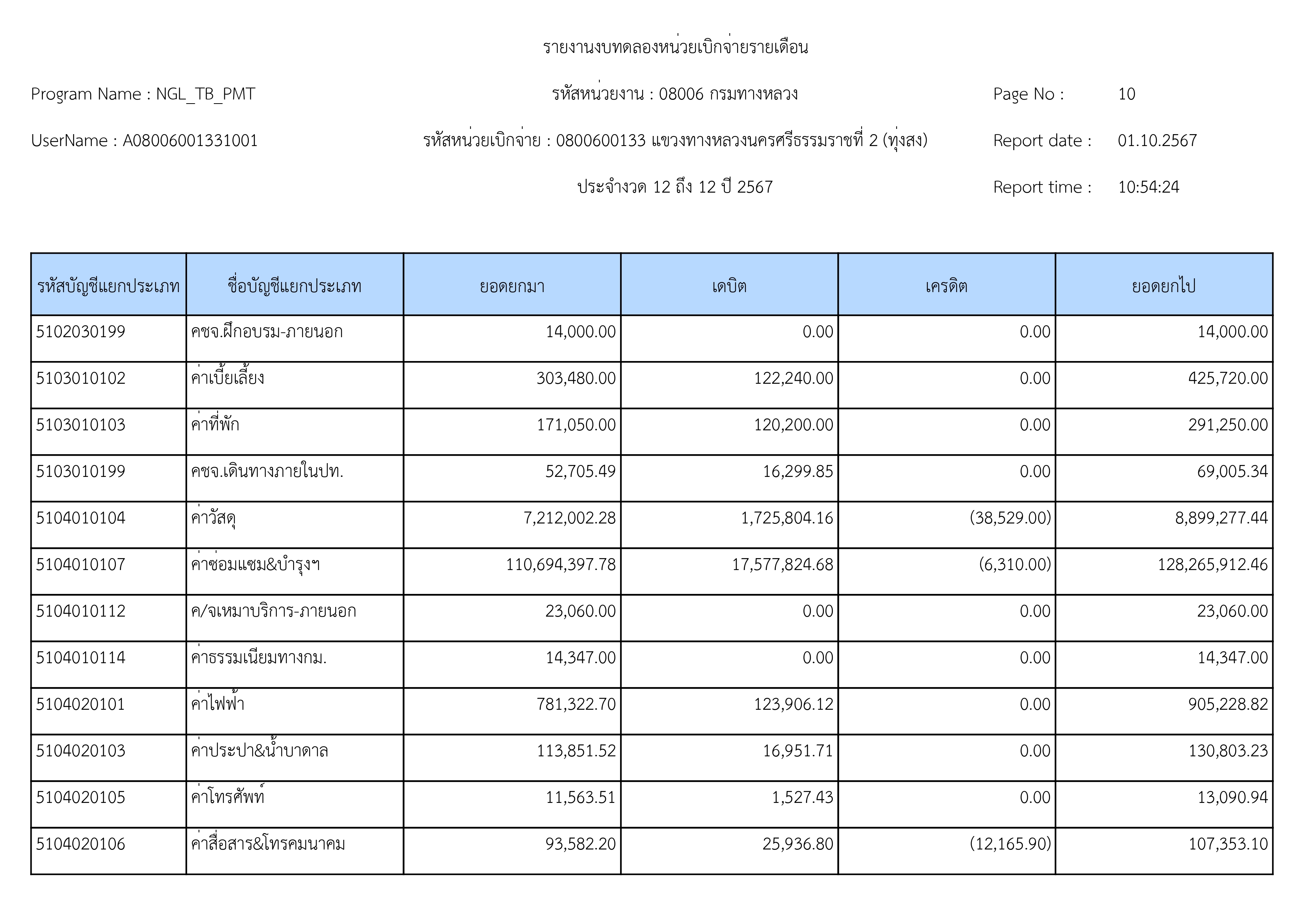 รายงานงบทดลองหน่วยเบิกจ่ายรายเดือน ณ วันที่ 30 กันยายน 2567