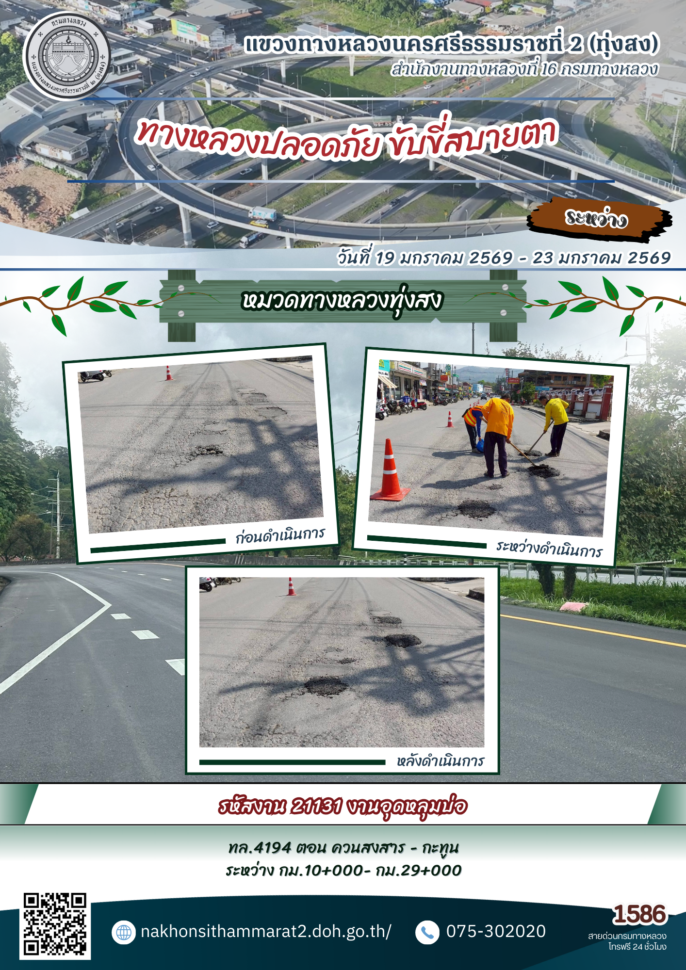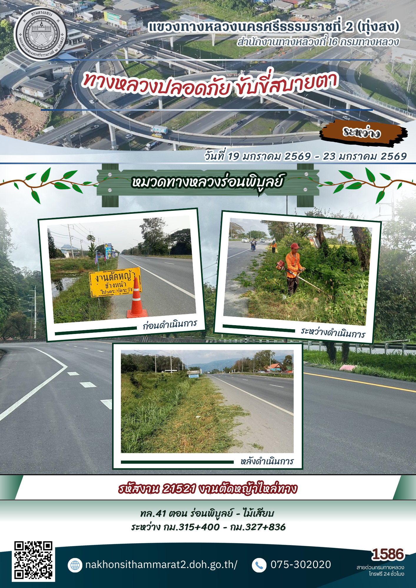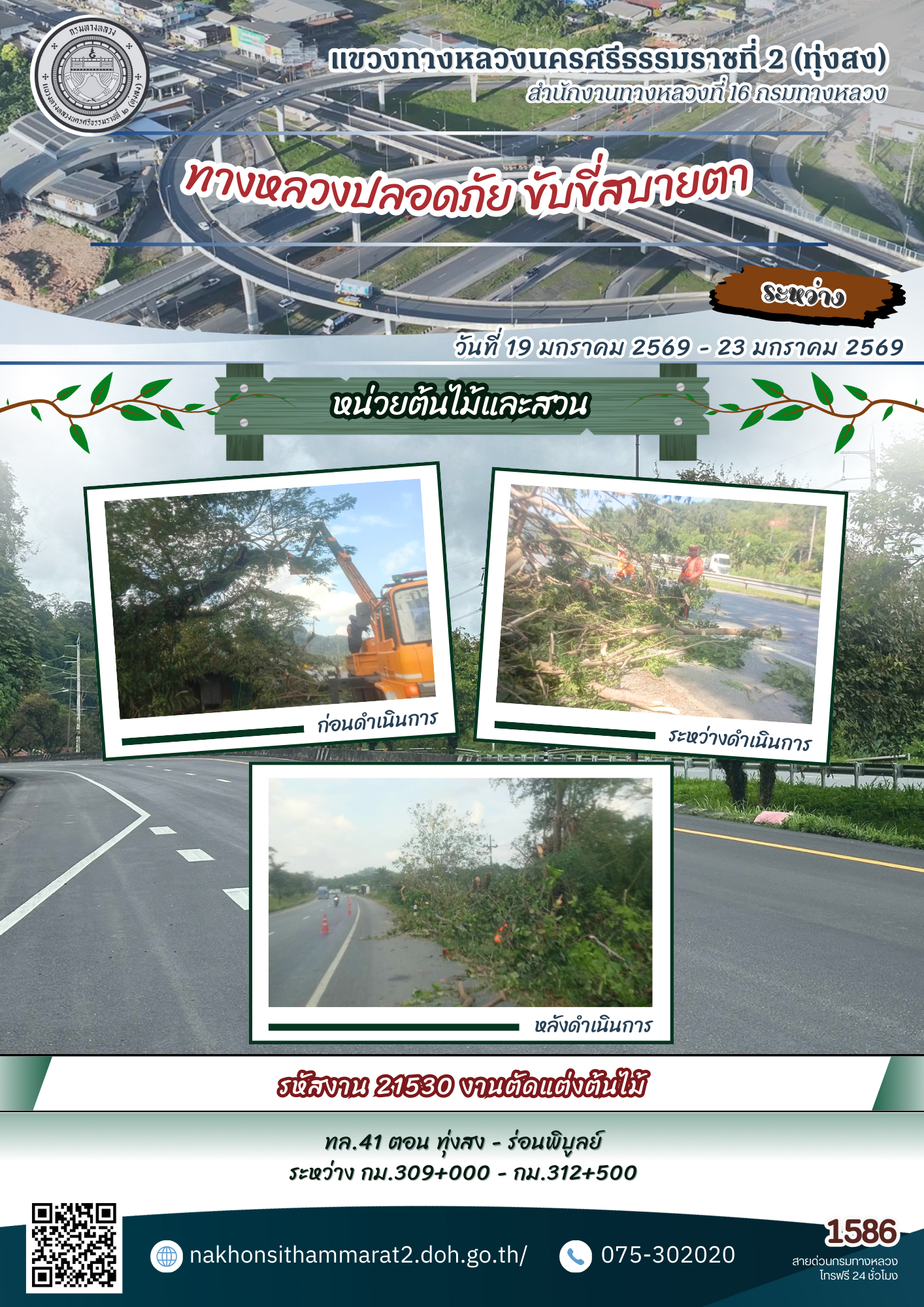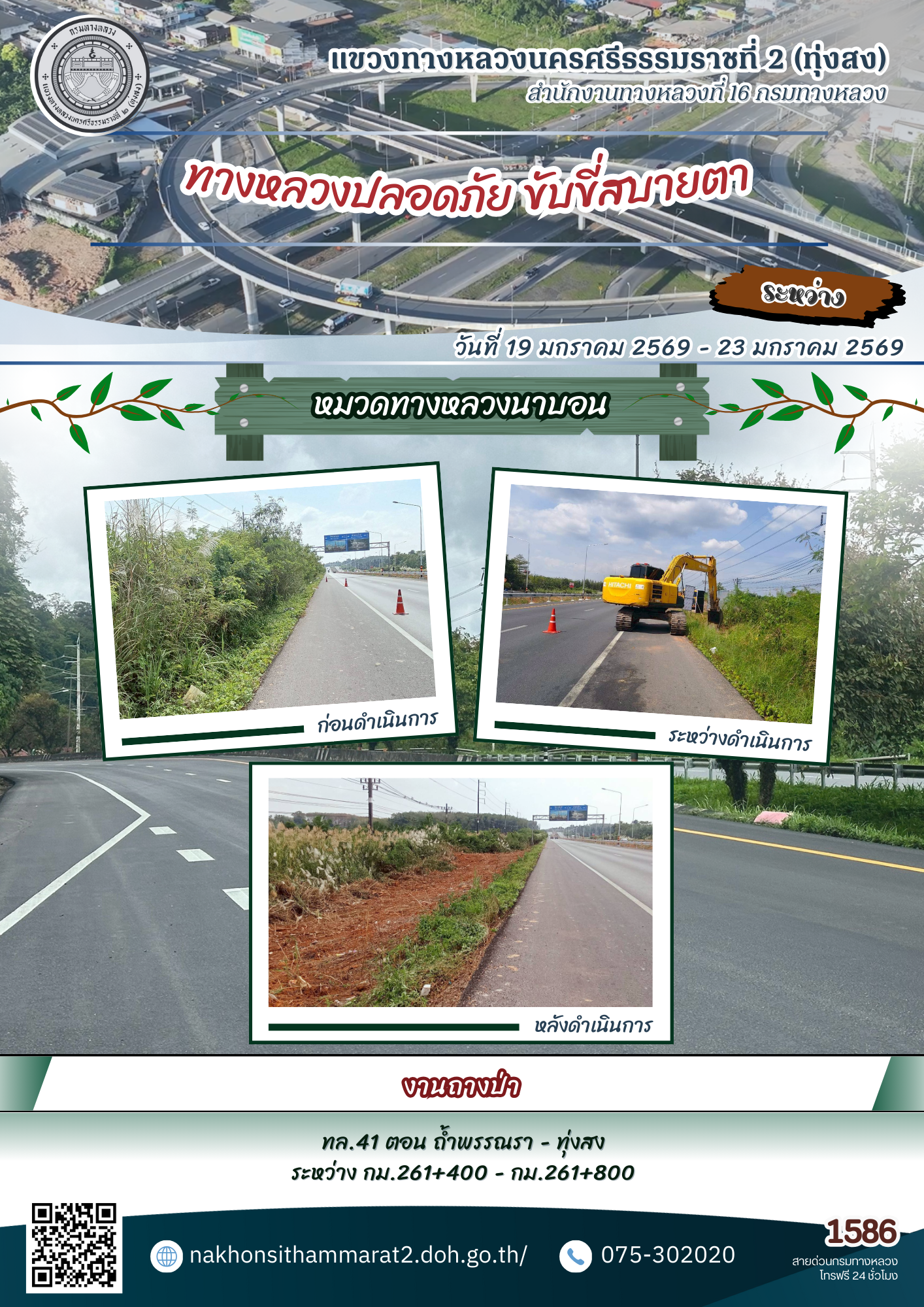 ผลการปฏิบัติงานของหมวดทางหลวงและหน่วยงานในสังกัด แขวงทางหลวงนครศรีธรรมราชที่ 2 (ทุ่งสง) ระหว่างวันที่ 19 - 23 มกราคม พ.ศ.2569