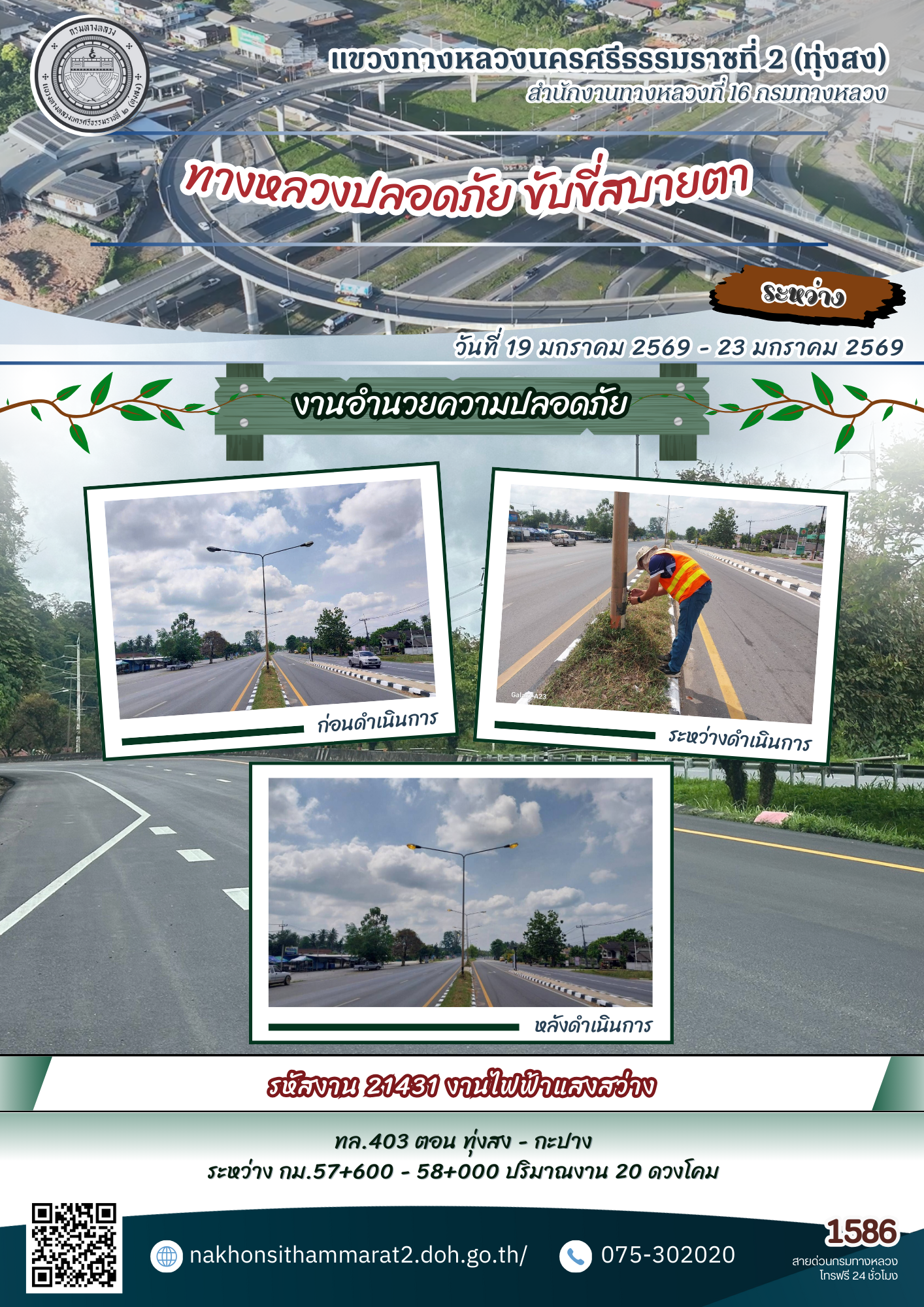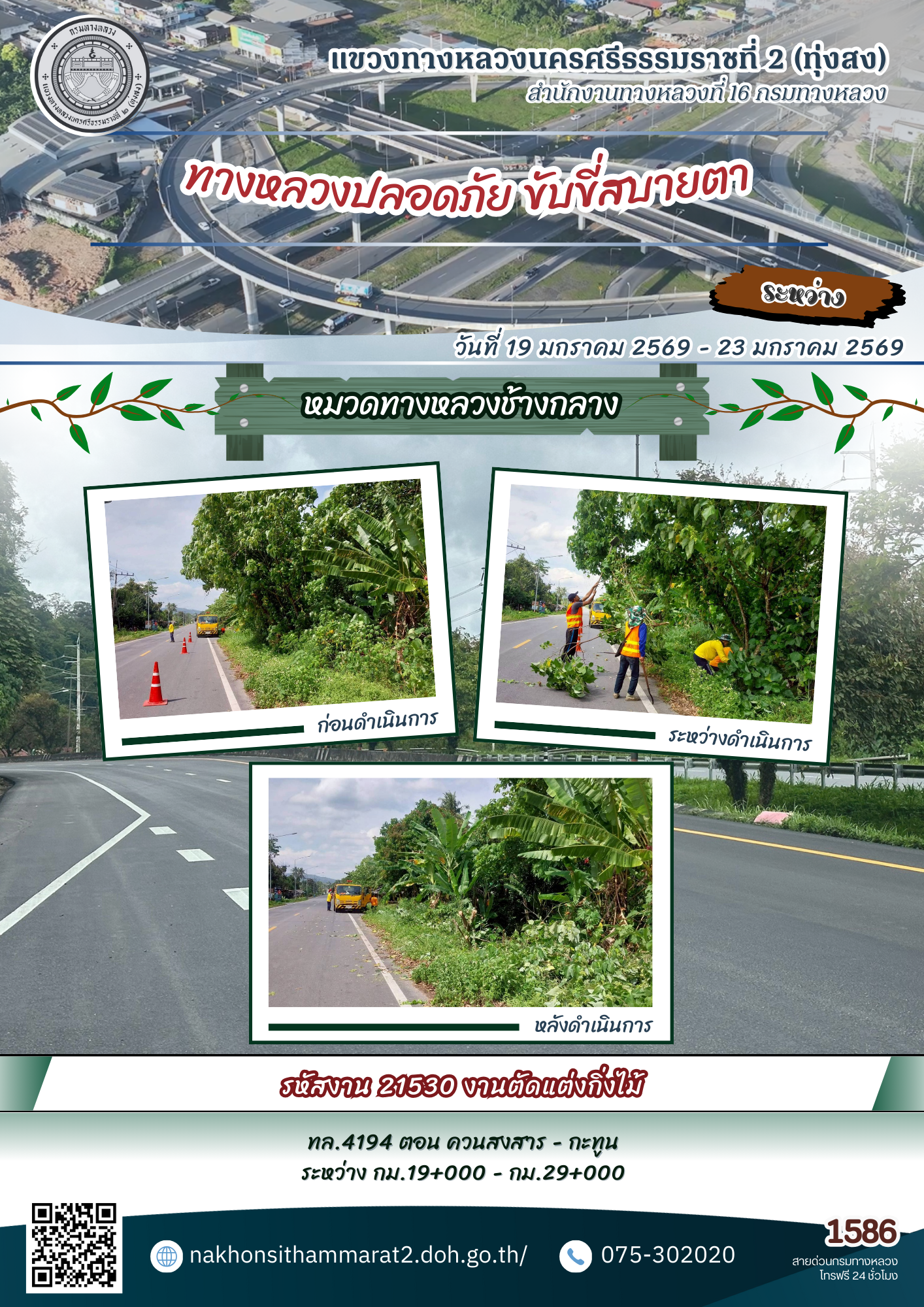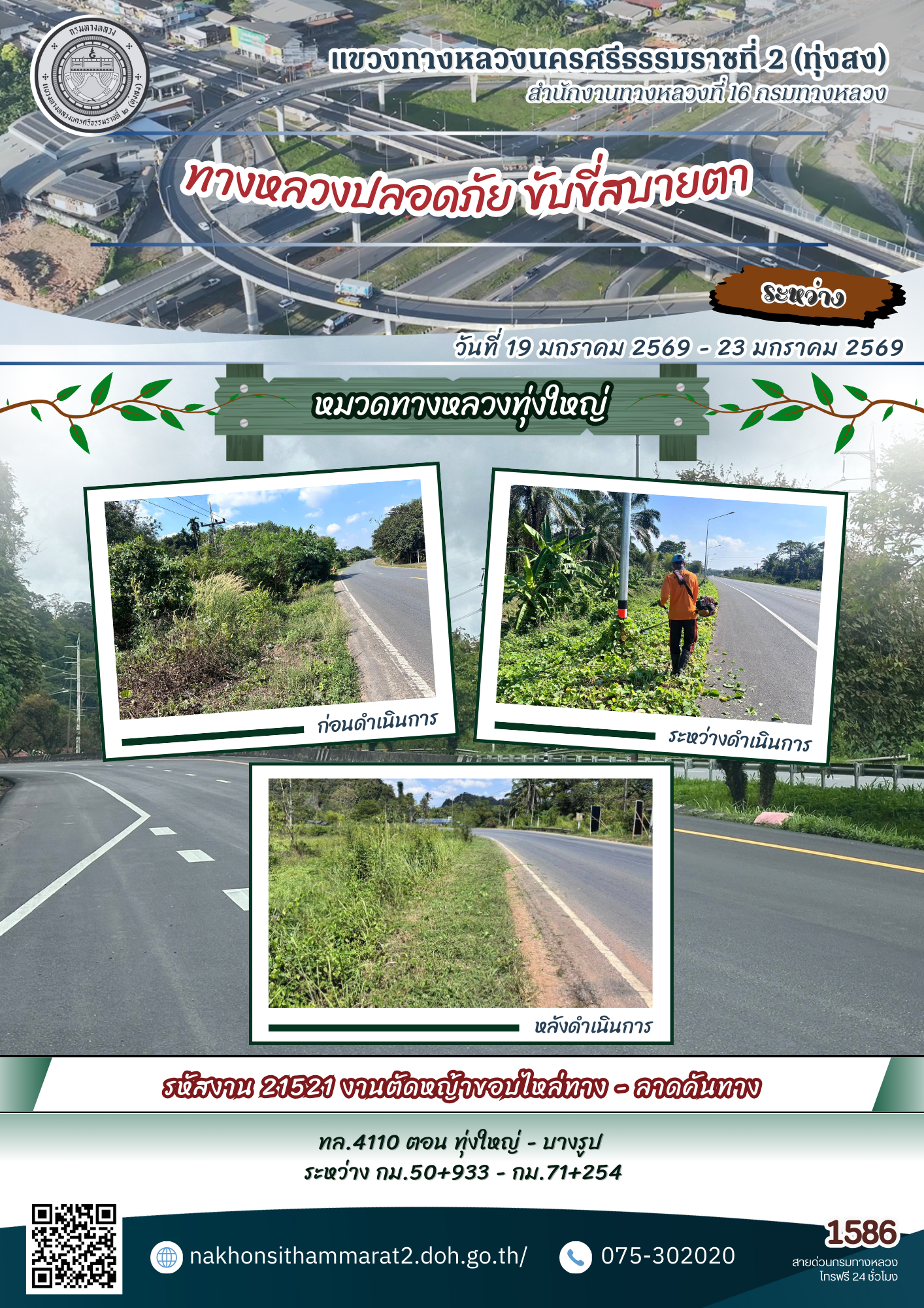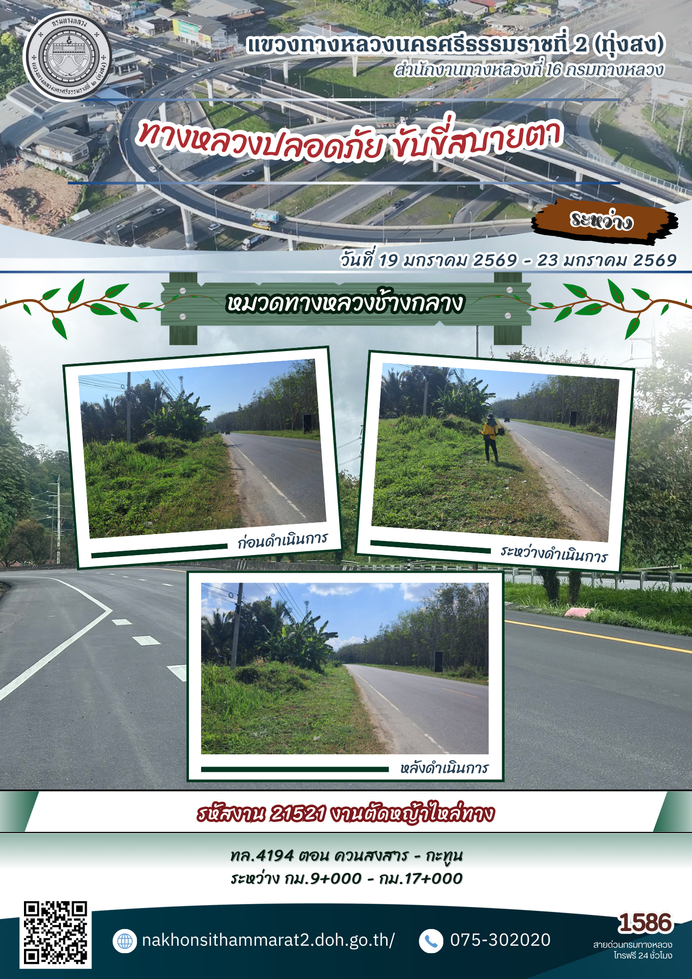 ผลการปฏิบัติงานของหมวดทางหลวงและหน่วยงานในสังกัด แขวงทางหลวงนครศรีธรรมราชที่ 2 (ทุ่งสง) ระหว่างวันที่ 19 - 23 มกราคม พ.ศ.2569