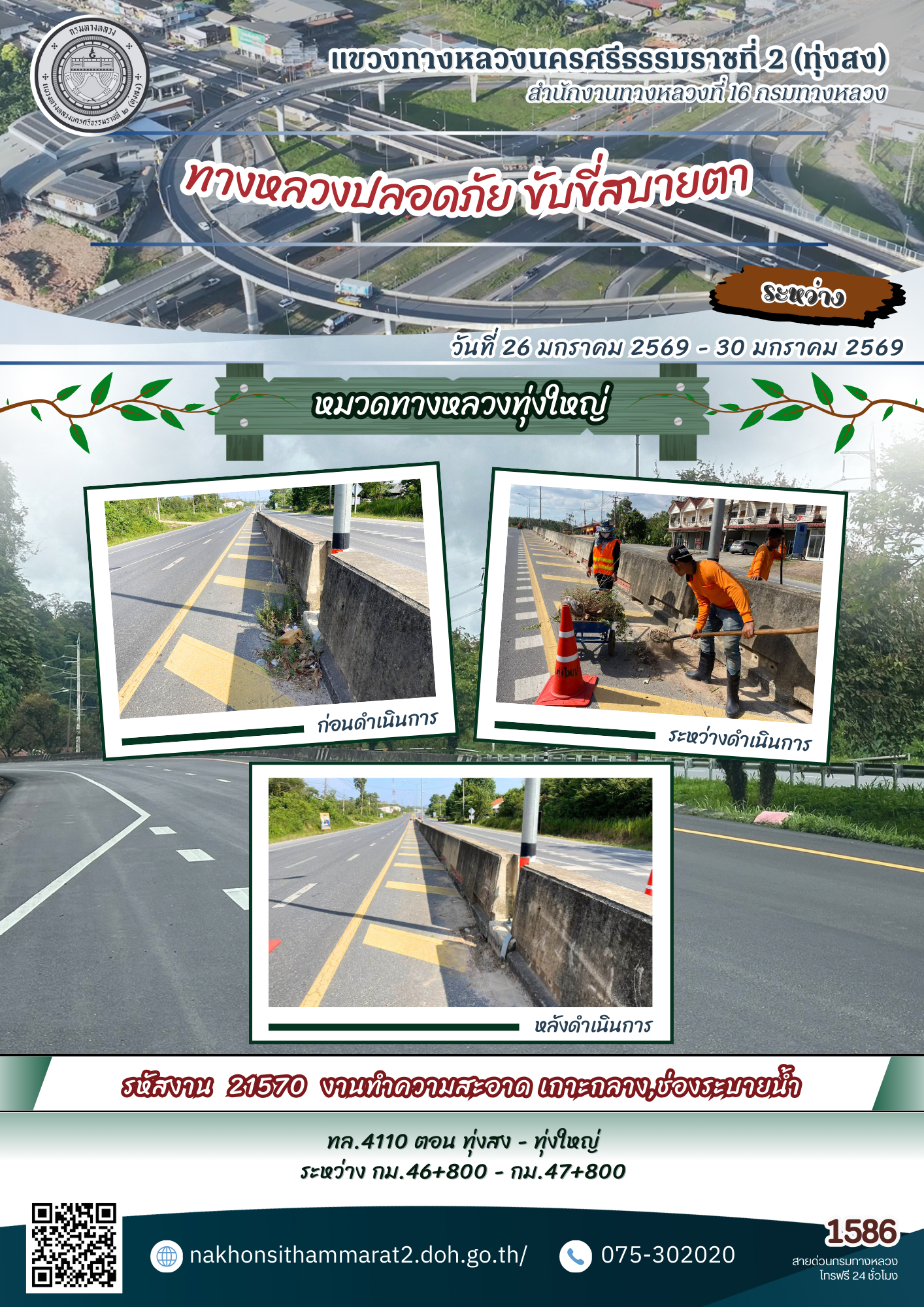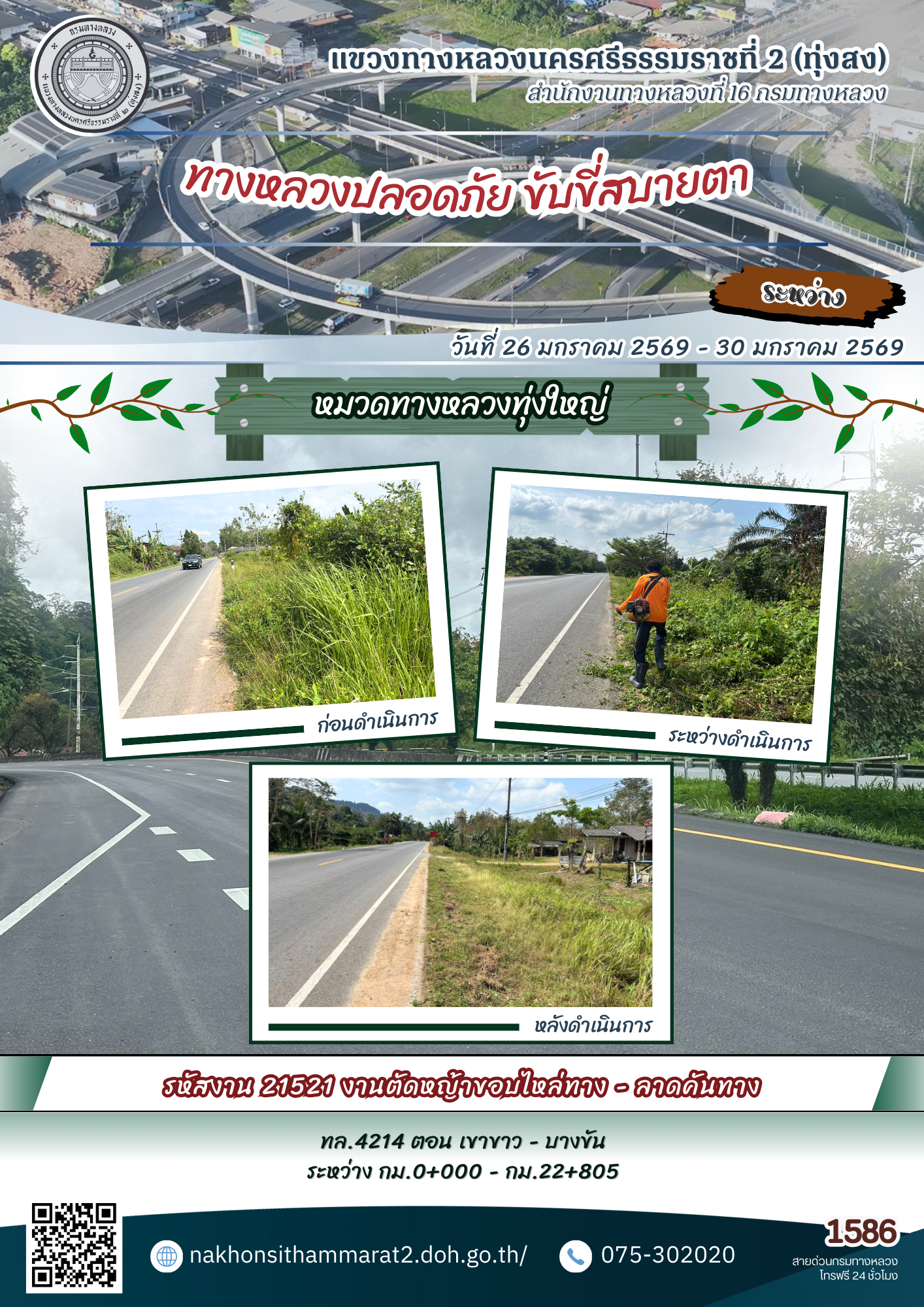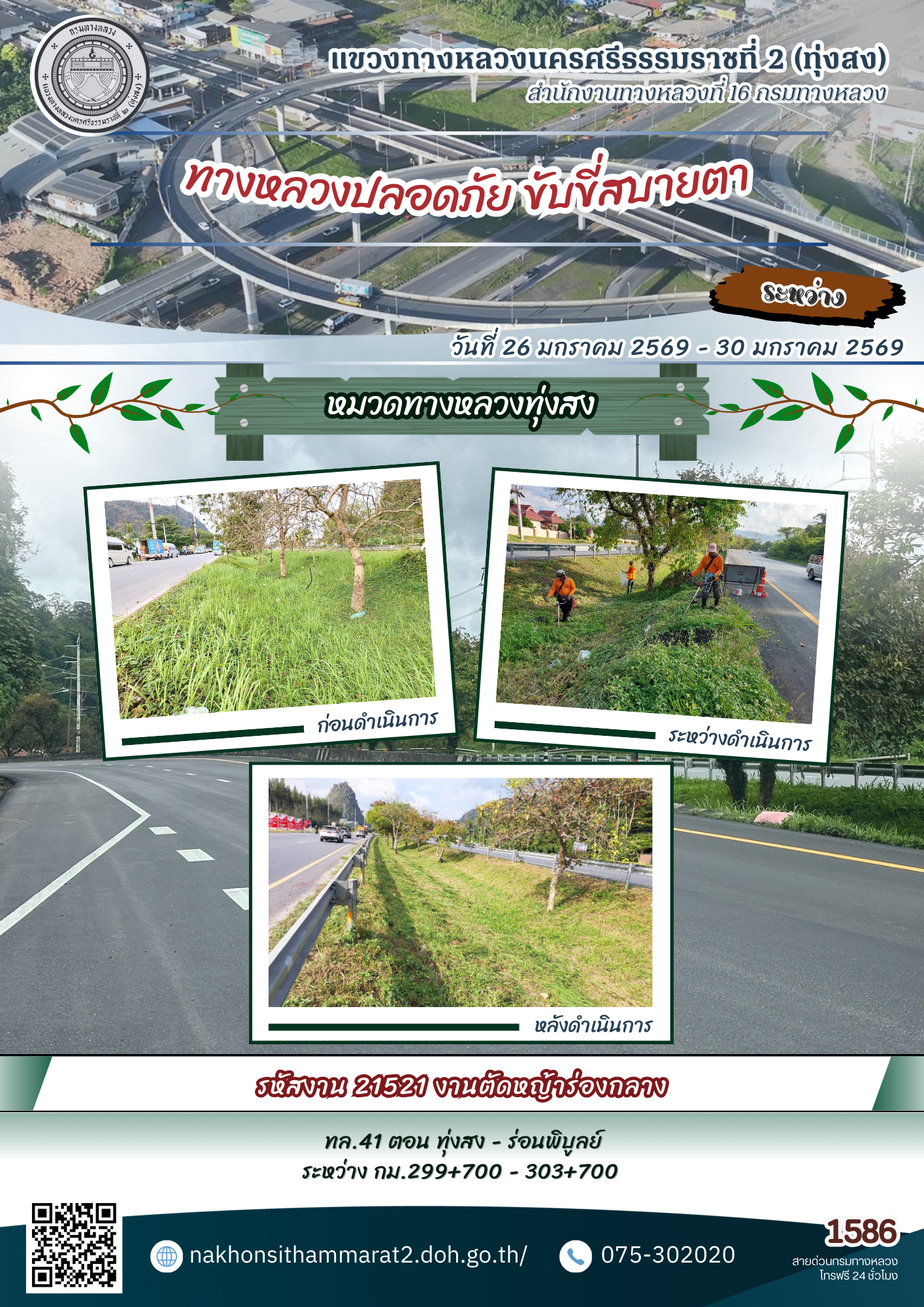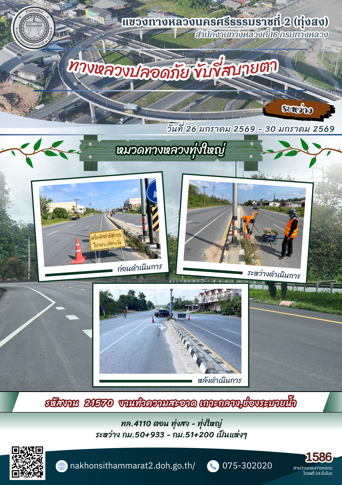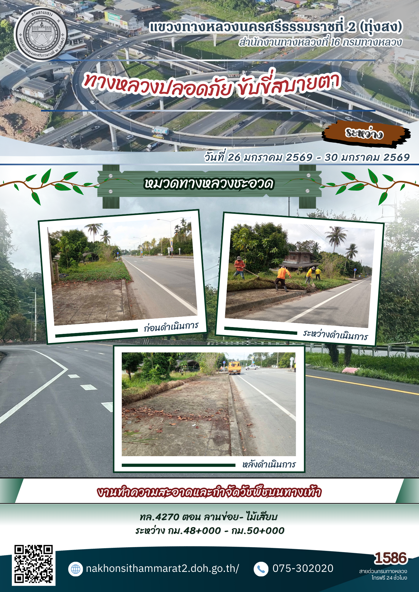 ผลการปฏิบัติงานของหมวดทางหลวงและหน่วยงานในสังกัด แขวงทางหลวงนครศรีธรรมราชที่ 2 (ทุ่งสง) ระหว่างวันที่ 26 - 30 มกราคม 2569
