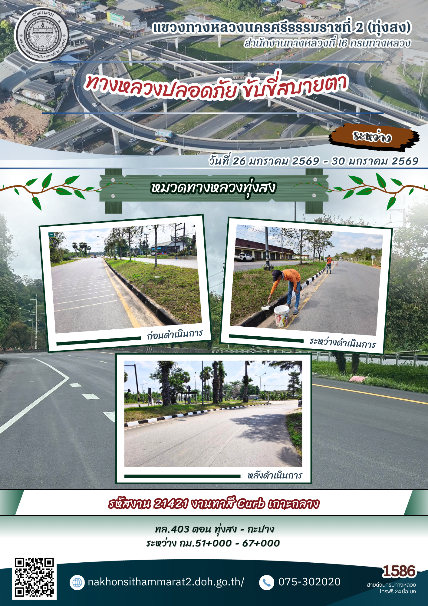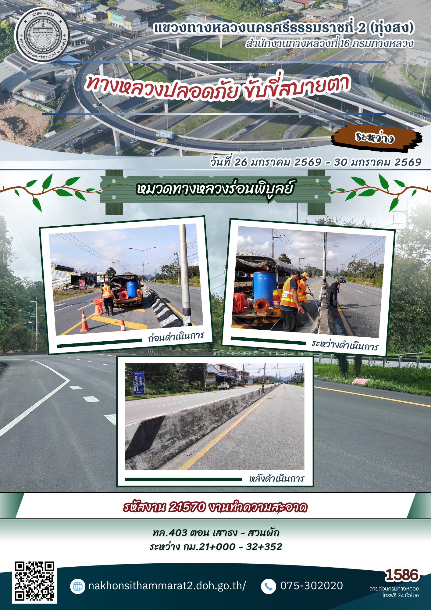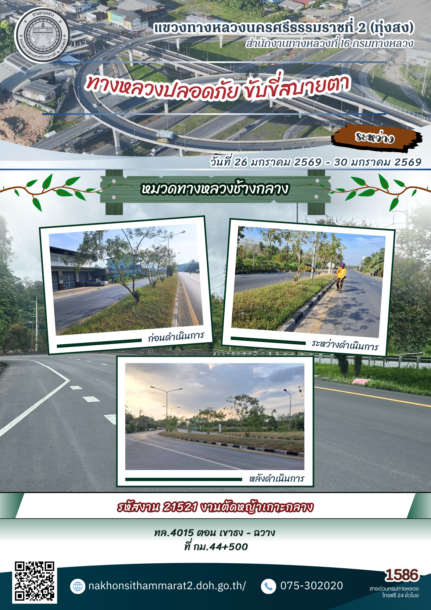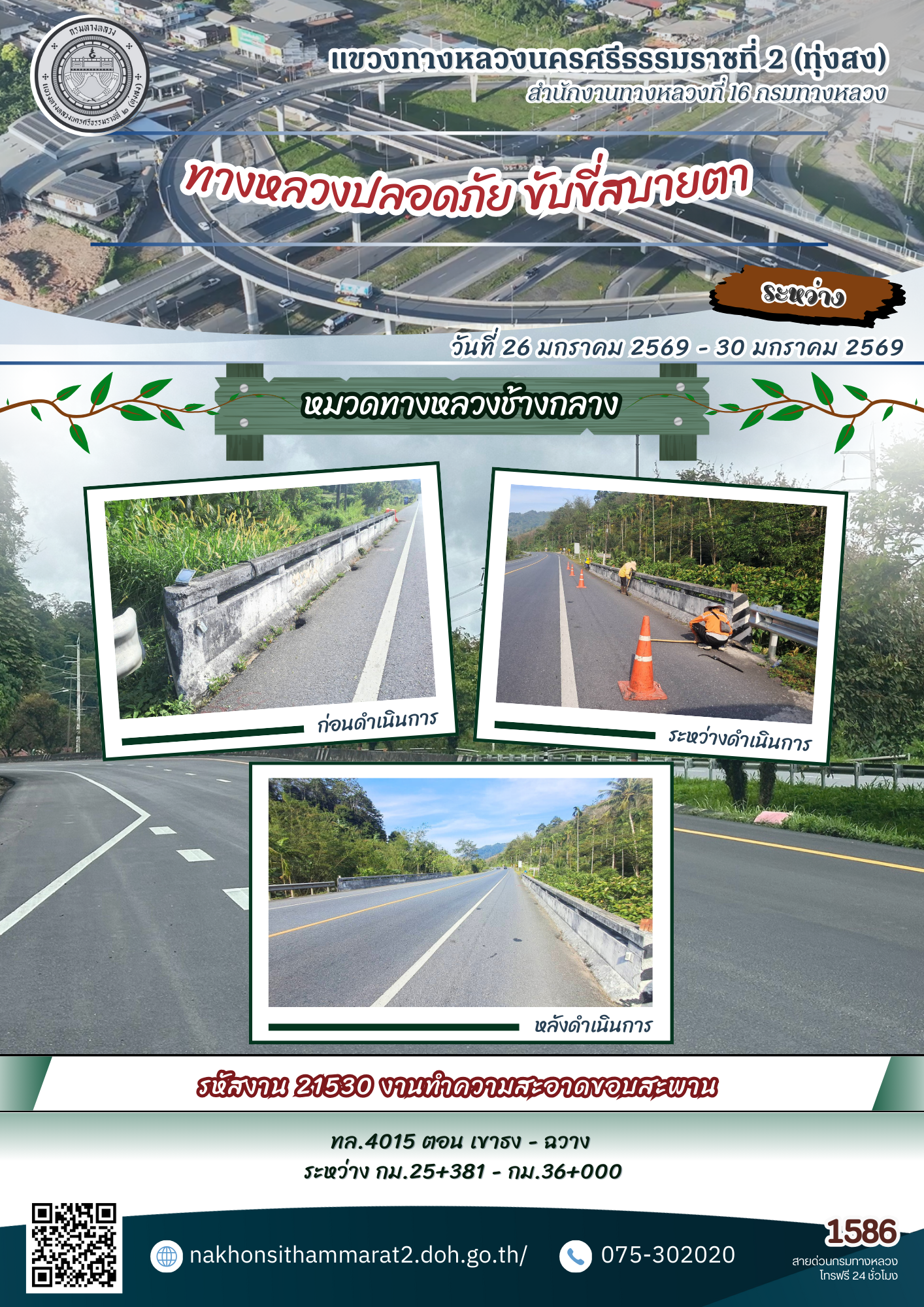 ผลการปฏิบัติงานของหมวดทางหลวงและหน่วยงานในสังกัด แขวงทางหลวงนครศรีธรรมราชที่ 2 (ทุ่งสง) ระหว่างวันที่ 26 - 30 มกราคม 2569