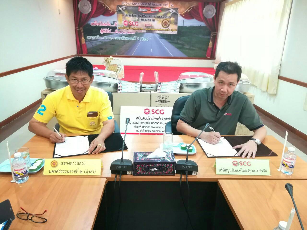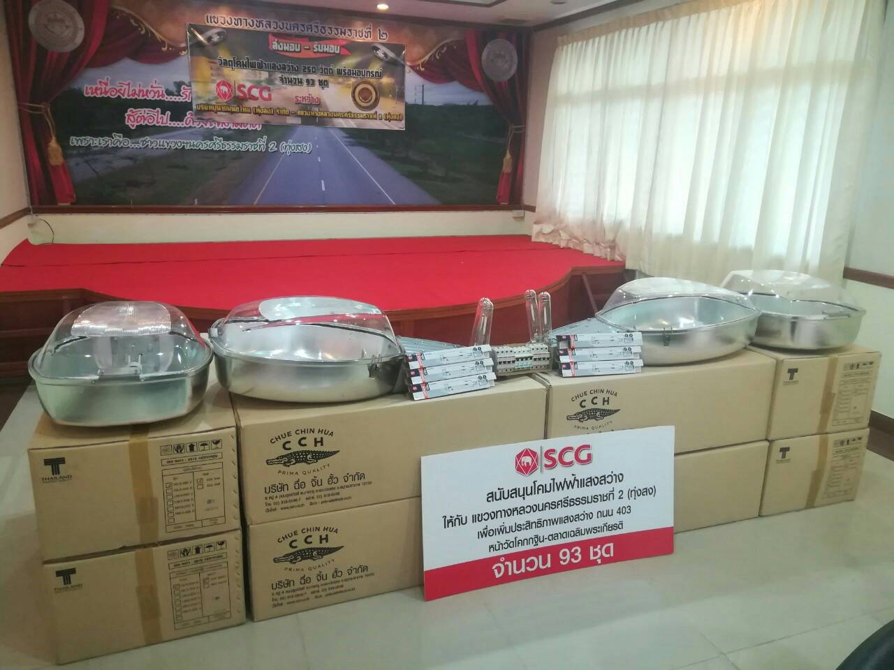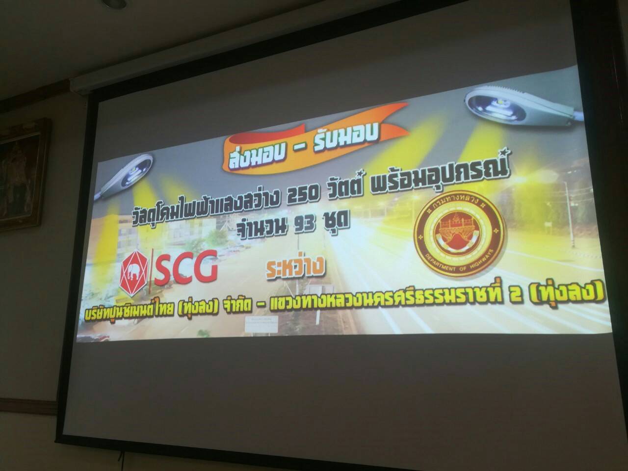 วันพุธ ที่ 3 เมษายน 2562 เวลา 09.00 น. นายอภิชาติ เพชรศรีจันทร์ ผู้อำนวยการแขวงทางหลวงนครศรีธรรมราชที่ 2 (ทุ่งสง) รับมอบวัสดุไฟฟ้าแสงสว่าง 250 วัตต์ พร้อมอุปกรณ์ จำนวน 93 ชุด จากบริษัทปูนซีเมนต์ไทย(ทุ่งสง) จำกัด โดยนายเกษมสุข พยุงพันธุ์ Sustainable Development Manager เป็นผู้แทนส่งมอบ เพื่อให้แขวงทางหลวงนครศรีธรรมราชที่ 2 (ทุ่งสง) นำไปเปลี่ยนโคมไฟฟ้าแสงสว่างเพิ่มประสิทธิภาพของการอำนวยความสะดวกและปลอดภัยแก่ผู้ใช้ทางหลวง ในทางหลวงหมายเลข 403 ตอน ทุ่งสง – กะปาง ต่อไป ณ ห้องประชุม 2 แขวงทางหลวงนครศรีธรรมราชที่ 2 (ทุ่งสง)