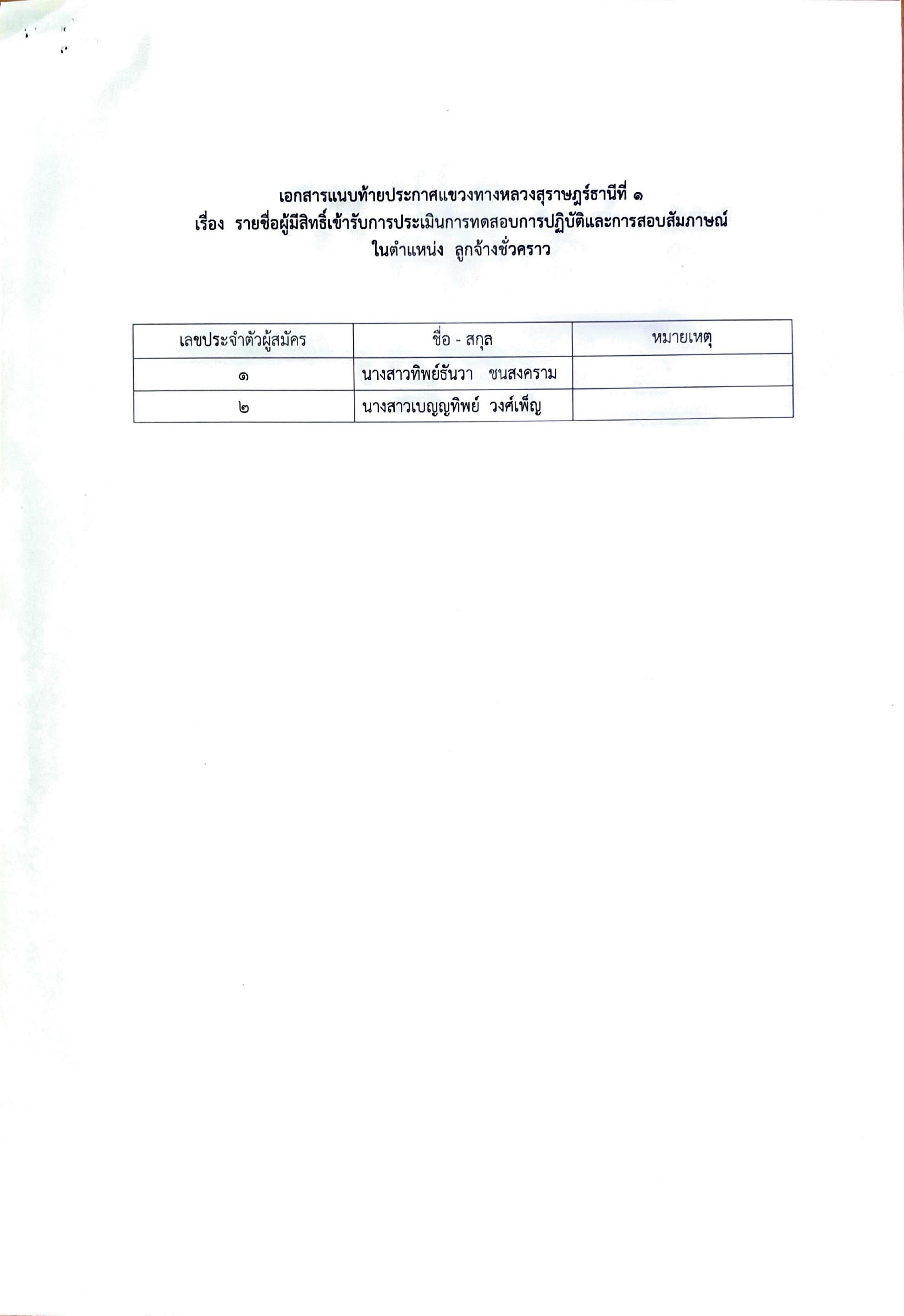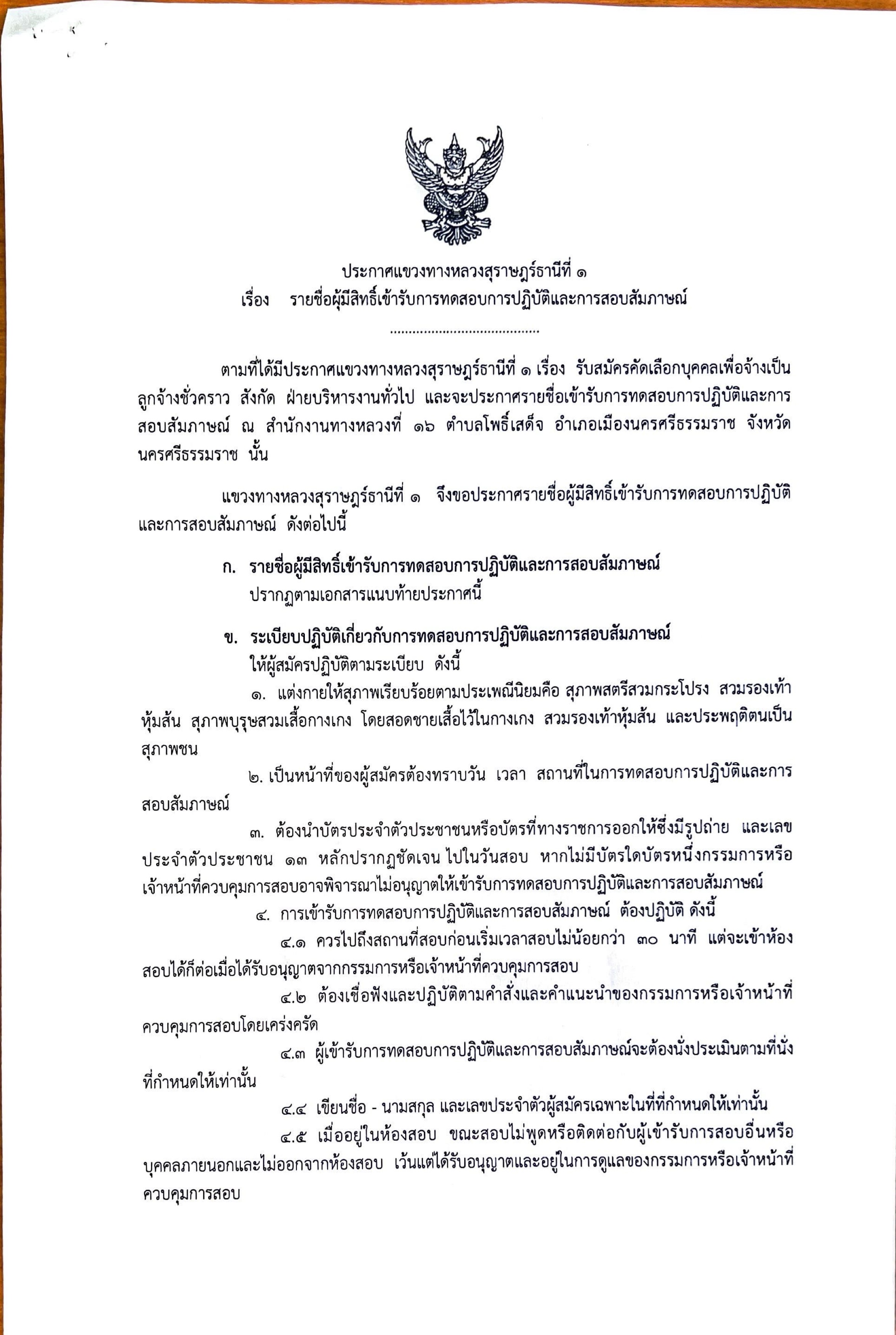 ประกาศรายชื่อผู้มีสิทธิ์เข้ารับการทดสอบการปฎิบัติและการสอบสัมภาษณ์